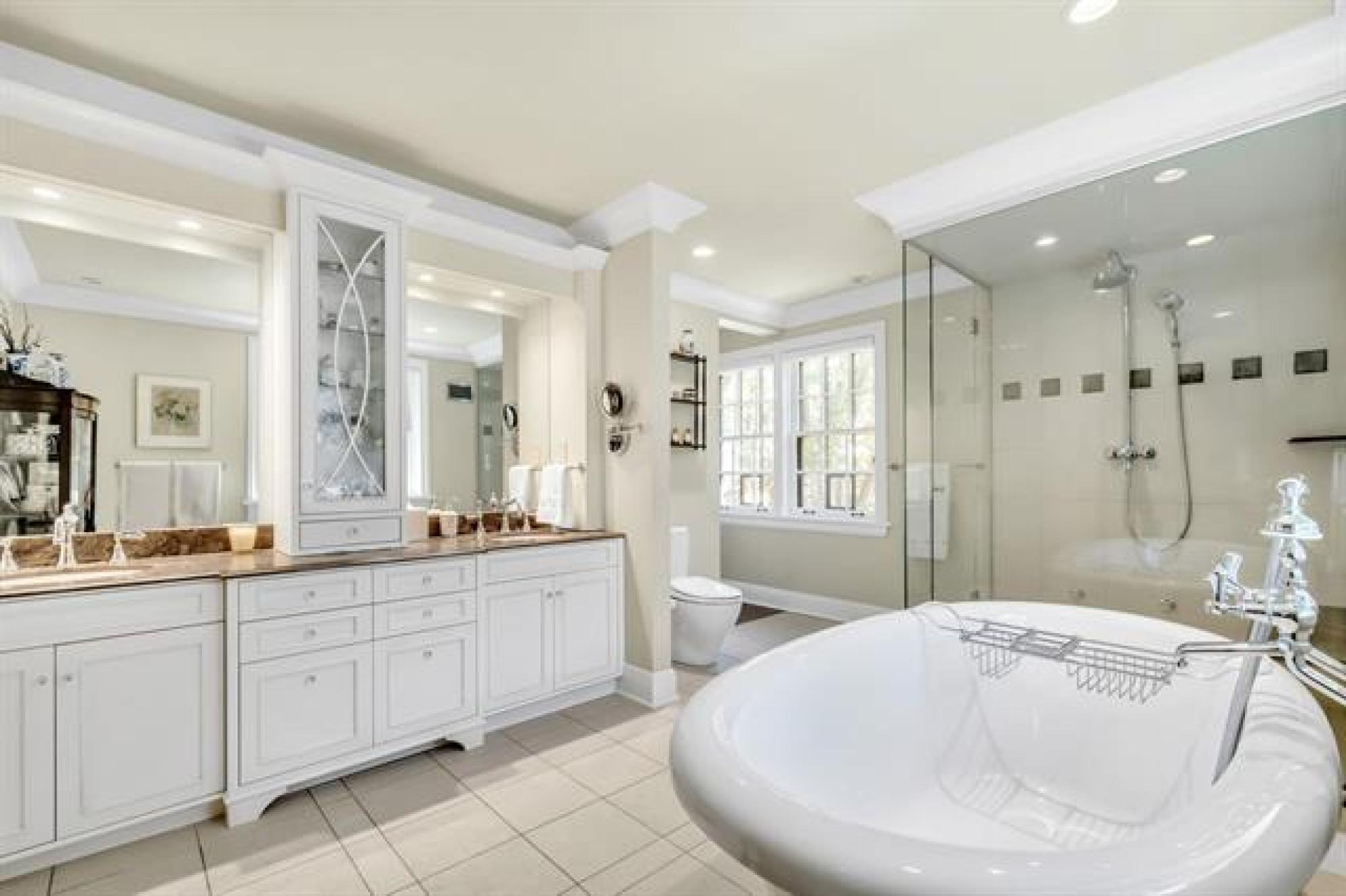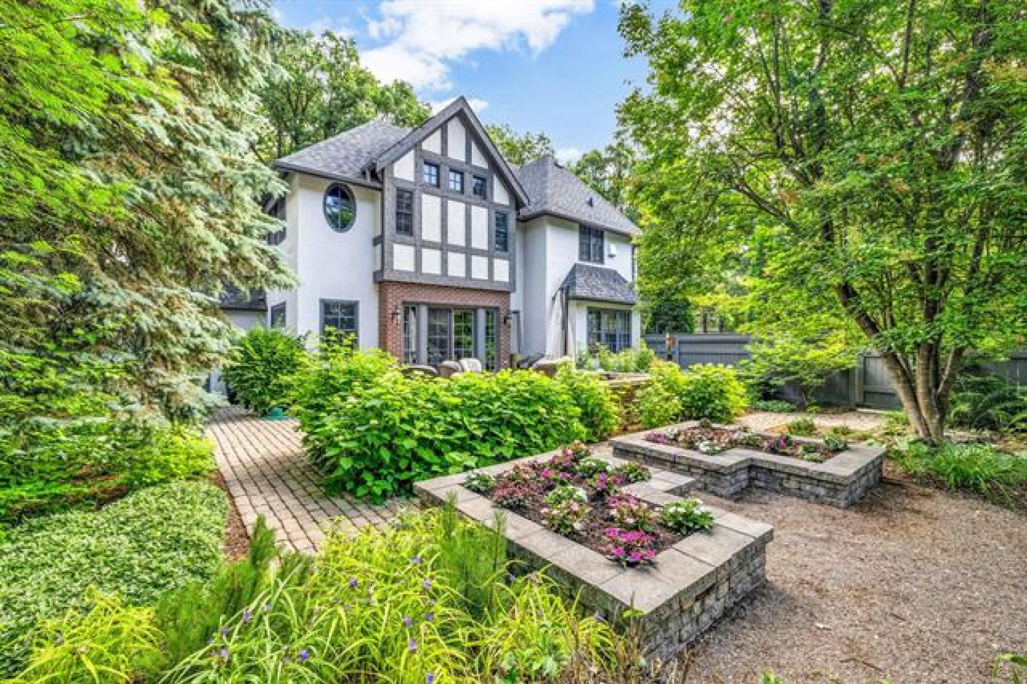 A true architectural masterpiece built by Art Gross with architect Les Stechesen. This remarkable residence is nestled on exquisitely landscaped grounds & defined by impeccable craftsmanship & an artful blend of luxury & sophistication. This home welcomes you with a stunning sunken LR, complete w/a warm, inviting fireplace. Rich hwds flow seamlessly throughout, while elegant French doors open to a formal DR that comfortably seats 12 guests & offers access to a patio...perfect for lavish entertaining. The bright, white chef’s kit is a culinary dream, featuring top-of-the-line appliances, abundant cabinetry, & a spacious dining area. A cozy & refined library with its own fireplace provides the ideal retreat for quiet evenings. Upstairs, the private UL offers a charming office, serene den, 3 pce bath & 3 generously sized brs, including a luxurious primary suite boasting a spa-inspired 5-piece ensuite bath & a custom-designed WICC...your personal sanctuary for relaxation. The LL impresses w/a stately rec room, anchored by a dramatic stone wood-burning FP. Spacious AT/2. This exceptional home is the epitome of timeless elegance & modern comfort.