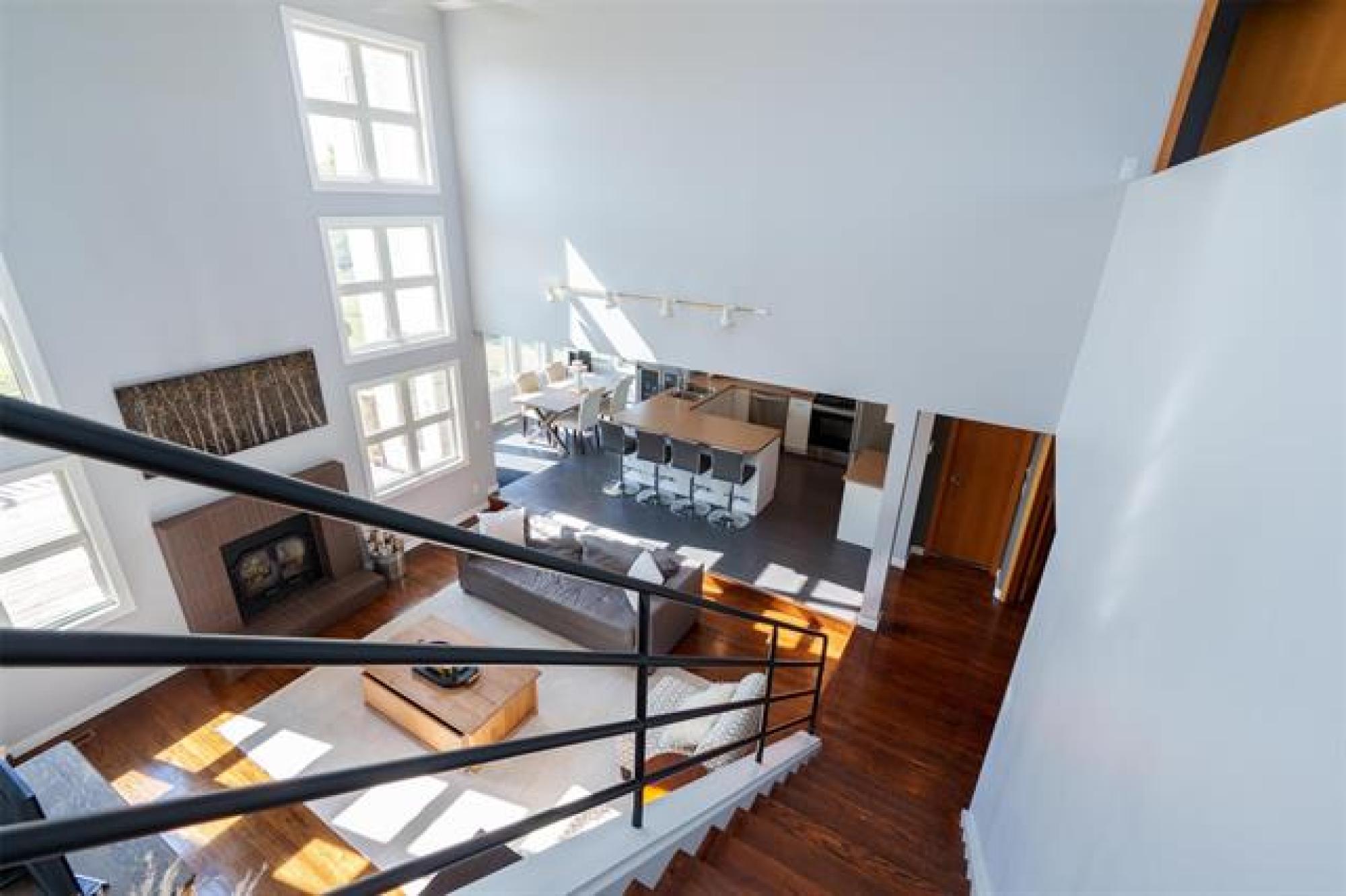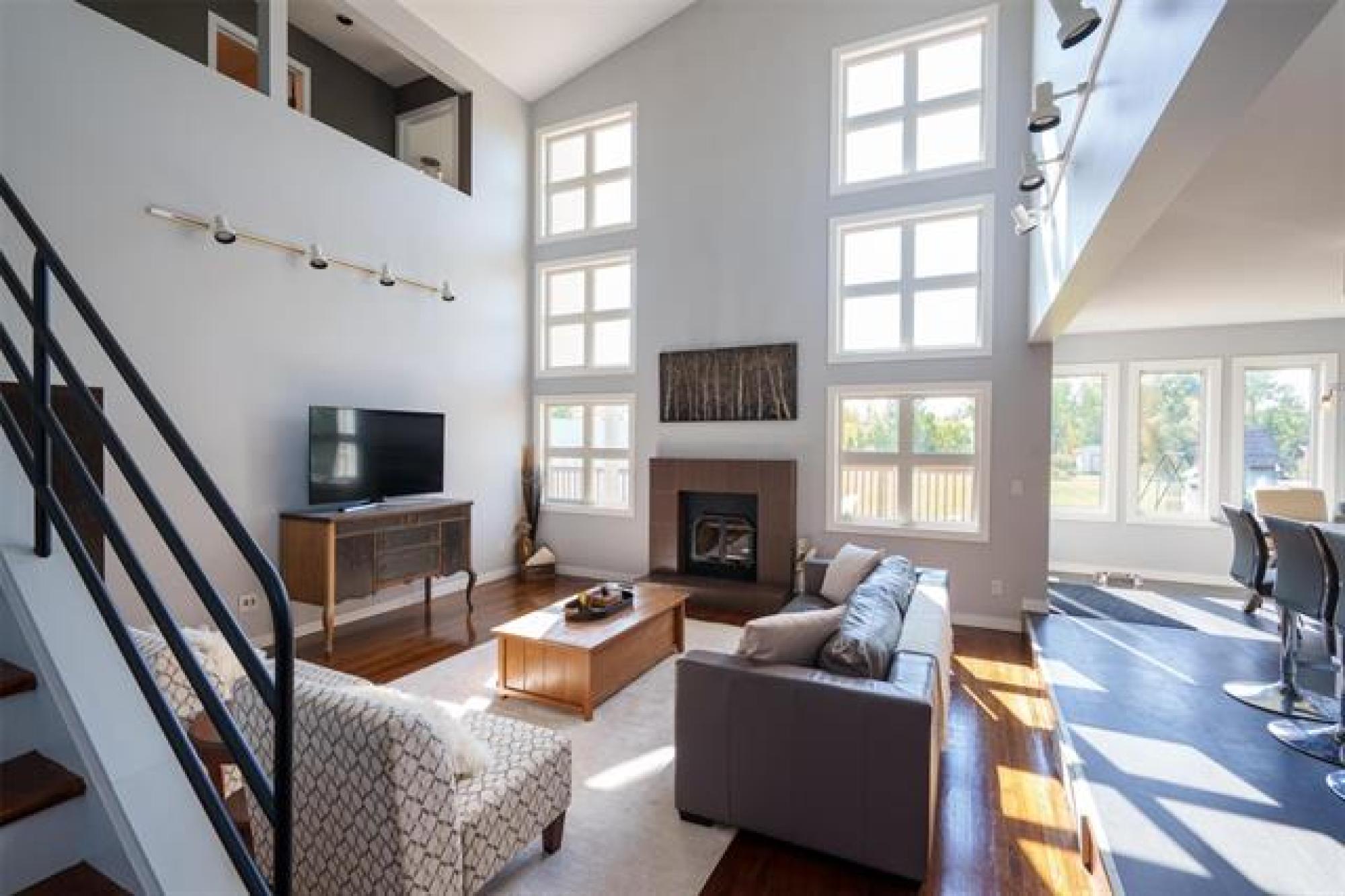 Discover this remarkable 2,338 sqft residence in West St. Paul, set on 2.2 beautifully landscaped acres at the end of a no-through road, offering peace and privacy. Featuring 3 bedrooms, 2.5 baths, and a full basement ready for your development ideas, this home is both functional and inspiring. The grand great room impresses with soaring ceilings and a stunning fireplace, while the elevated den overlooks the space, creating a dramatic architectural statement. A spacious dining room and family friendly kitchen make entertaining effortless, while the main floor mudroom with laundry and direct access to the double attached garage adds convenience. Outdoor living is maximized with expansive south facing decks, partially covered for seasonal enjoyment. The 25x44’ SHOP offers endless possibilities for any ENTHUSIAST. Blending modern architecture with unique design elements, this one of a kind property combines comfort, style, and opportunity!