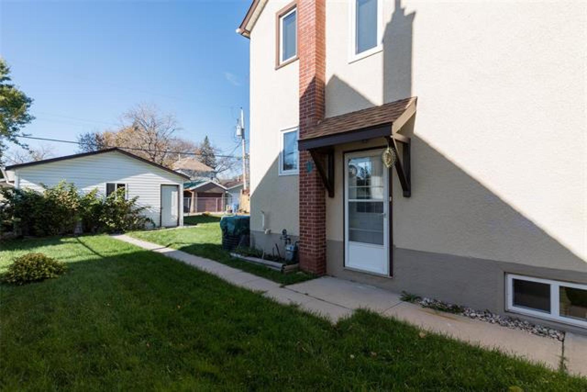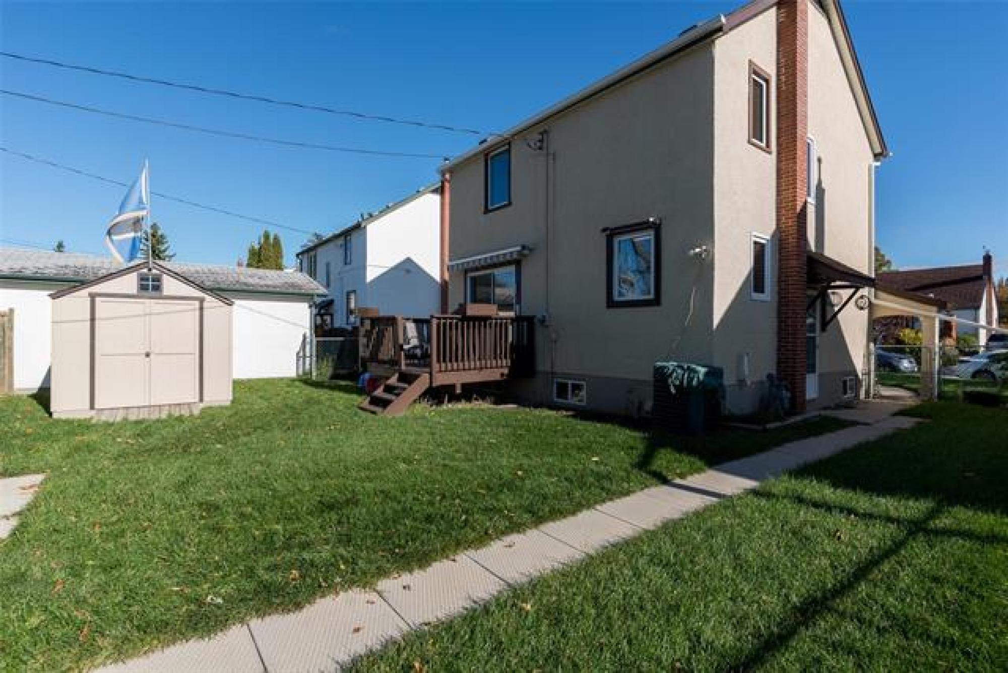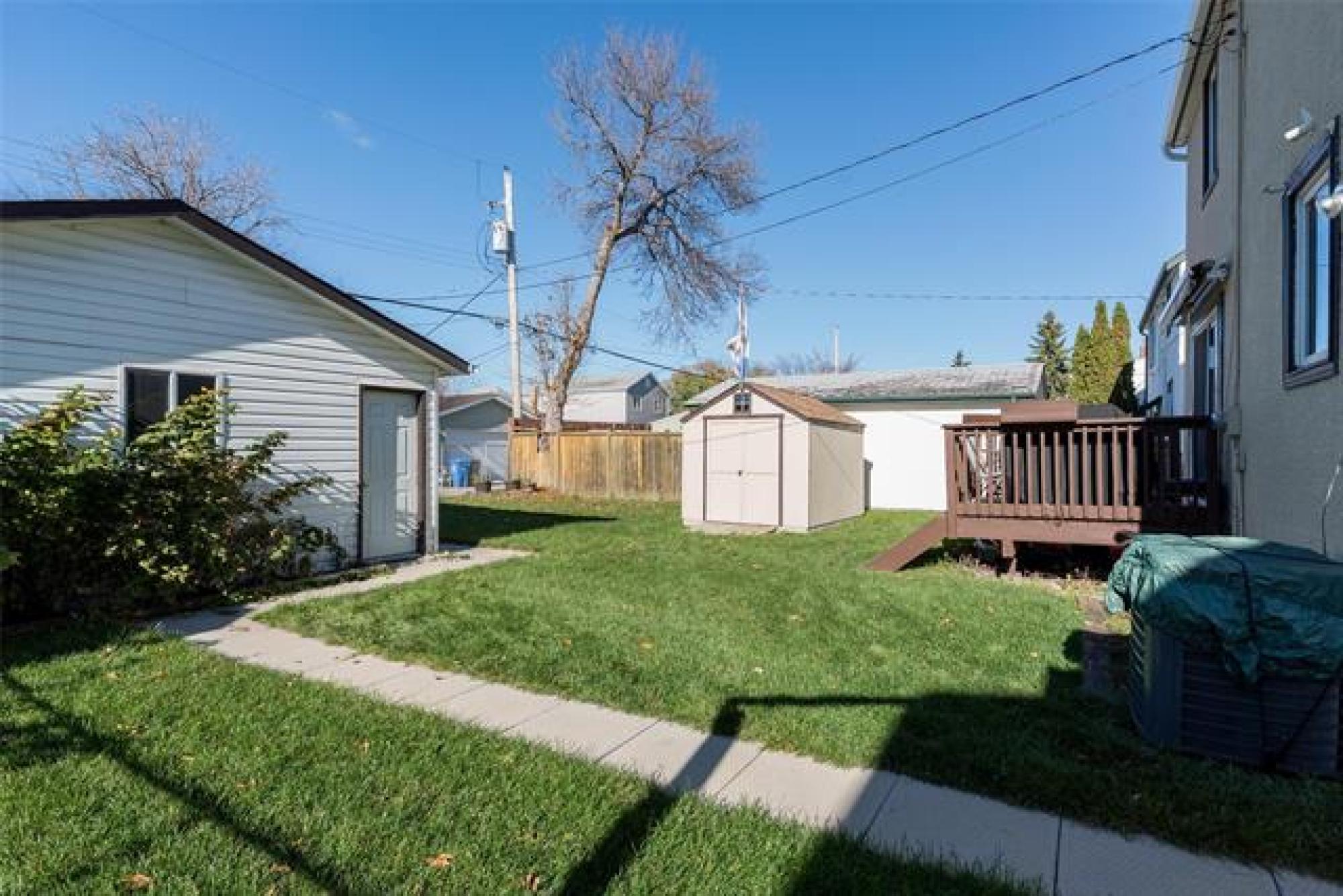 Showings Start Wednesday October 29/25. Offers Tuesday November 4/25 Evening. Welcome to this beautiful 2 Storey Character Home in highly sought after Bruce Park in Sunny St James. South of Portage just a stones throw from Assiniboine Avenue. This home has been lovingly maintained by its long time owners. Step inside and notice the hardwood floors that flow throughout. The living room is large and bright with big windows letting in plenty of natural light. Open to the dining room with patio door out to the deck. Eat in kitchen with a nice view of the back yard. The upper level houses a good sized Primary bedroom with 2 more generous sized bedrooms and full 4 piece bath. The lower level has laminate flooring and a nice sized rec room for your to enjoy and great storage space. Once outside you have a fully fenced back yard that's great for entertaining. This home also has convenient front drive access as well as back lane access. A 20'x24' double garage out back and a parking pad out front that can fit up to 3 more vehicles. This home is close to all levels of schools, shopping and public transportation. Do not miss the opportunity to make this your next home and be in and settled before the holidays