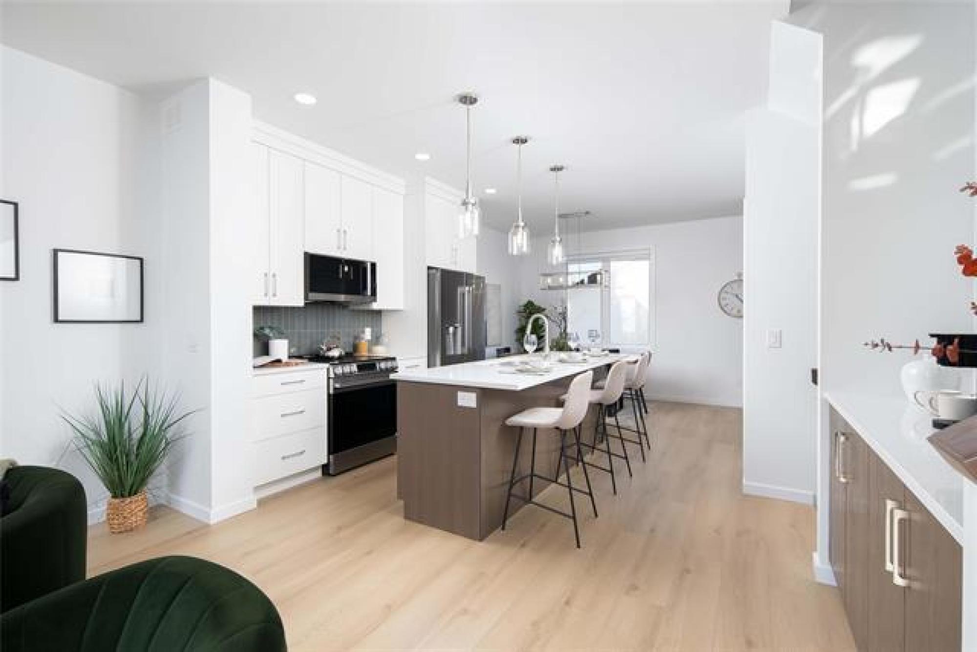 Brand New Show Home! Located in a beautiful high demand neighborhood of Bison Run , steps away from the 2 new schools and future rec center. This 3 bed , 2.5 bath home offers incredible value and unbeatable location! Offering double garage, side door entry to the basement and rear door to the deck and garage, spacious kitchen with quartz counter, coffee bar, designer lighting and paint colors, electric fireplace, designed for modern living. Inside you'll find a convenient wall pantry, second floor laundry and open functional layout. Coffee/Wine Bar area. Secure it at todays price , no bidding wars. Move in summer 2026 giving you plenty of time to prepare while investing in a thriving growing community. Don't miss out!!