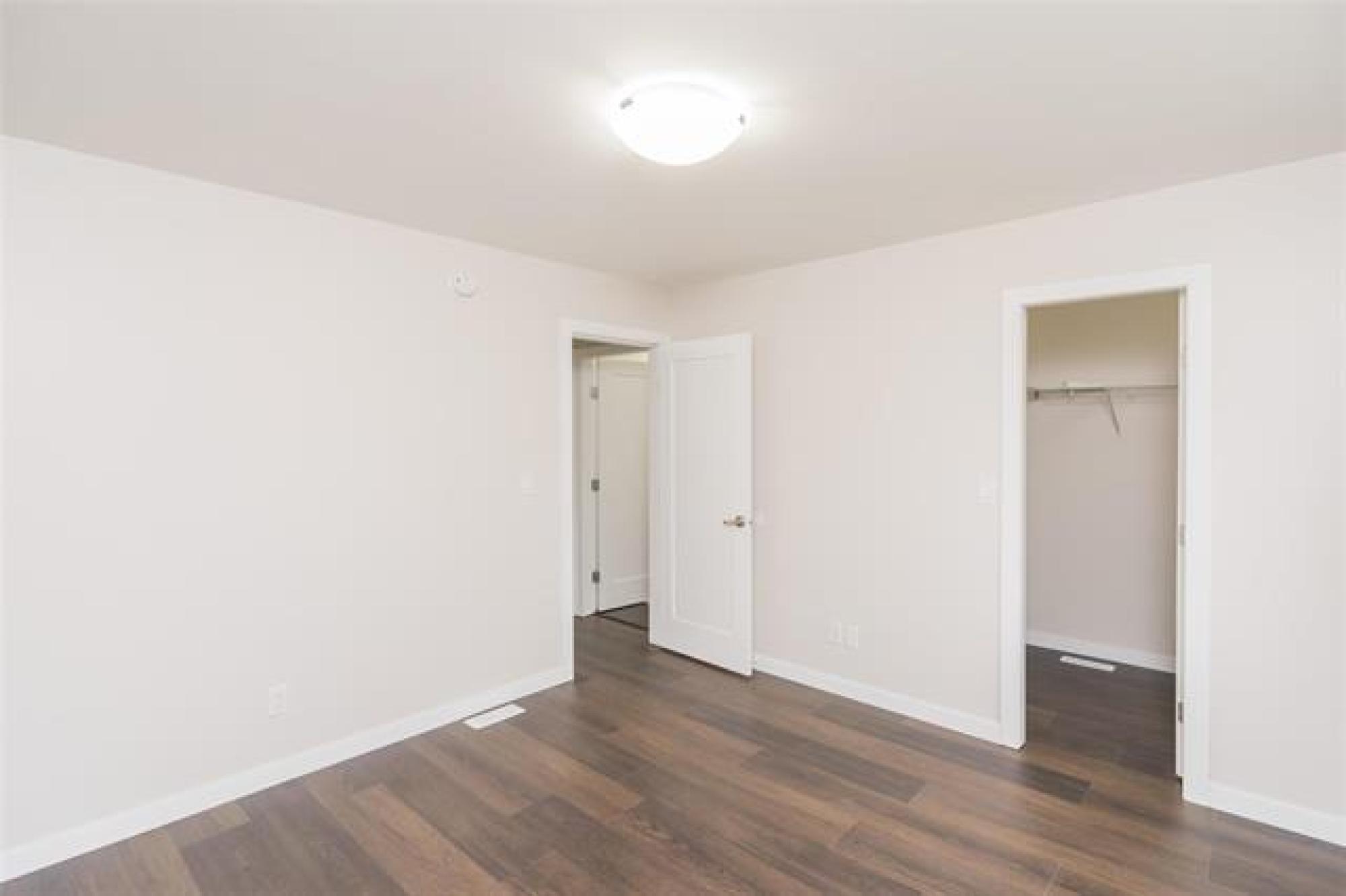 Welcome to a lovely community designed for families. Open concept living on the main floor with a deck off of the dining area. Walk-in pantry in the kitchen with big windows to bring in the natural sun light. Also on the main floor is a 2 piece bath and the entrance for the attached garage. Garage parking and parking on the driveway. 3 large bedrooms on the upper floor. The Primary bedroom has a walk-in closet. A full 4 piece bath on this upper floor. In the basement you could have the opportunity to develop this space with your own creative design. Low condo fees. There is Visitor parking. Enjoy living in this quiet well managed community close to schools, parks, shopping and public transit. Move to your new home in time for the holidays. Roughed in for C/vac