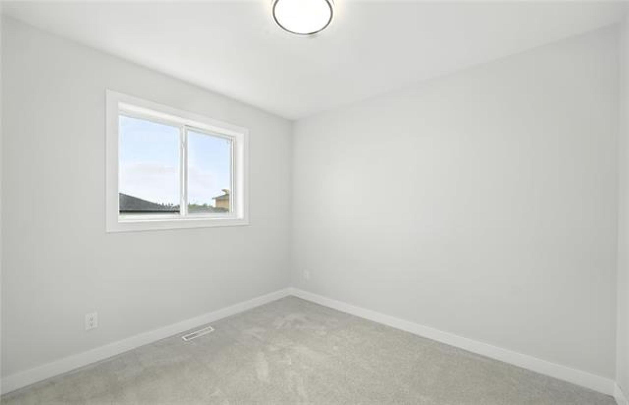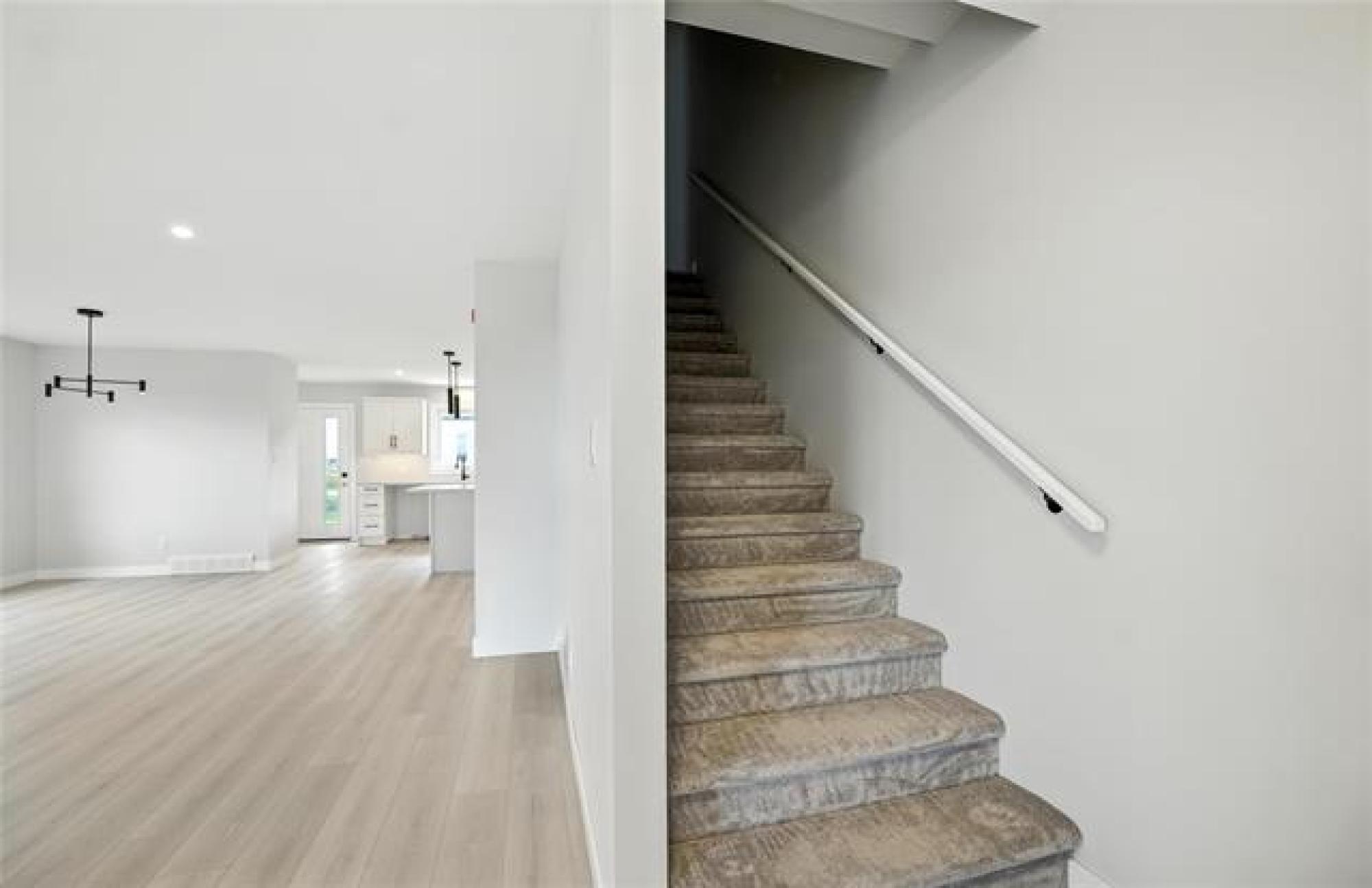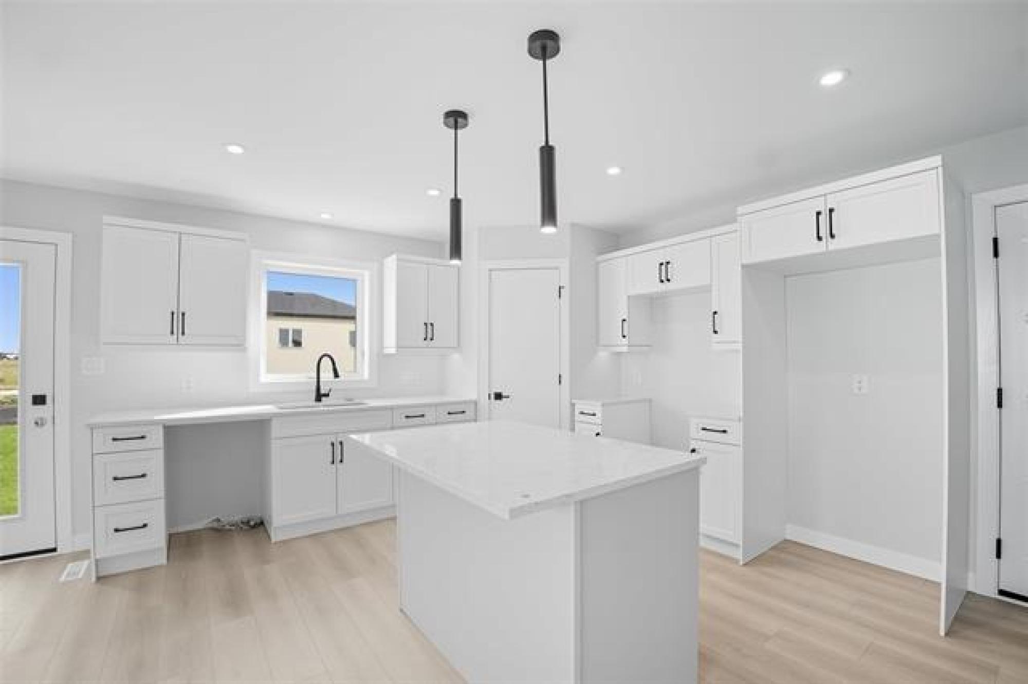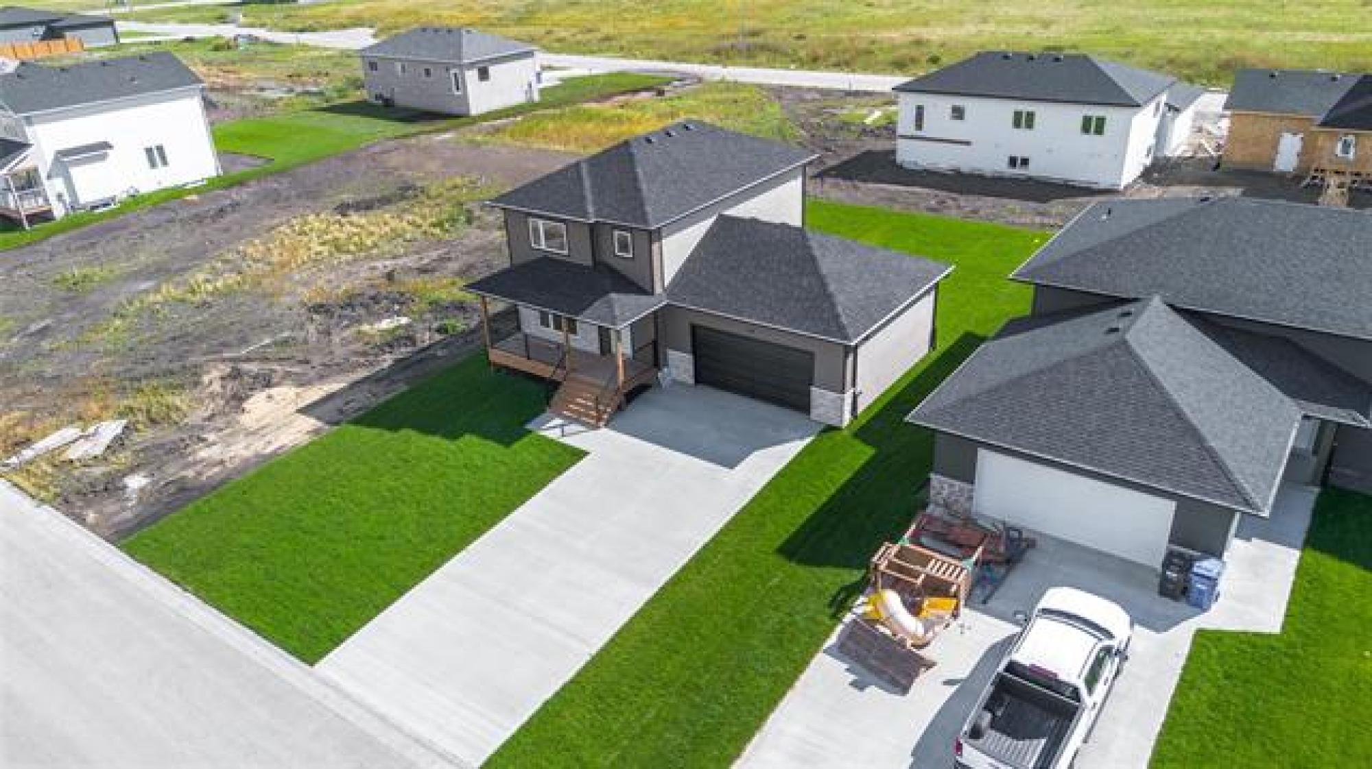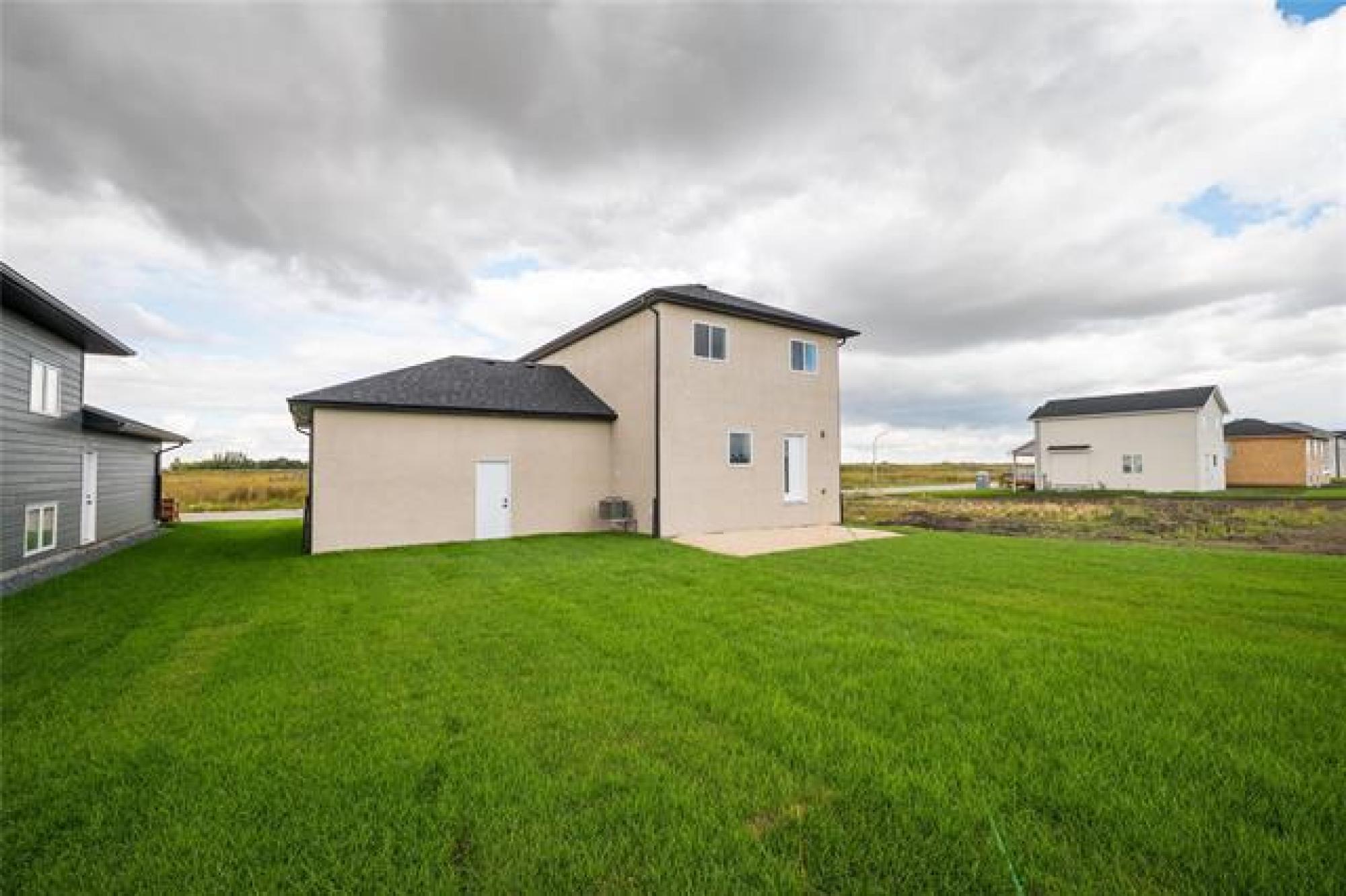 Fully complete and has grass in Front and Back yard! Ready for possession! Another fantastic build by Gerald Stoesz Contracting! This beautiful brand new 1,588 SqFt 2 Story has a Great floorplan with a front porch and railing! Featuring 3 bedrooms, 2.5 bathrooms! Enter into the large foyer area! The Living room has abundance of natural light with high ceilings and vinyl flooring leading you into the kitchen. Custom cabinets, with walkin pantry, island with quartz countertops, soft close drawers and under lighting. 2 piece bathroom off the kitchen. Upstairs The primary bedroom is huge has an ensuite bathroom with double vanity sinks and large walk in closet! Features 2 more bedrooms and 2nd floor laundry! The basement has an ICF (Insulated Concrete Form) foundation and will be fully drywalled. High quality Floor Truss System. Attached is a 24'x24' garage located on a large 59' lot! Big backyard! Concrete driveway! Located Near the new Highschool and Recreation Center! National Home Warranty Included. Appliances and landscaping available! Call now for more information.