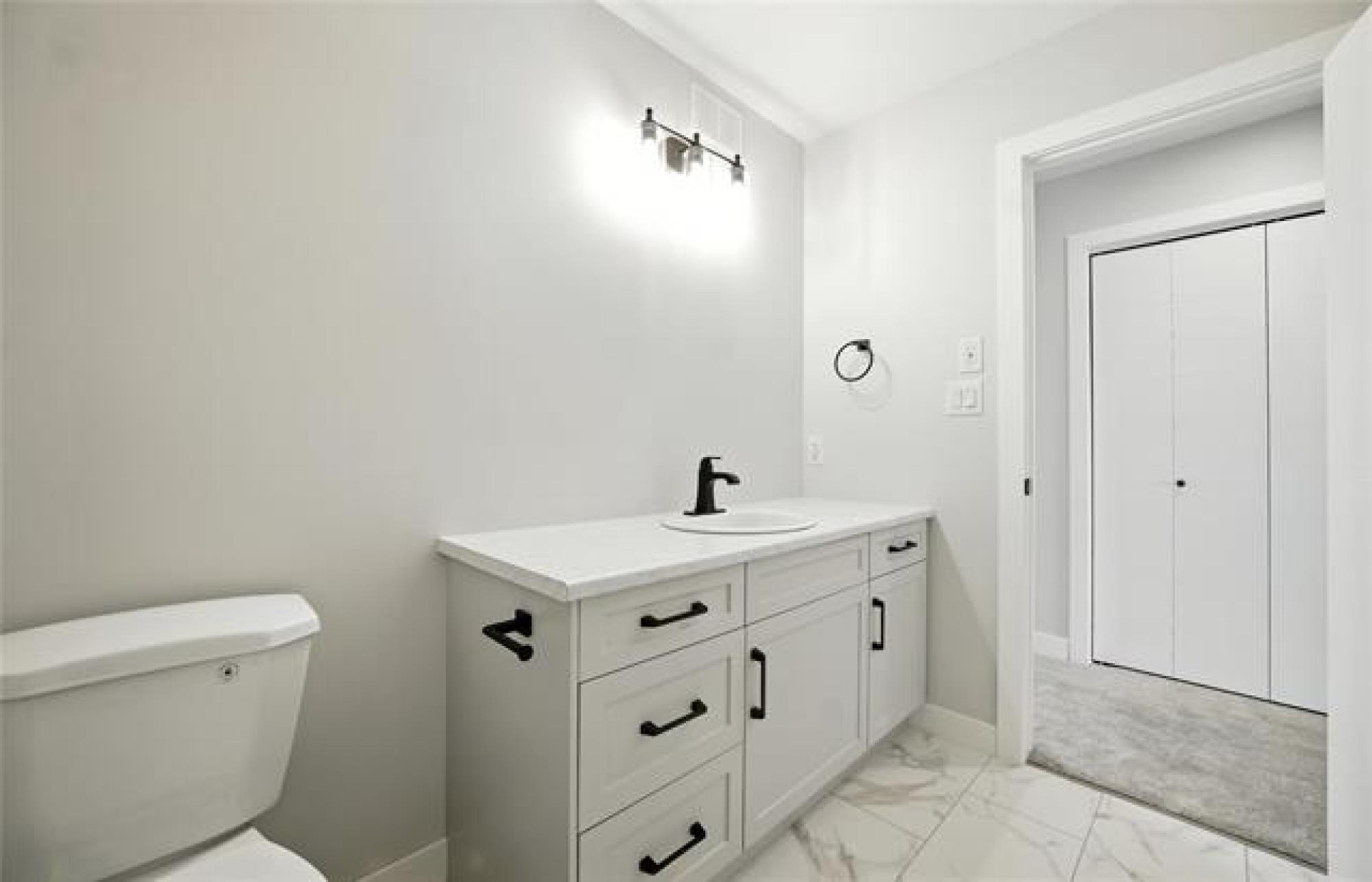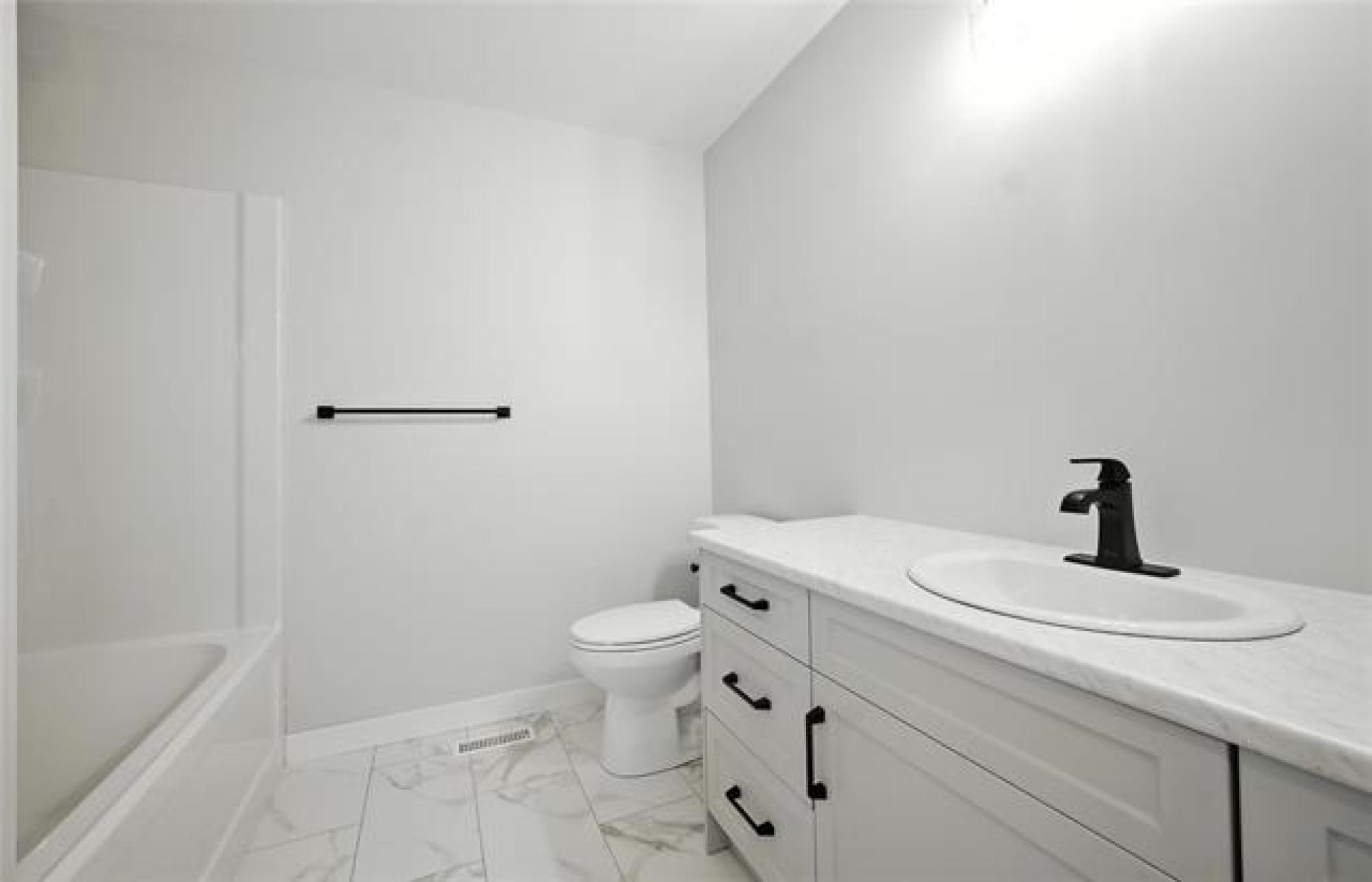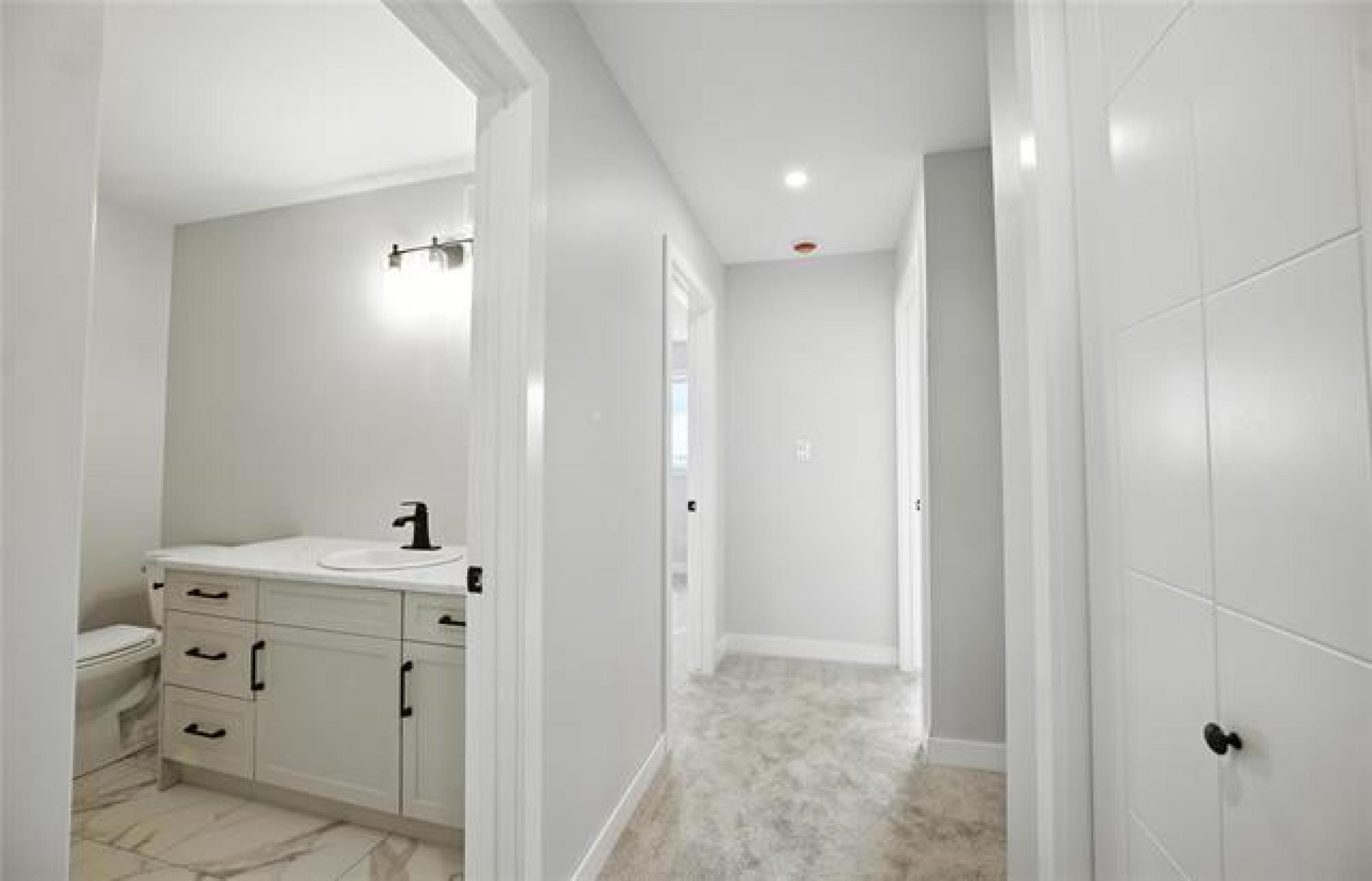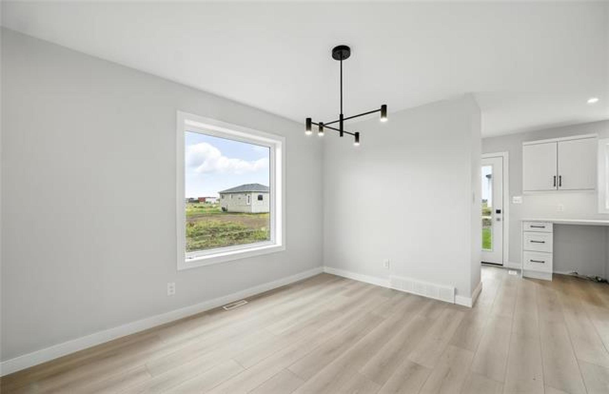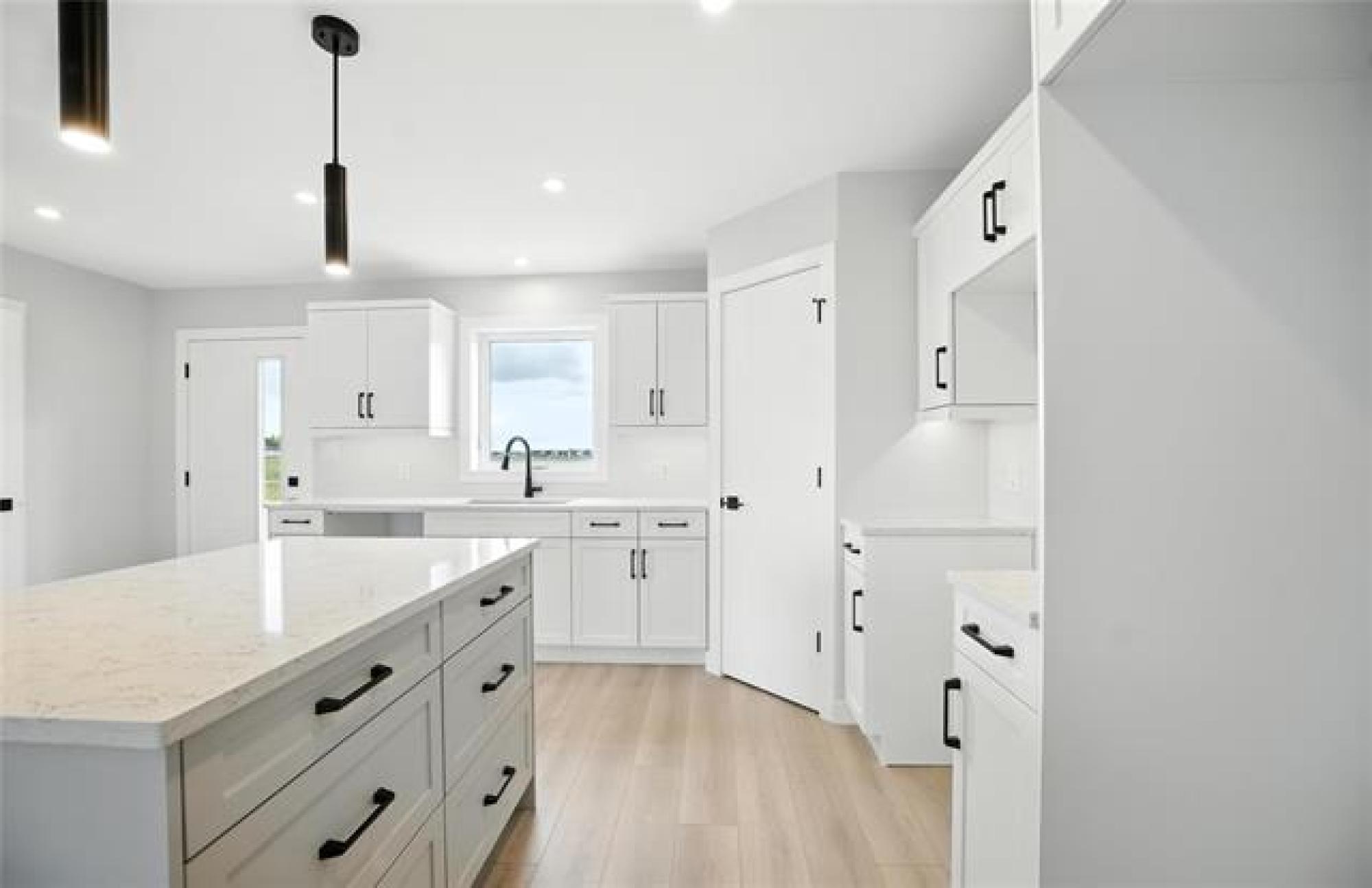 Fully complete and has grass in Front and Back yard! Ready for possession! Another fantastic build by Gerald Stoesz Contracting! This beautiful brand new 1,588 SqFt 2 Story has a Great floorplan with a front porch and railing! Featuring 3 bedrooms, 2.5 bathrooms! Enter into the large foyer area! The Living room has abundance of natural light with high ceilings and vinyl flooring leading you into the kitchen. Custom cabinets, with walkin pantry, island with quartz countertops, soft close drawers and under lighting. 2 piece bathroom off the kitchen. Upstairs The primary bedroom is huge has an ensuite bathroom with double vanity sinks and large walk in closet! Features 2 more bedrooms and 2nd floor laundry! The basement has an ICF (Insulated Concrete Form) foundation and will be fully drywalled. High quality Floor Truss System. Attached is a 24'x24' garage located on a large 59' lot! Big backyard! Concrete driveway! Located Near the new Highschool and Recreation Center! National Home Warranty Included. Appliances and landscaping available! Call now for more information.