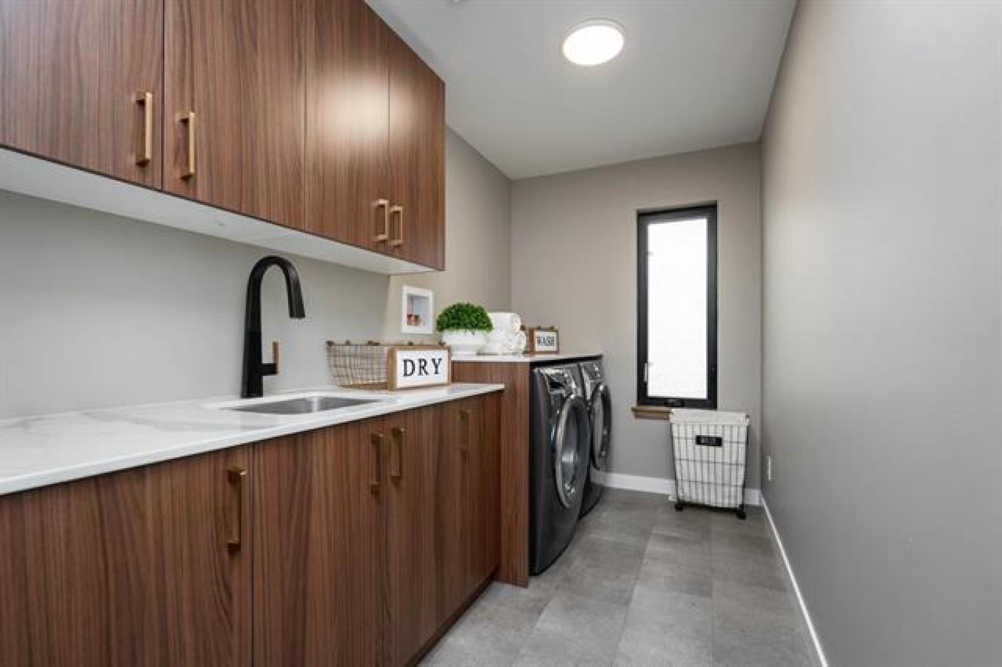 Experience refined living in this stunning 2,712 sq.ft. custom home perfectly positioned on a beautiful walk-out lake lot. Designed with exceptional attention to detail, this residence features 4 spacious bedrooms and 3 full bathrooms, including a convenient main floor bedroom and bath. The gourmet kitchen is appointed with a large island, premium finishes, and an adjoining spice kitchen offering added functionality and storage. The open-to-above great room impresses with an elegant entertainment wall and electric fireplace, creating a striking yet inviting ambiance. Upstairs, every bedroom offers a walk-in closet and easy access to a well-planned laundry room. The luxurious primary suite includes a deluxe ensuite with a freestanding soaker tub, double vanity, and private water closet. Complete with a double attached garage and backed by a 1-2-5-10 National Home Warranty. Located in a sought-after community with two new schools (K–12), nearby amenities, and close proximity to the University of Manitoba. Photos are from a show home; upgrades shown may not be included.