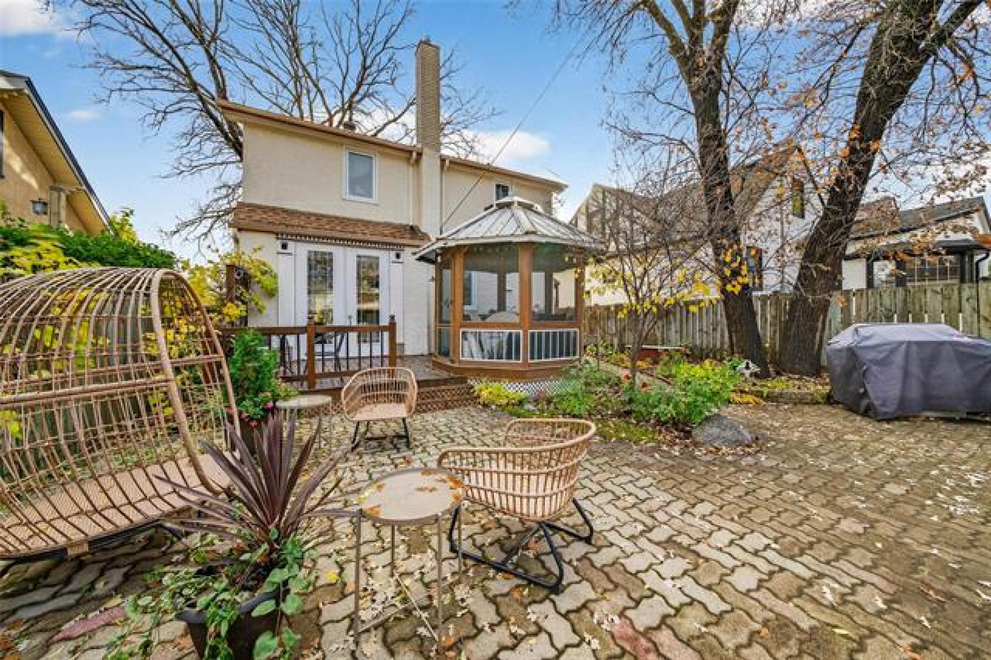 SS now. OH Sun @ 12-1:30. OTP Oct 29. Welcome home to beautiful River Heights, one of the most desirable family neighbourhoods! This charming character home has been meticulously maintained & is straight & solid! Fantastic curb appeal w/ perennial & flower beds create an English garden feel, all w/ great neighbours so you'll feel warm & welcomed. The main floor is bright & features a cozy LR w/ wood-burning fireplace for your holiday decor, updated bay window, a formal dining area w/ 8ft patio doors & built-in storage plus a custom maple kitchen w/ incredible cabinet & counter space. Upstairs offers 3 comfortable bdrms & a spacious full bath w/ lrg vanity area. The finished basement adds bonus living space perfect for a recroom, playroom, or home office; plus a convenient half bath, laundry & storage! Step outside to enjoy the incredible low-maintenance west facing backyard complete w/ patio, gazebo, & incredible perennial gardens, perfect for entertaining or enjoying a glass of wine while watching the sunset. Not to be missed; oversized dbl grg. Major updates incl: shingles (18), A/C (16), HWT (24), PVC windows, interior paint, dishwasher, lighting, W/D, & front steps/back deck refinished recently.
