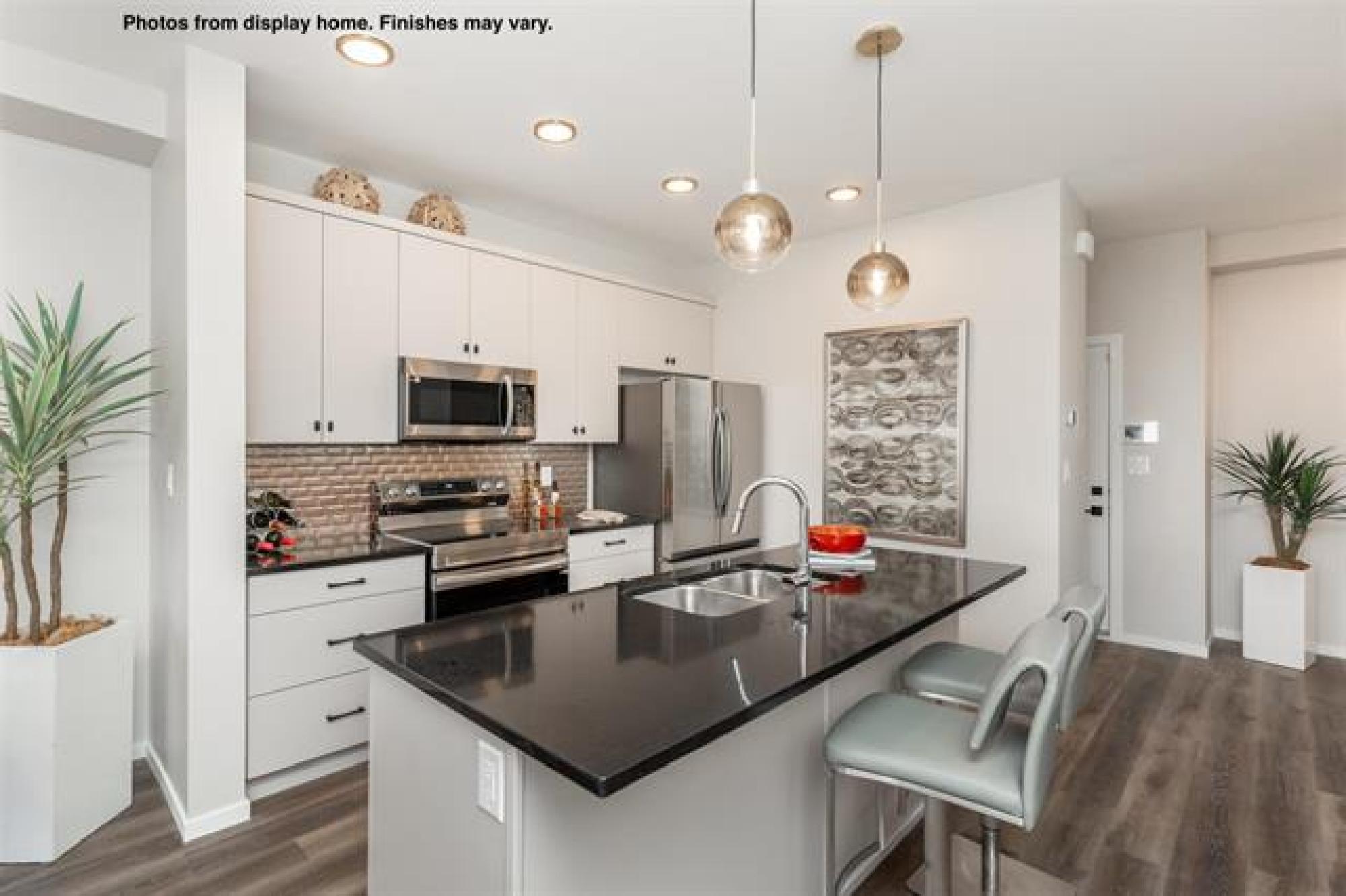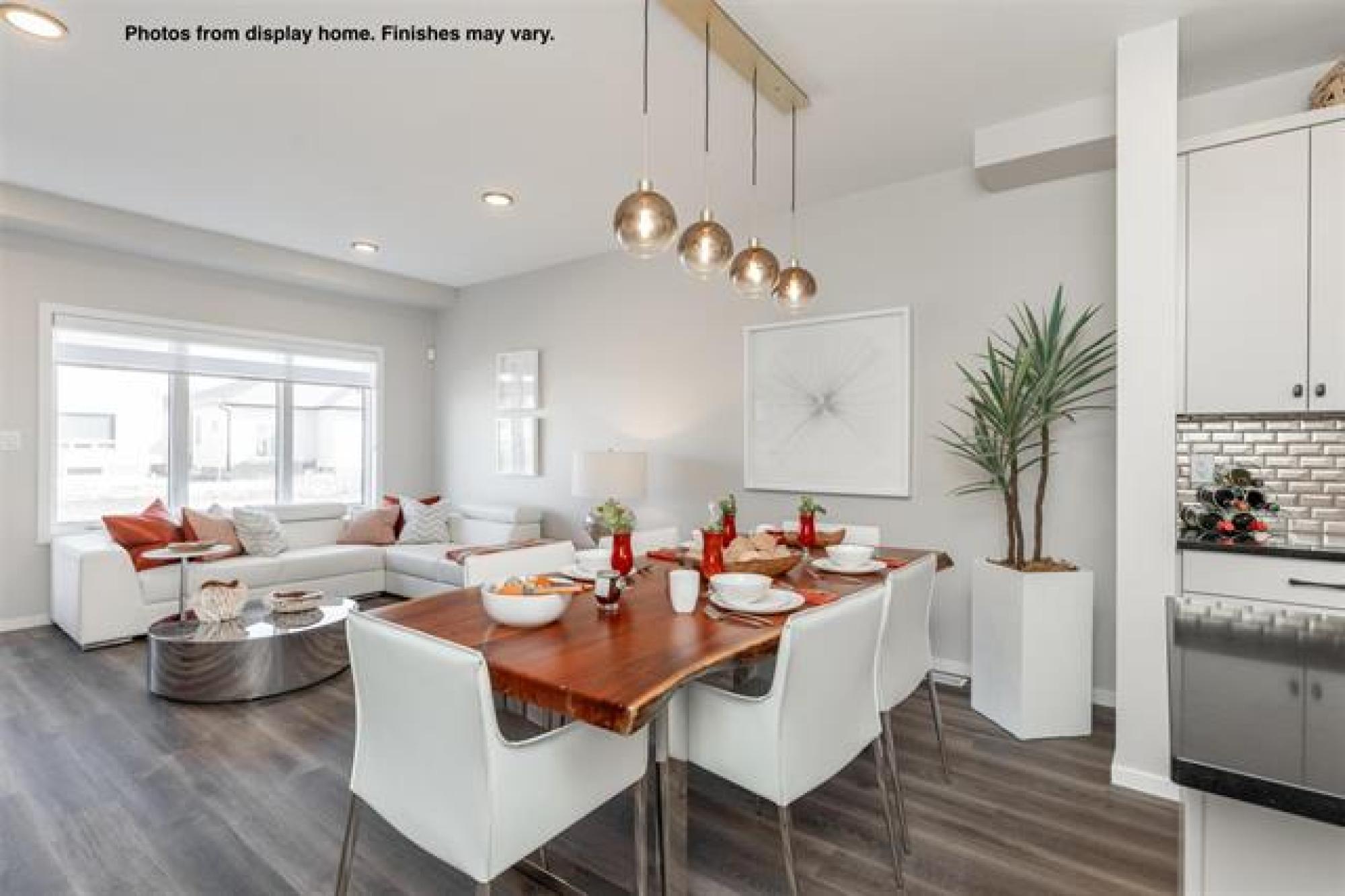 New 1400 Sq ft semi attached home under construction in Prairie Pointe with a quick possession. Features a covered front entry, spacious foyer with double coat closet & broom closet. Modern design kitchen with large island, coffee bar, & two full height wall pantry's. The large windows & full glass garden door across the rear of the great room provide plenty of natural light to the main floor living space of this home. Upstairs there are 3 bedrooms, 2 full baths and a laundry area plus a linen closet. There is also separate entry to the lower level. Some photos from display home, finishes may vary.