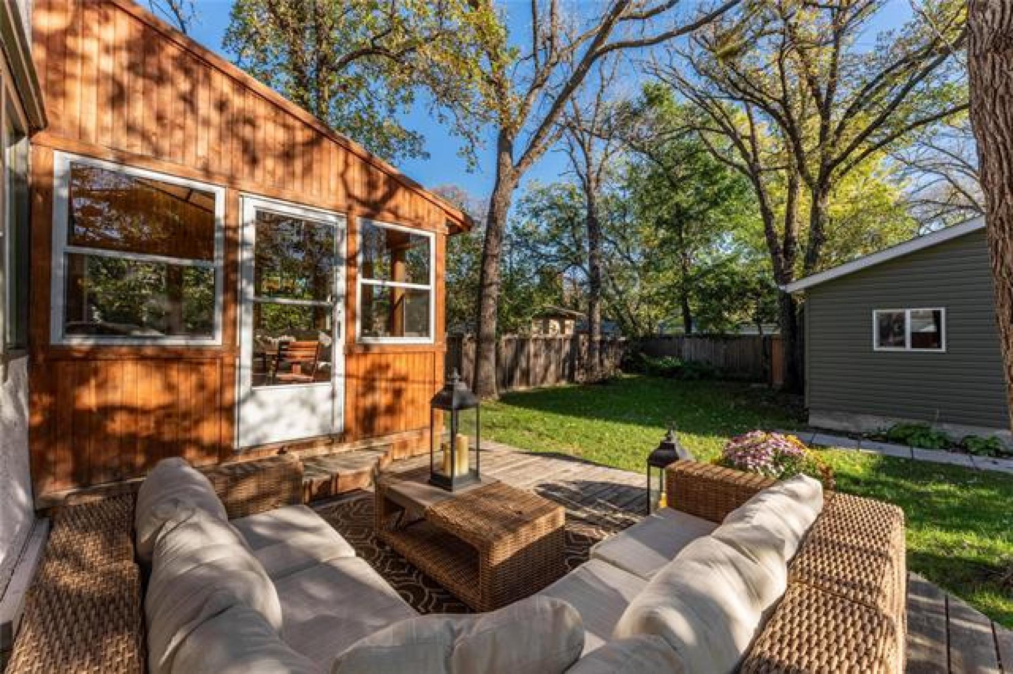 Showings start now, offers presented Tuesday, October 21 in the evening. Charming family home in the heart of Riverview! Spacious living room with cozy fireplace and adjoining reading nook. Enjoy evenings by the fire, morning coffee in the sunroom, and family gatherings in the open dining area. The kitchen and dining space feature a built-in desk, island seating, and great natural light—perfect for entertaining or family meals. Upstairs are three comfortable bedrooms and a beautifully renovated 5-pc bath, heated tile floors, towel warmer and double sinks. Stunning hardwood floors. The sunny 3-season sunroom opens onto a large fenced yard with deck, gardens, and an oversized double garage. Numerous updates include: new garage, ductless heating/cooling, fridge, dishwasher, main bath & HWT (2017), washer/dryer (2020), and roof (2023) updated PVC windows. Fantastic community—walk to Fisher Park, Vera Pizza, Park Alley Bowling & the local community centre. Warm, inviting, and full of character—this is a home where lasting memories are made.