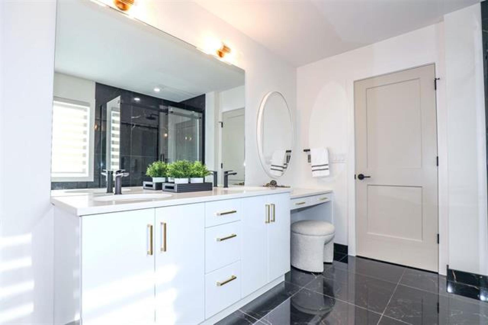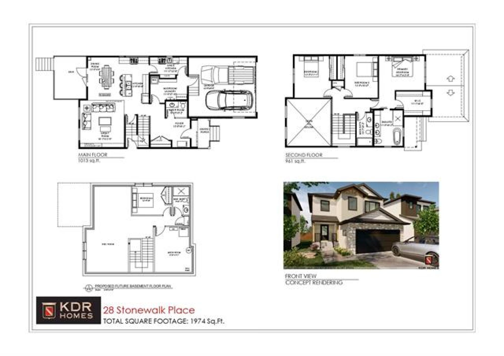 This custom-built two-storey by KDR Homes features 1974 sq ft of open-concept living space with 18 ft ceilings in the great room and large tri-pane windows for plenty of natural light. Tile-faced electric fireplace with entertainment unit, quartz countertops, and a convenient spice kitchen. Deluxe ensuite with soaker tub, acrylic base shower and double vanity, plus two additional bedrooms and a full bath on the upper level. Lower level comes with 9 ft ceilings, steel beam construction, and roughed-in plumbing for a future bathroom. Exterior finished with stucco, stone, and hardi board. Includes central A/C, HRV, large laundry/mudroom and double attached garage with remote and more. Still time to customize it yourself, call today for more details. *To be built, may not be exactly as shown.