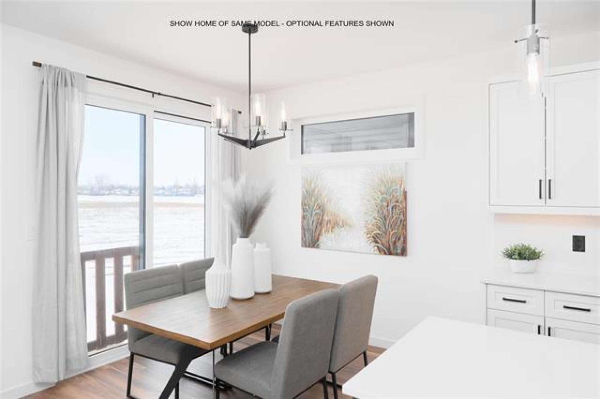 Exceptional value! This 1,447 SF two storey to-be-built by Ventura Custom Homes is located in the growing community of Wheatland Park, just 10 minutes east of Winnipeg and perfectly situated on a quiet cul-de-sac steps from walking trails, green space, and the pond. Several upgrades are included at NO CHARGE; quartz kitchen countertop budget, luxury vinyl plank floors, taller kitchen cabinets, chimney hood fan, tiled kitchen backsplash & more! This brand-new 1,447 SF 2 storey offers an open-concept floor plan, island kitchen with corner pantry, 9' walls on BOTH main AND second floor, huge rear windows & spacious dining area! Upstairs are 3 well-sized bedrooms & 2nd floor laundry. The primary suite offers an oversized WICC and ensuite bath. This home comes loaded with upgraded features standard; 200 amp panel, soft-close cabinets, pot lights, insulated garage door w/ glass inserts and belt-driven smart opener, 8'-6" foundation with delta wrap water-proofing, under-cabinet lighting, decora plugs and switches, EcoBee thermostat, flat painted ceilings, painted white baseboards/casings, 40 year architectural fibreglass shingles & more! 10 year home warranty included. Show home available to view. Call now!