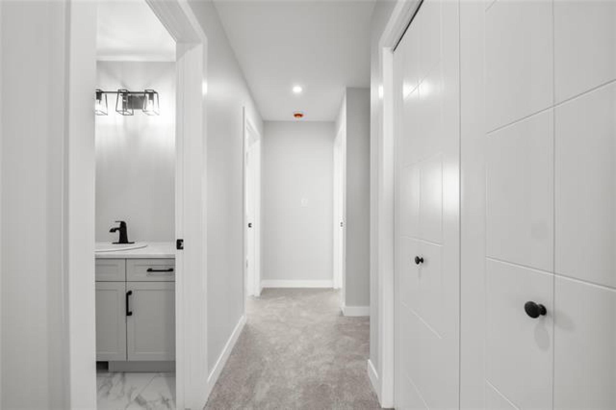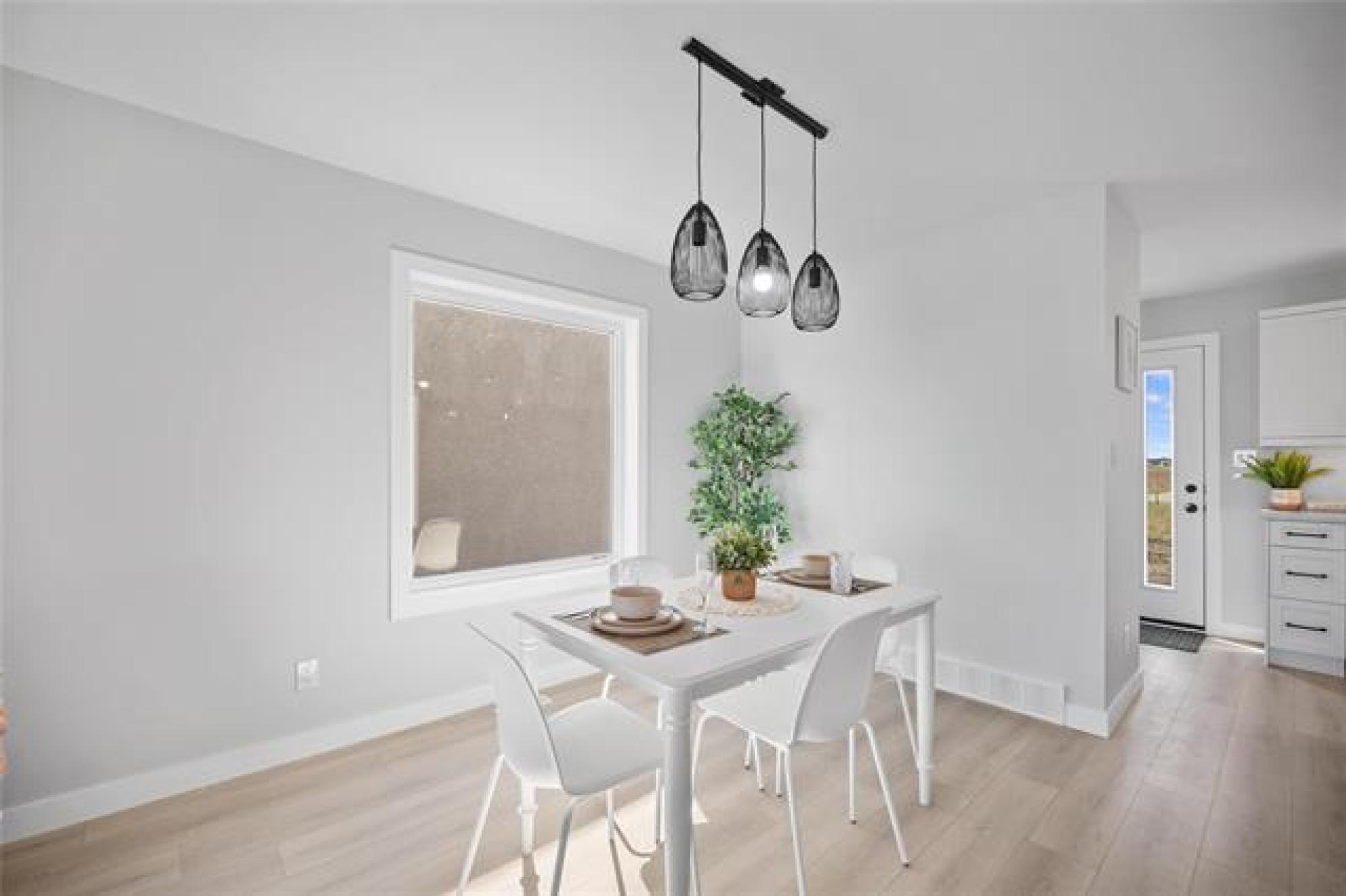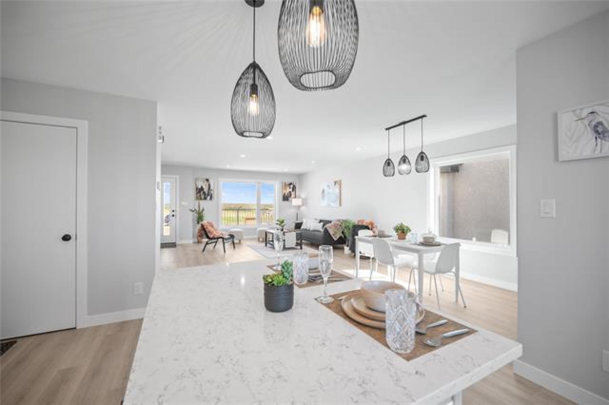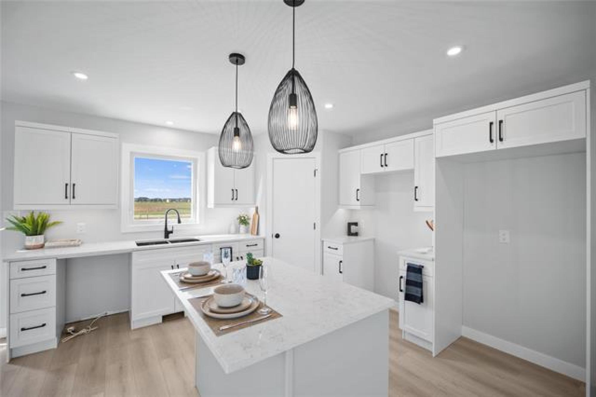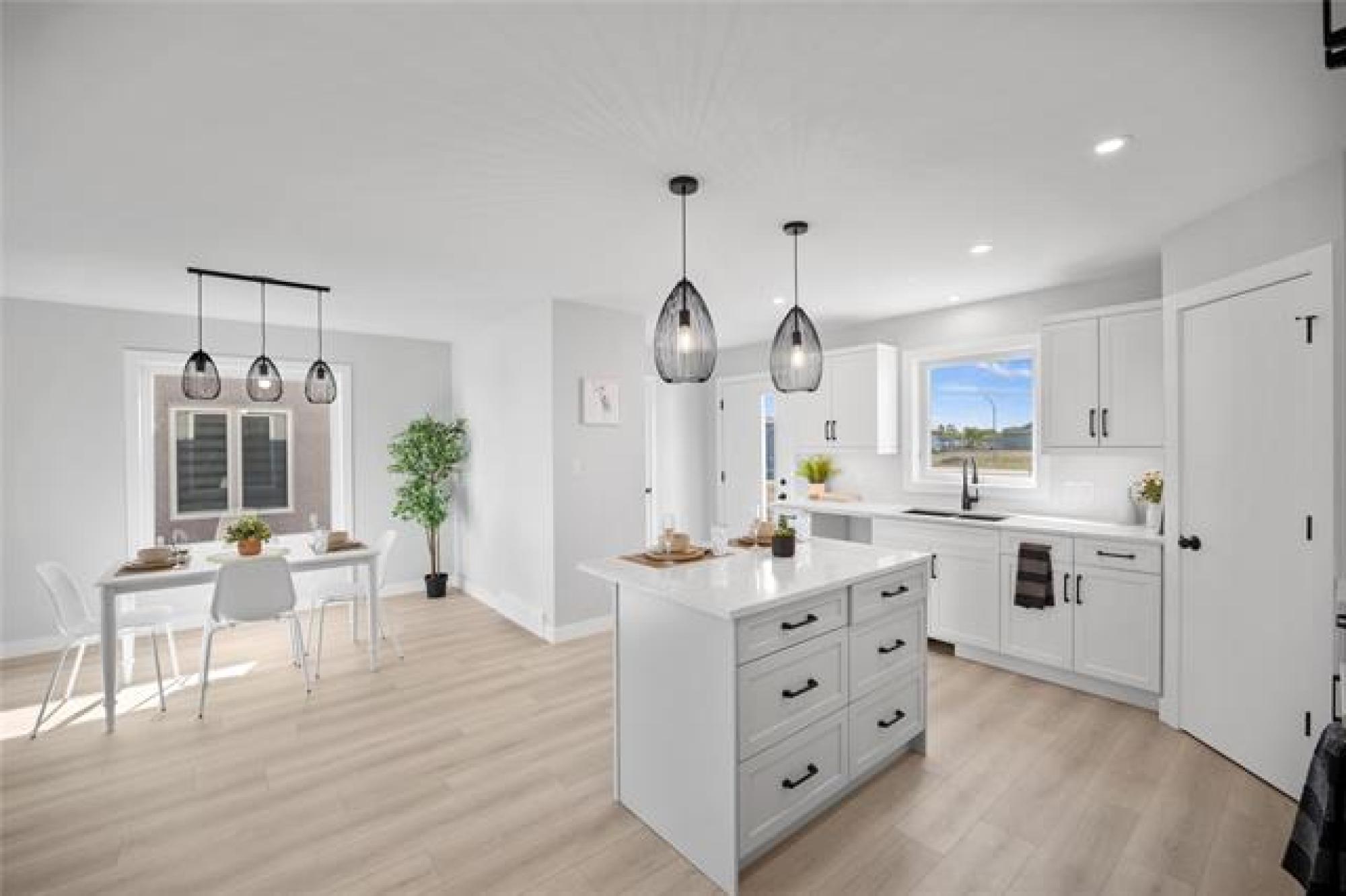 Fully complete and has grass in Front and Back yard! Ready for possession! Another fantastic build by Gerald Stoesz Contracting! This beautiful brand new 1,588 SqFt 2 Story has a Great floorplan with a front porch and railing! Featuring 3 bedrooms, 2.5 bathrooms! Enter into the large foyer area! The Living room has abundance of natural light with high ceilings and vinyl flooring leading you into the kitchen. Custom cabinets, with walkin pantry, island with quartz countertops, soft close drawers and under lighting. 2 piece bathroom off the kitchen. Upstairs The primary bedroom is huge has an ensuite bathroom with double vanity sinks and large walk in closet! Features 2 more bedrooms and 2nd floor laundry! The basement has an ICF (Insulated Concrete Form) foundation and will be fully drywalled. High quality Floor Truss System. Attached is a 24'x24' garage located on a large 59' lot! Big backyard! Concrete driveway! Located Near the new Highschool and Recreation Center! National Home Warranty Included. Appliances and landscaping available! Call now for more information.