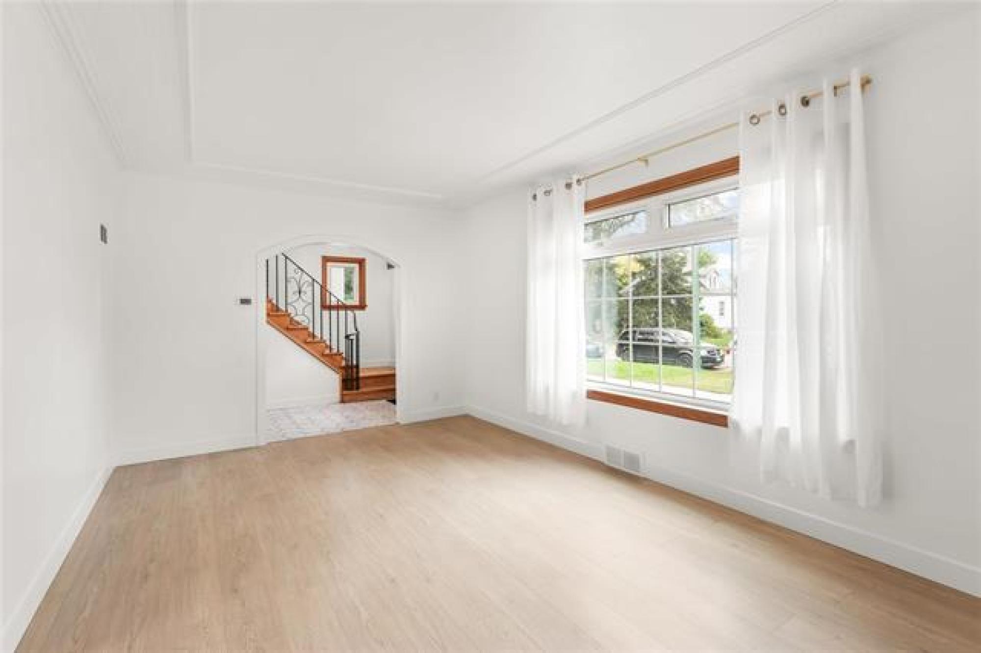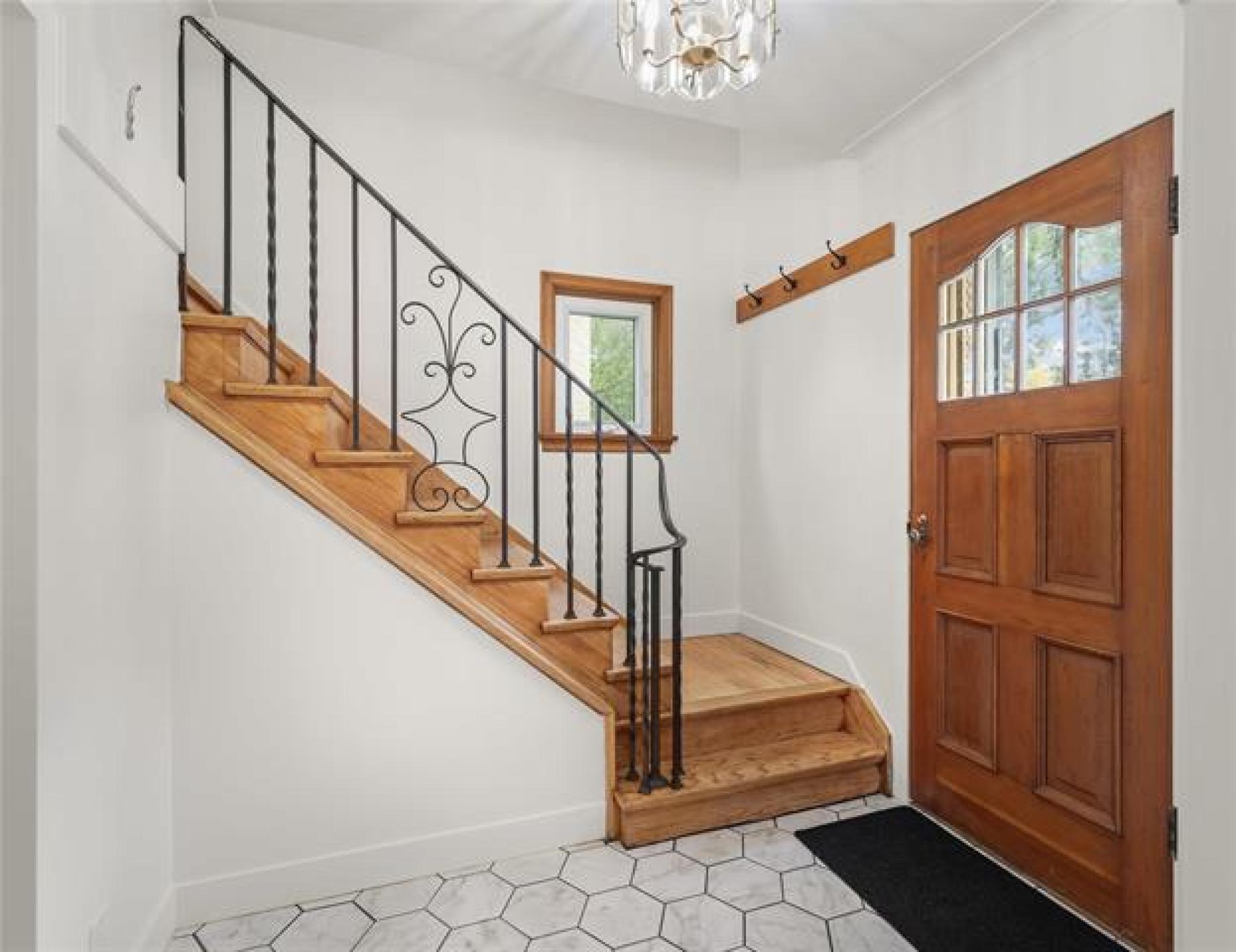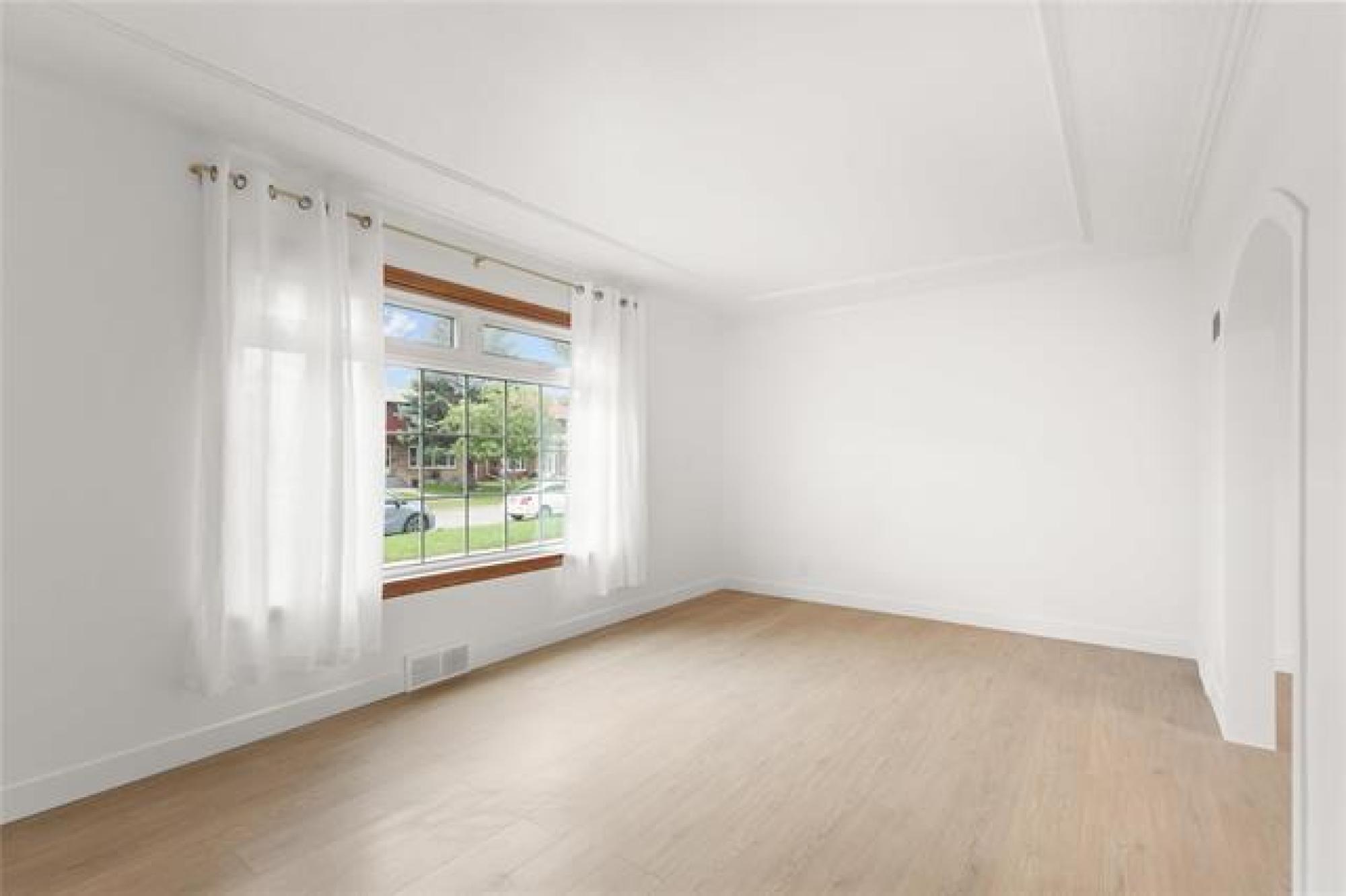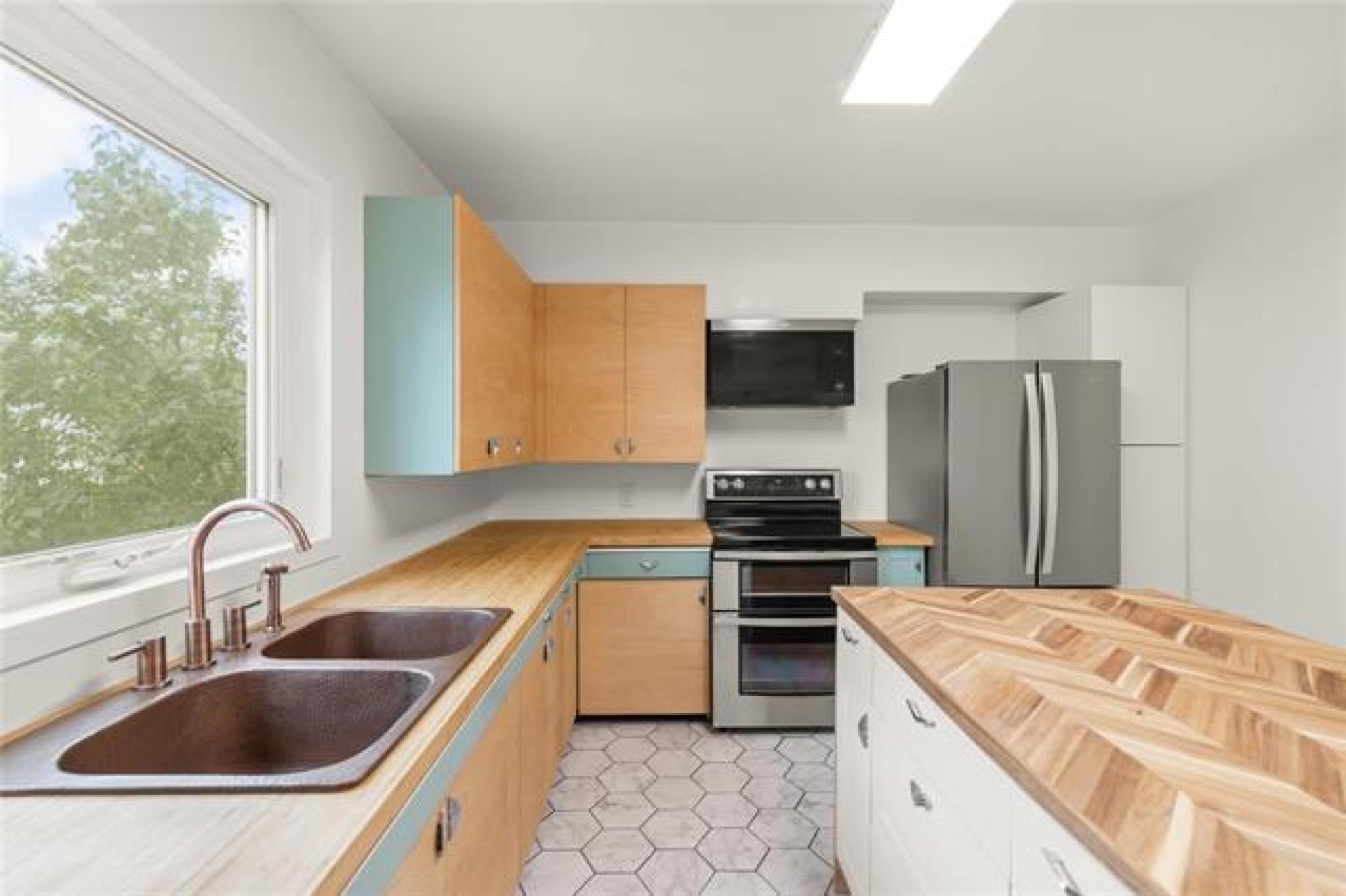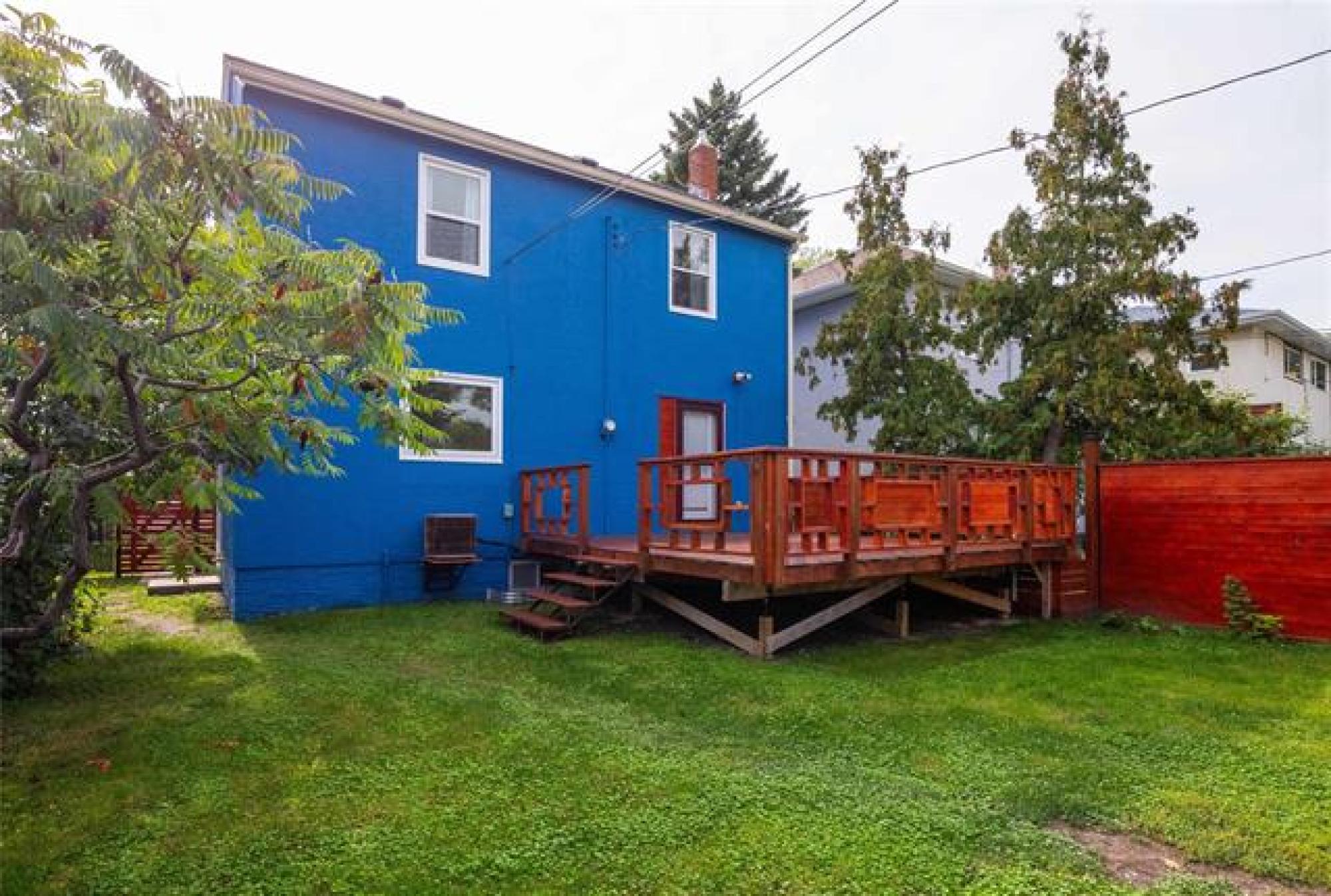 Offers as received. No bidding war. Tastefully remodelled 3 bedroom 1.5 bathroom two storey with double detached garage. Step inside to engineered laminate('25) through the L shaped living/dining room with original crown moulding and south facing picture window letting in an abundance of natural light. Archway leads to the dining room with patio door to your 16x16 deck and fully fenced backyard. Remodelled eat in kitchen('24) offers plenty of counter and cabinet space, honeycomb tile flooring, copper sink, 3x4 island, coffee bar and all SS appliances included. Upstairs offers refinished hardwood flooring throughout('23) large primary bedroom with 2 more ample size bedrooms and 4 pc bathroom with jetted tub, tile tub surround, linen storage and large vanity. Basement offers rec room, half bath and plenty of storage. Additional features and upgrades:Hi eff furnace, pvc windows throughout, architectural shingles, exterior paint 2022, R50 blow in insulation in attic 2022, spray foam insulation in garage, walking distance to parks, schools and all amenities.