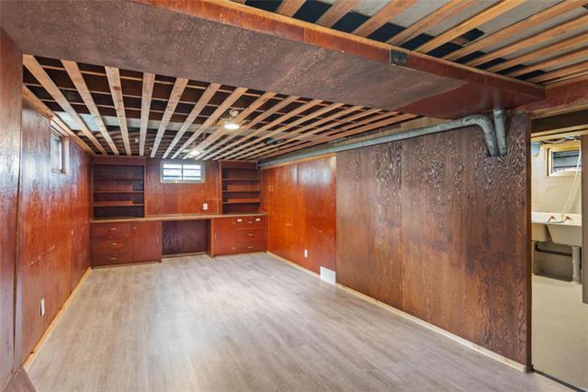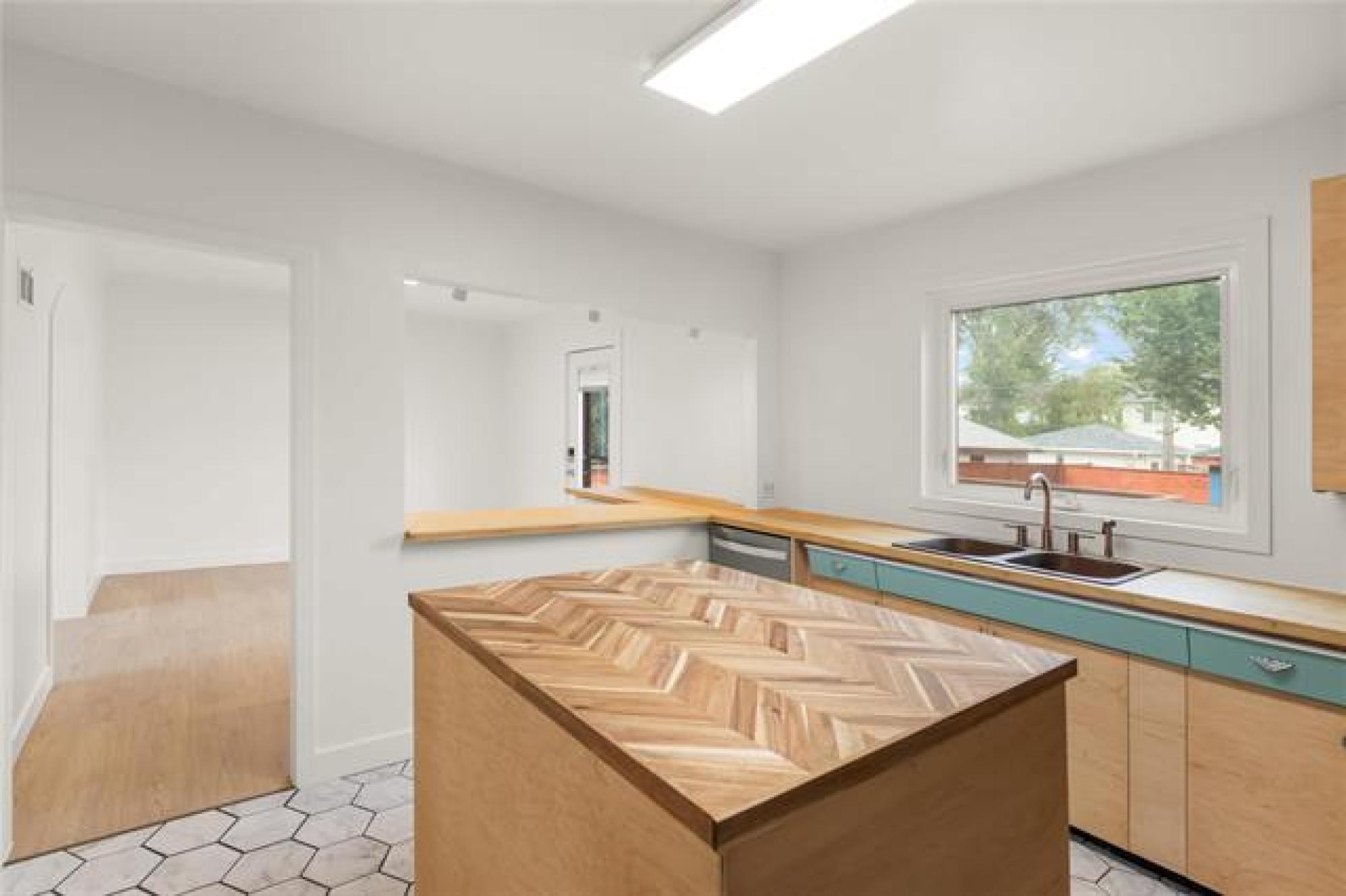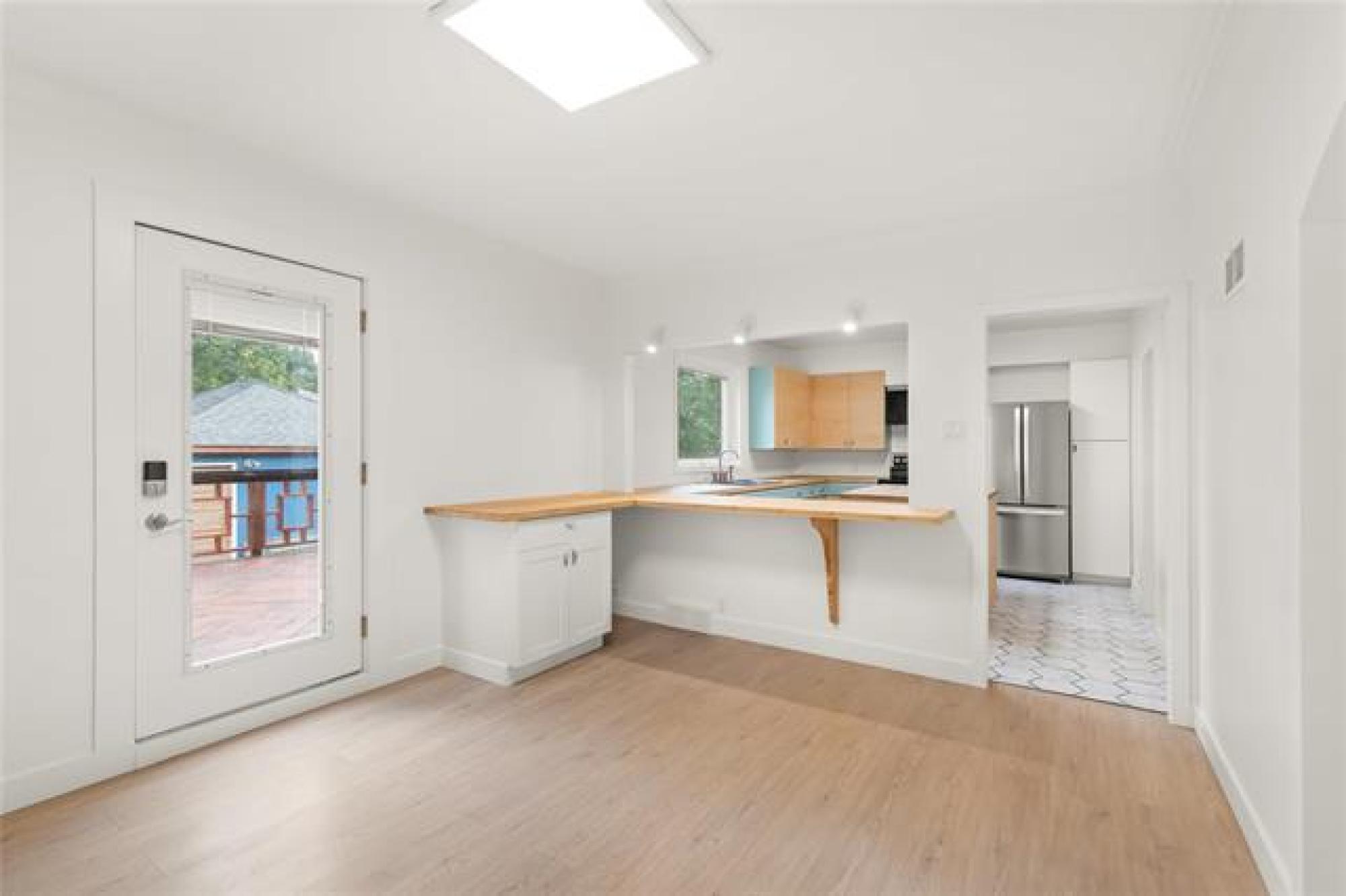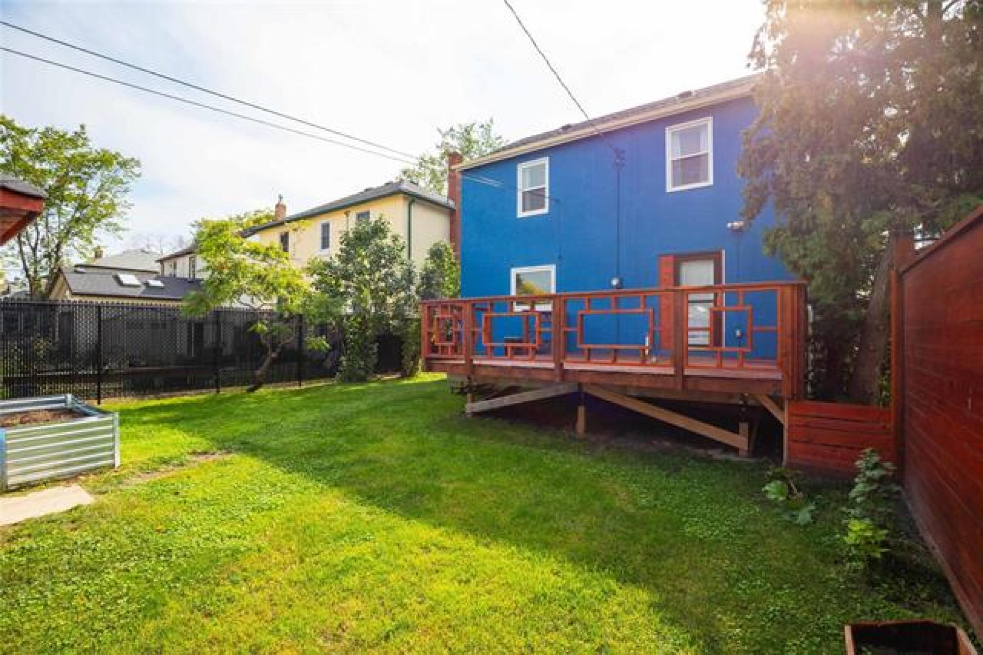Offers as received. No bidding war. Tastefully remodelled 3 bedroom 1.5 bathroom two storey with double detached garage. Step inside to engineered laminate('25) through the L shaped living/dining room with original crown moulding and south facing picture window letting in an abundance of natural light. Archway leads to the dining room with patio door to your 16x16 deck and fully fenced backyard. Remodelled eat in kitchen('24) offers plenty of counter and cabinet space, honeycomb tile flooring, copper sink, 3x4 island, coffee bar and all SS appliances included. Upstairs offers refinished hardwood flooring throughout('23) large primary bedroom with 2 more ample size bedrooms and 4 pc bathroom with jetted tub, tile tub surround, linen storage and large vanity. Basement offers rec room, half bath and plenty of storage. Additional features and upgrades:Hi eff furnace, pvc windows throughout, architectural shingles, exterior paint 2022, R50 blow in insulation in attic 2022, spray foam insulation in garage, walking distance to parks, schools and all amenities.