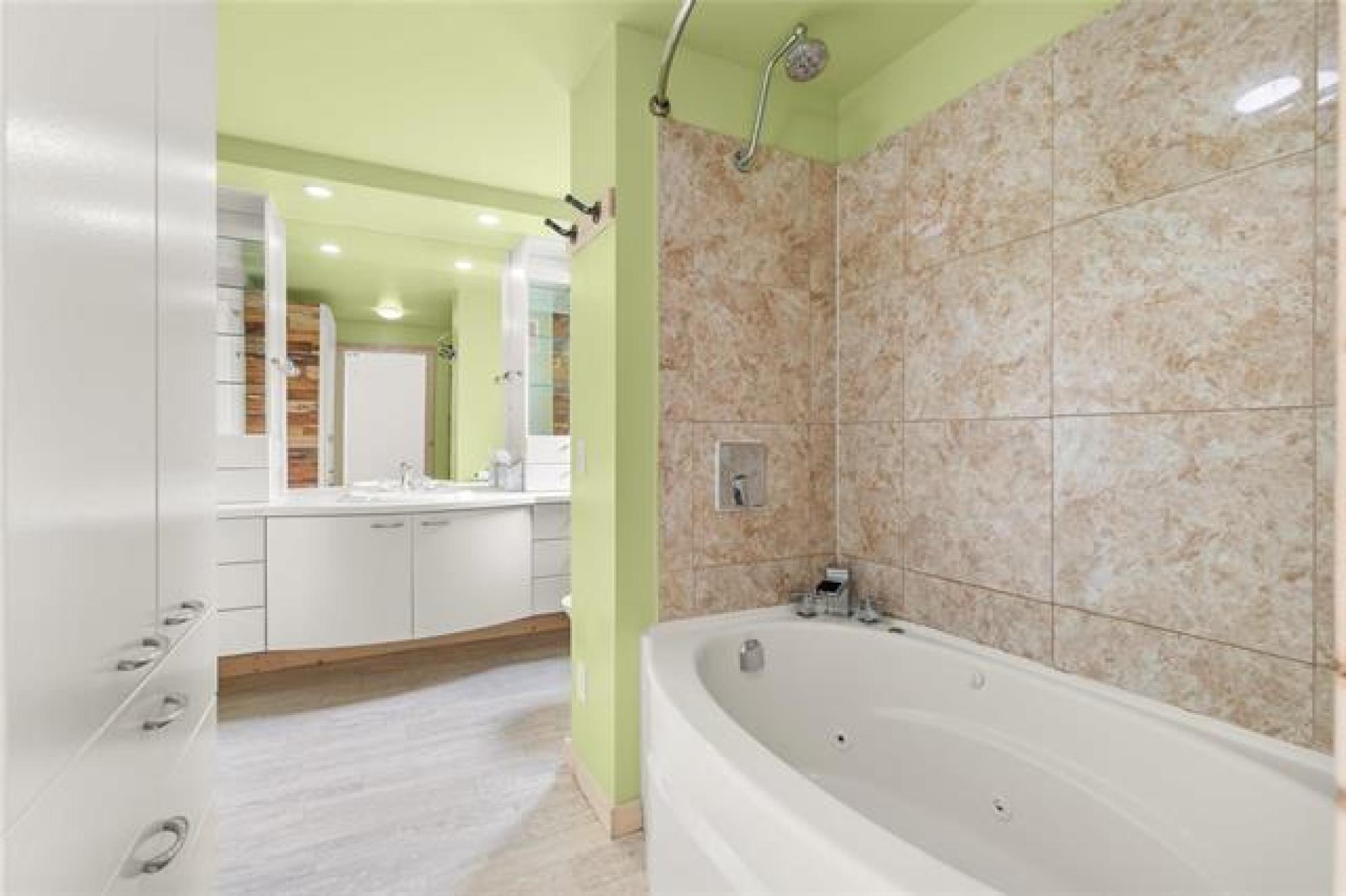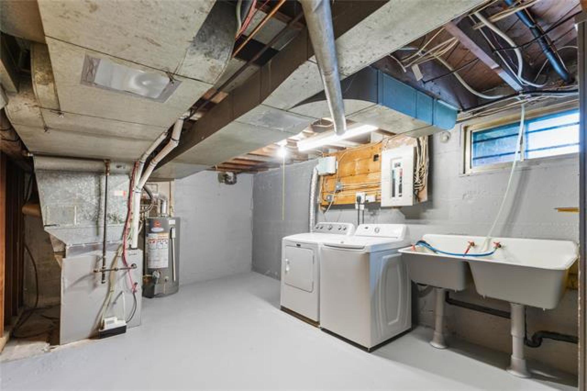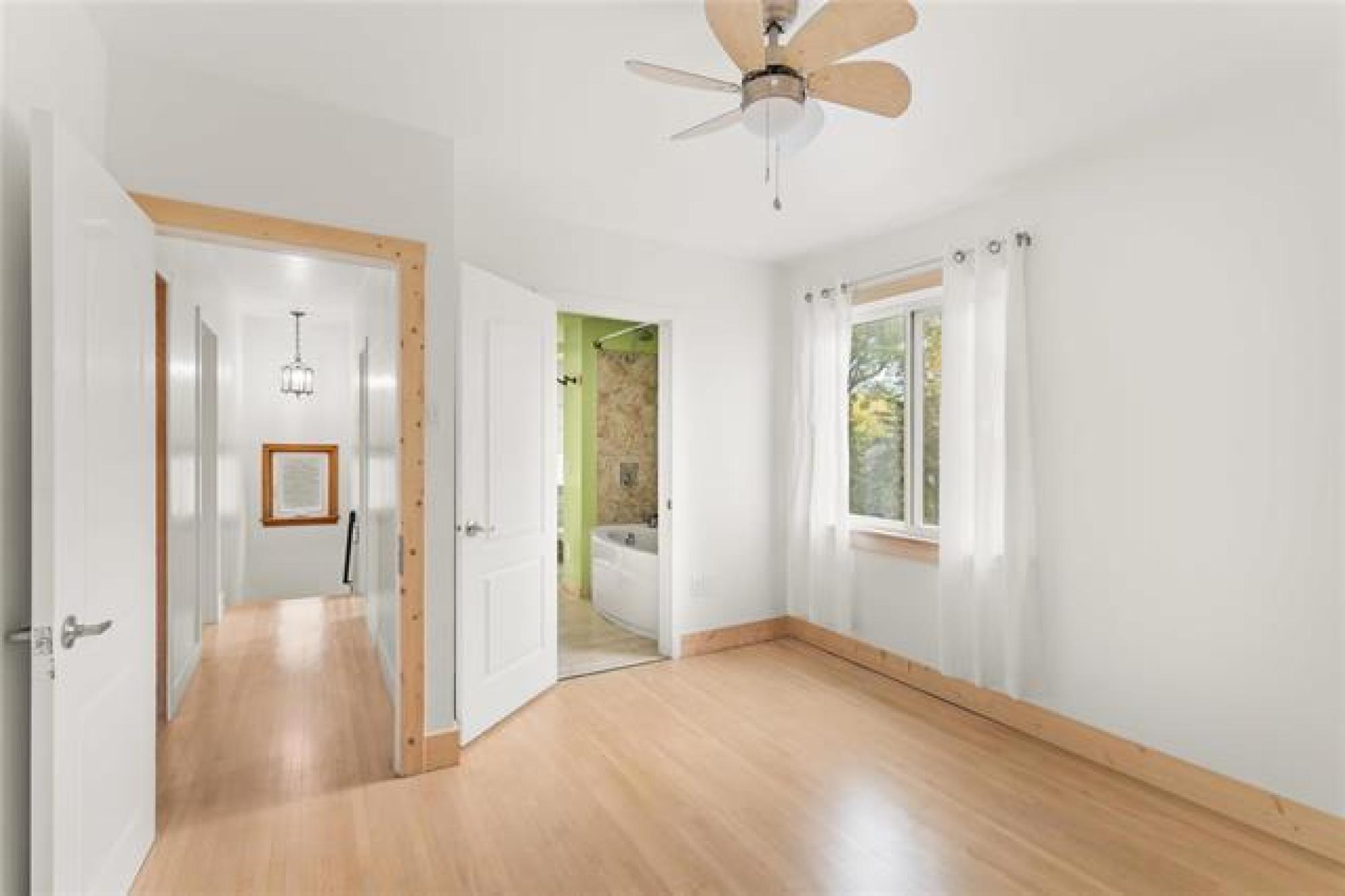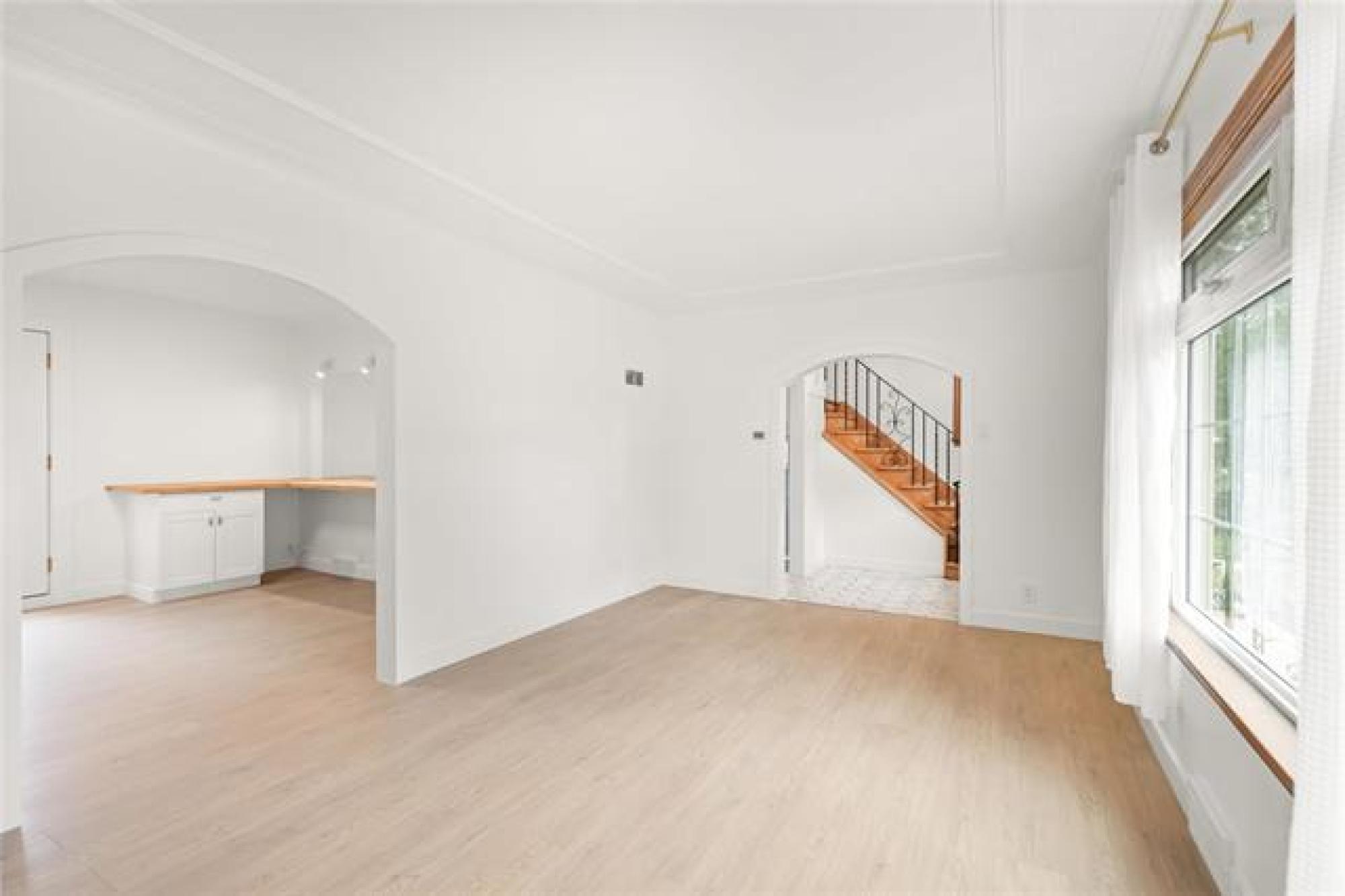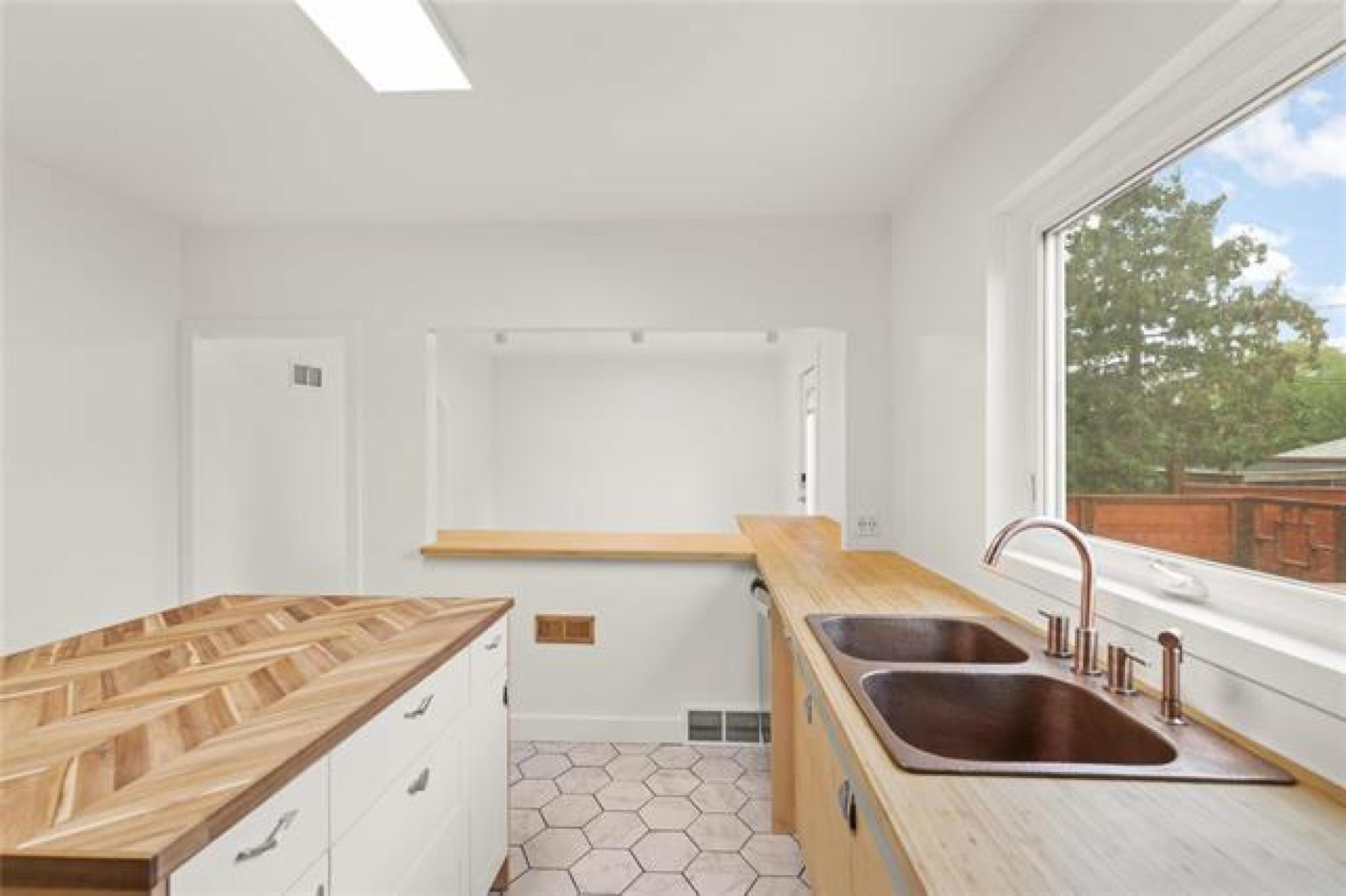 Offers as received. No bidding war. Tastefully remodelled 3 bedroom 1.5 bathroom two storey with double detached garage. Step inside to engineered laminate('25) through the L shaped living/dining room with original crown moulding and south facing picture window letting in an abundance of natural light. Archway leads to the dining room with patio door to your 16x16 deck and fully fenced backyard. Remodelled eat in kitchen('24) offers plenty of counter and cabinet space, honeycomb tile flooring, copper sink, 3x4 island, coffee bar and all SS appliances included. Upstairs offers refinished hardwood flooring throughout('23) large primary bedroom with 2 more ample size bedrooms and 4 pc bathroom with jetted tub, tile tub surround, linen storage and large vanity. Basement offers rec room, half bath and plenty of storage. Additional features and upgrades:Hi eff furnace, pvc windows throughout, architectural shingles, exterior paint 2022, R50 blow in insulation in attic 2022, spray foam insulation in garage, walking distance to parks, schools and all amenities.