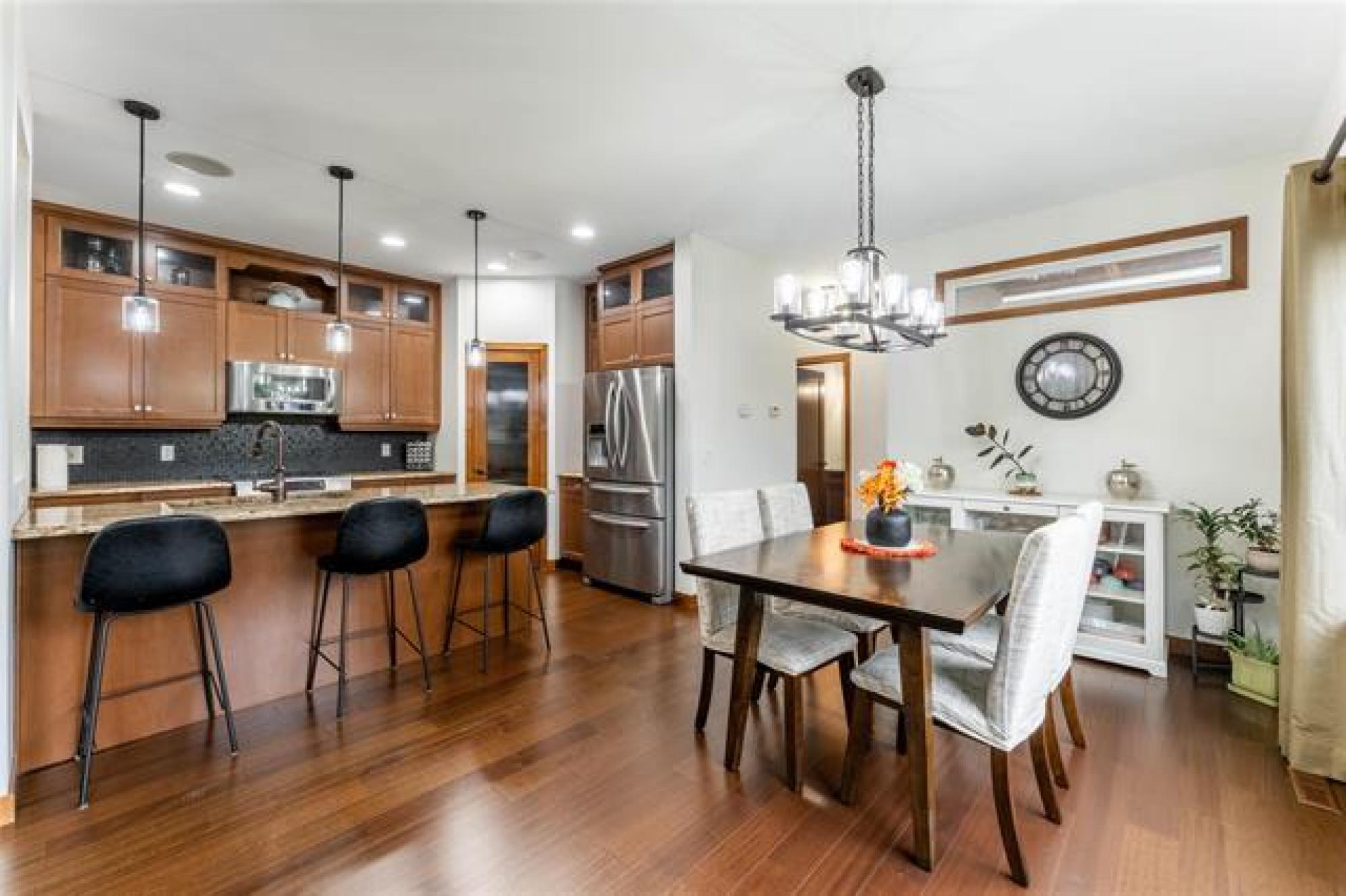 Offers as received - Discover life in the heart of South Pointe with this stunning family home by Foxridge Homes, the luxury division of Qualico. From the moment you arrive, you’ll be impressed by the curb appeal and the convenience of an attached double car garage. The welcoming front porch is perfect for greeting guests or enjoying your morning coffee. Inside, the open-concept main floor seamlessly connects the living room and kitchen—perfect for gatherings and everyday living. Soaring ceilings, custom blinds, and an abundance of natural light highlight the space. The living area showcases a beautiful built-in gas fireplace w/ mantle, a custom entertainment unit, and a built-in audio system. The chef’s kitchen features granite countertops, stainless steel appliances, a pantry, and a spacious island. Main floor laundry, a mudroom, and a powder room add extra functionality. Upstairs, retreat to the primary suite complete w/ a walk-in closet, 4-piece ensuite, and a magnificent covered terrace overlooking the expansive backyard. Two additional large bedrooms and a full bath provide plenty of room for family. This home blends modern luxury with everyday comfort and waiting for your to move in!