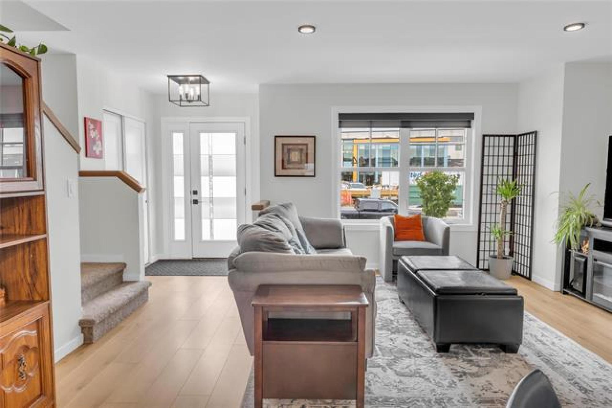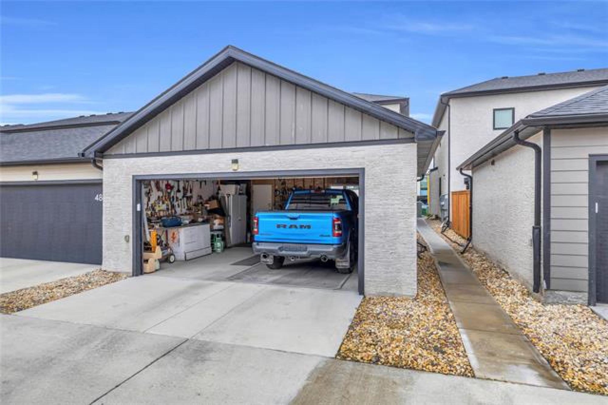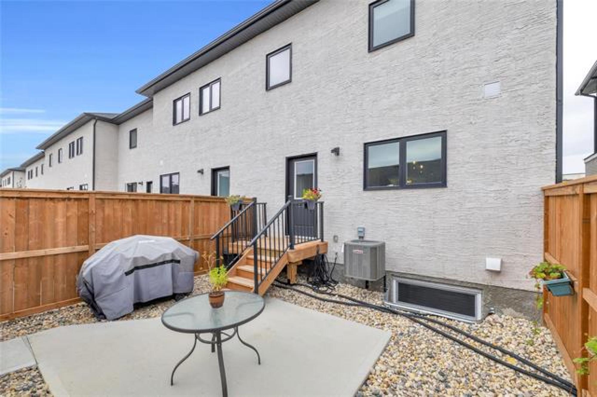 PET Friendly! Loaded w/Upgrades! Luxury open concept condo!. Nicer than the Display unit!. Entrance foyer with dble clothes closet. ISLAND Kit w/breakfast bar, tile backsplash, 3 S.S. High End Appliances, Sil-granite undermount sink, quartz/caesarstone counters, Chimney style exhaust fan, 4 pot lights & a wdw looking at the back yard. Laminate flooring in the Lr-Dr, Kit & hallway. 2 pce bath w/quartz/caesarstone counter & undermount sink on this level. 2nd floor features a Laundry rm w/washer/dryer, Spacious Primary Bdrm with walk-in clothes closet, 3 pce bath w/ 4 ft walk-in shower & quartz/ caesarstone counter & undermount sink & 2 other Bdrms. Designer blinds thruout. Rear door leads to a BBQ deck, patio, fenced back yard & the garage. Incredibly rare 22ft X 22ft DOUBLE Detached GARAGE w/insulated overhead door & opener. Fits a full size 1/2 ton truck! Parking for a 3rd car behind the garage with plug. Balance of New Home Warranty remaining. K-8 French Sch across the street and Living Prairie Childcare short walk from your front door.