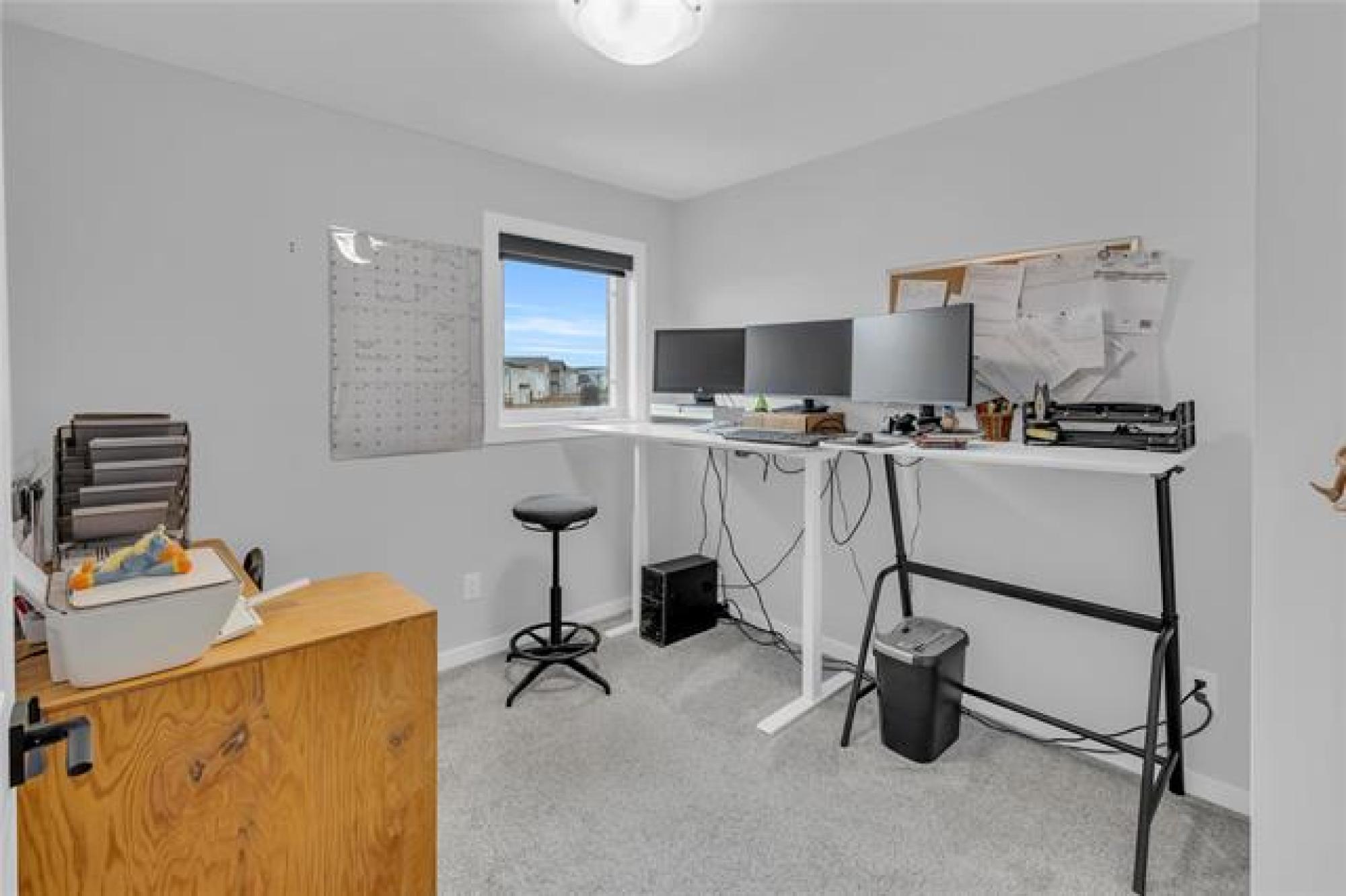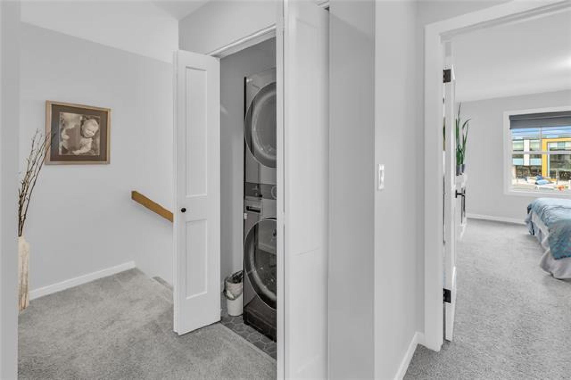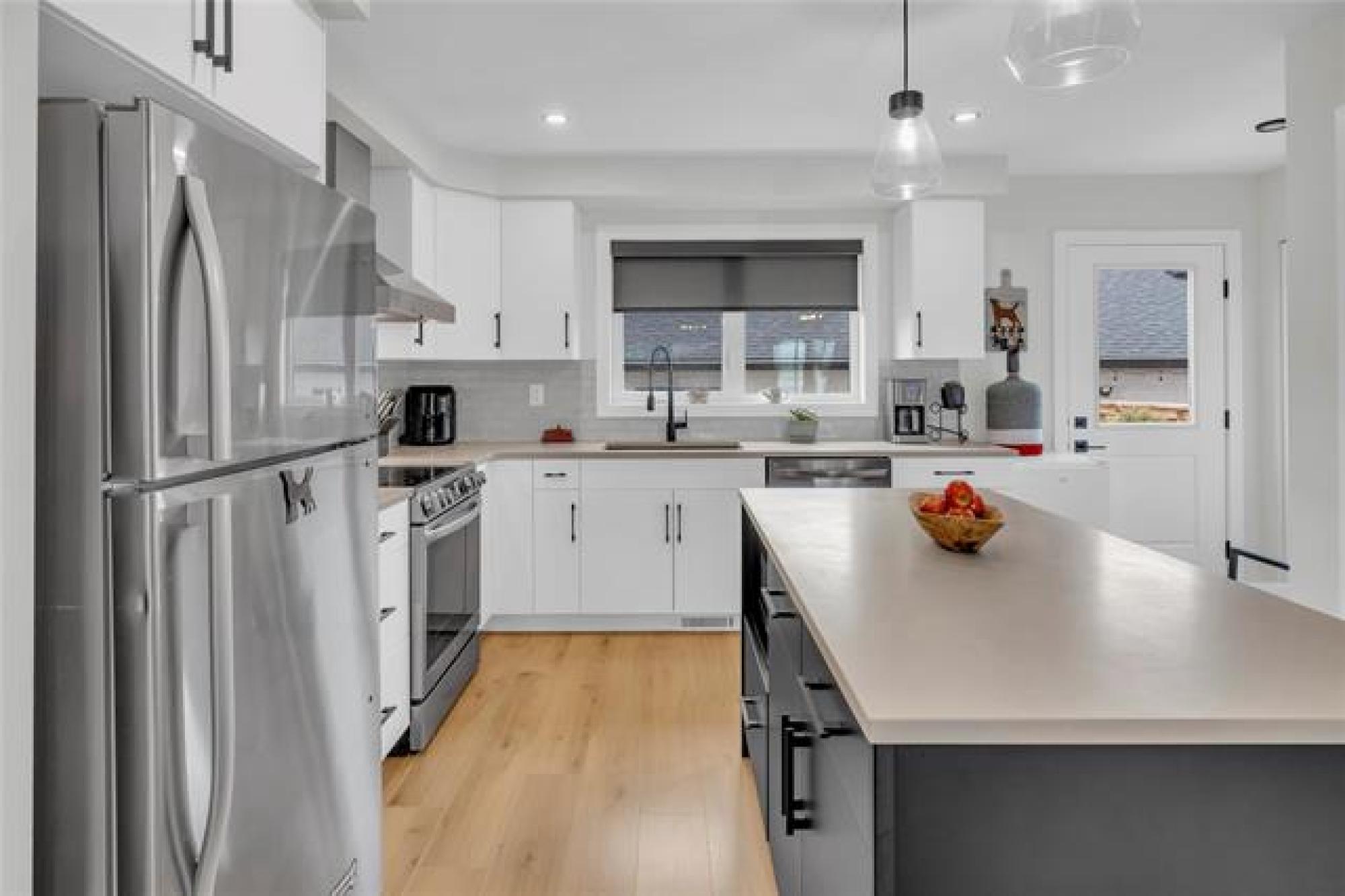 PET Friendly! Loaded w/Upgrades! Luxury open concept condo!. Nicer than the Display unit!. Entrance foyer with dble clothes closet. ISLAND Kit w/breakfast bar, tile backsplash, 3 S.S. High End Appliances, Sil-granite undermount sink, quartz/caesarstone counters, Chimney style exhaust fan, 4 pot lights & a wdw looking at the back yard. Laminate flooring in the Lr-Dr, Kit & hallway. 2 pce bath w/quartz/caesarstone counter & undermount sink on this level. 2nd floor features a Laundry rm w/washer/dryer, Spacious Primary Bdrm with walk-in clothes closet, 3 pce bath w/ 4 ft walk-in shower & quartz/ caesarstone counter & undermount sink & 2 other Bdrms. Designer blinds thruout. Rear door leads to a BBQ deck, patio, fenced back yard & the garage. Incredibly rare 22ft X 22ft DOUBLE Detached GARAGE w/insulated overhead door & opener. Fits a full size 1/2 ton truck! Parking for a 3rd car behind the garage with plug. Balance of New Home Warranty remaining. K-8 French Sch across the street and Living Prairie Childcare short walk from your front door.