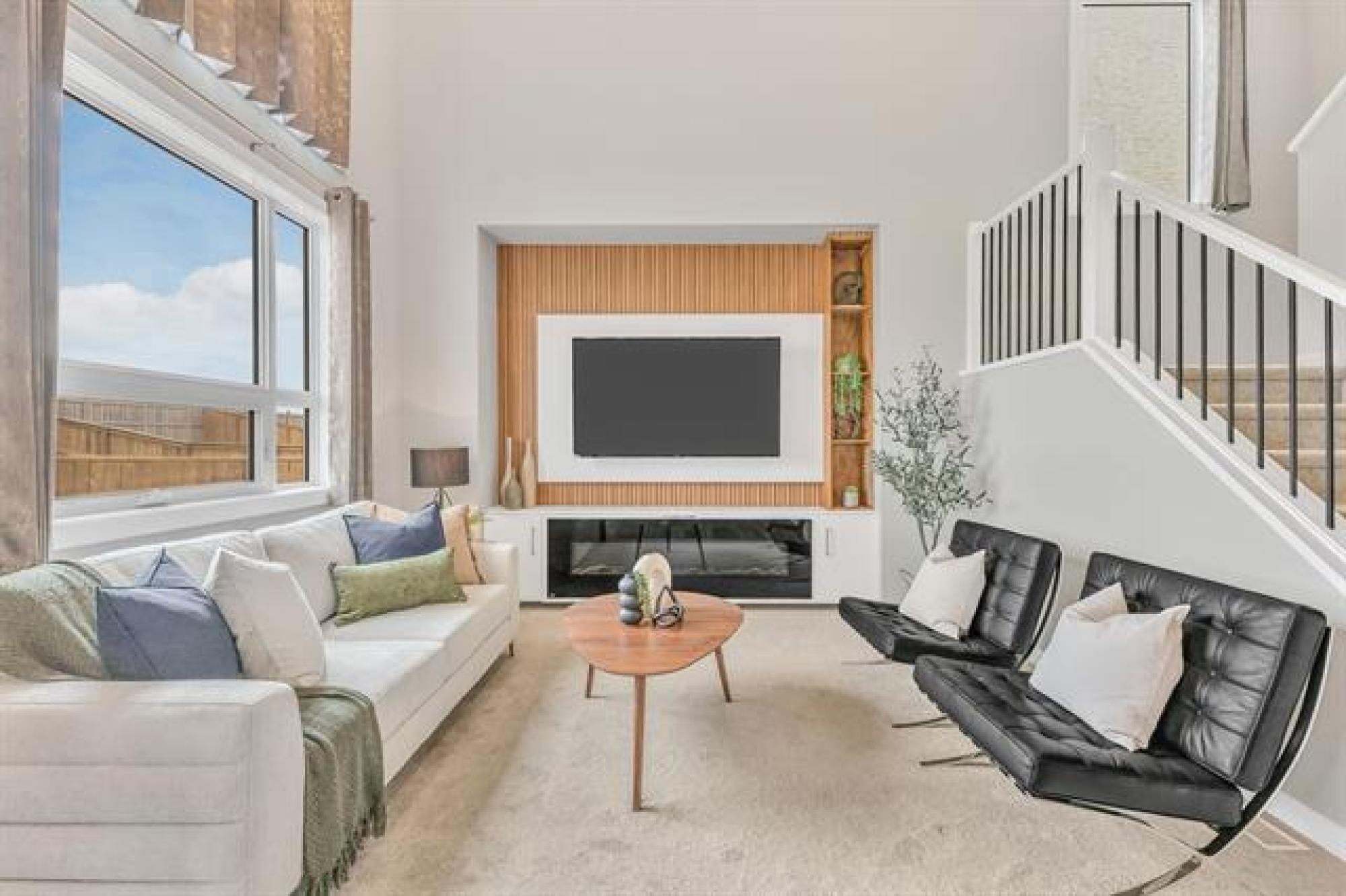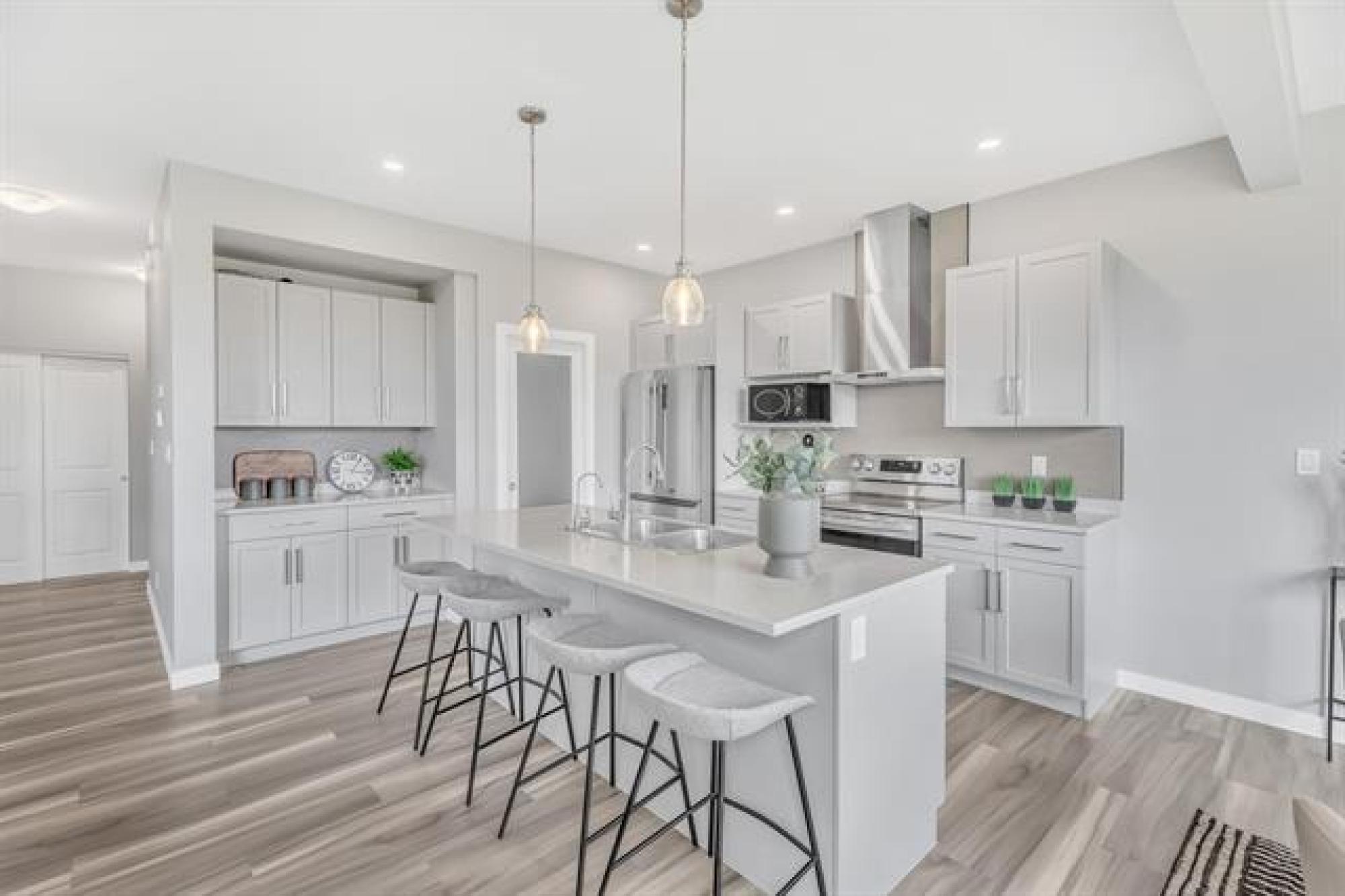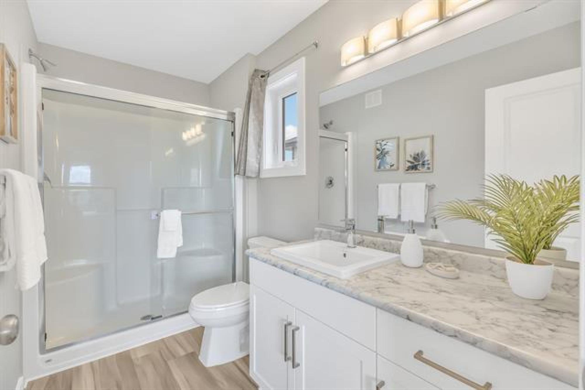 SHOW HOME LIKE 1,831 sq. ft. two-storey blends modern style with functional design. Featuring 3 spacious bedrooms and 3 bathrooms, it’s ideal for families. A large front foyer welcomes you into an open-concept main floor with luxury vinyl plank flooring, quartz countertops, and oversized windows filling the home with natural light. The kitchen boasts a walk-in pantry and island, flowing seamlessly to the living room with a dramatic two-storey ceiling and striking fireplace feature wall—perfect for entertaining. A main floor powder room adds convenience. Upstairs, find a handy laundry room, two generous secondary bedrooms, and a gorgeous primary suite with walk-in closet and private ensuite. The fully insulated basement offers potential for another bedroom, bath, or rec room. Enjoy the double attached garage, extra-wide driveway, landscaped yard, and deck for summer BBQs. With curb appeal that stands out, this move-in-ready home offers style, comfort, and room to grow!