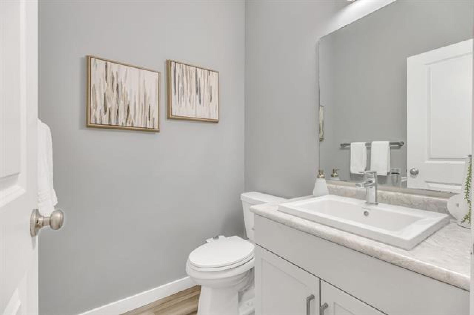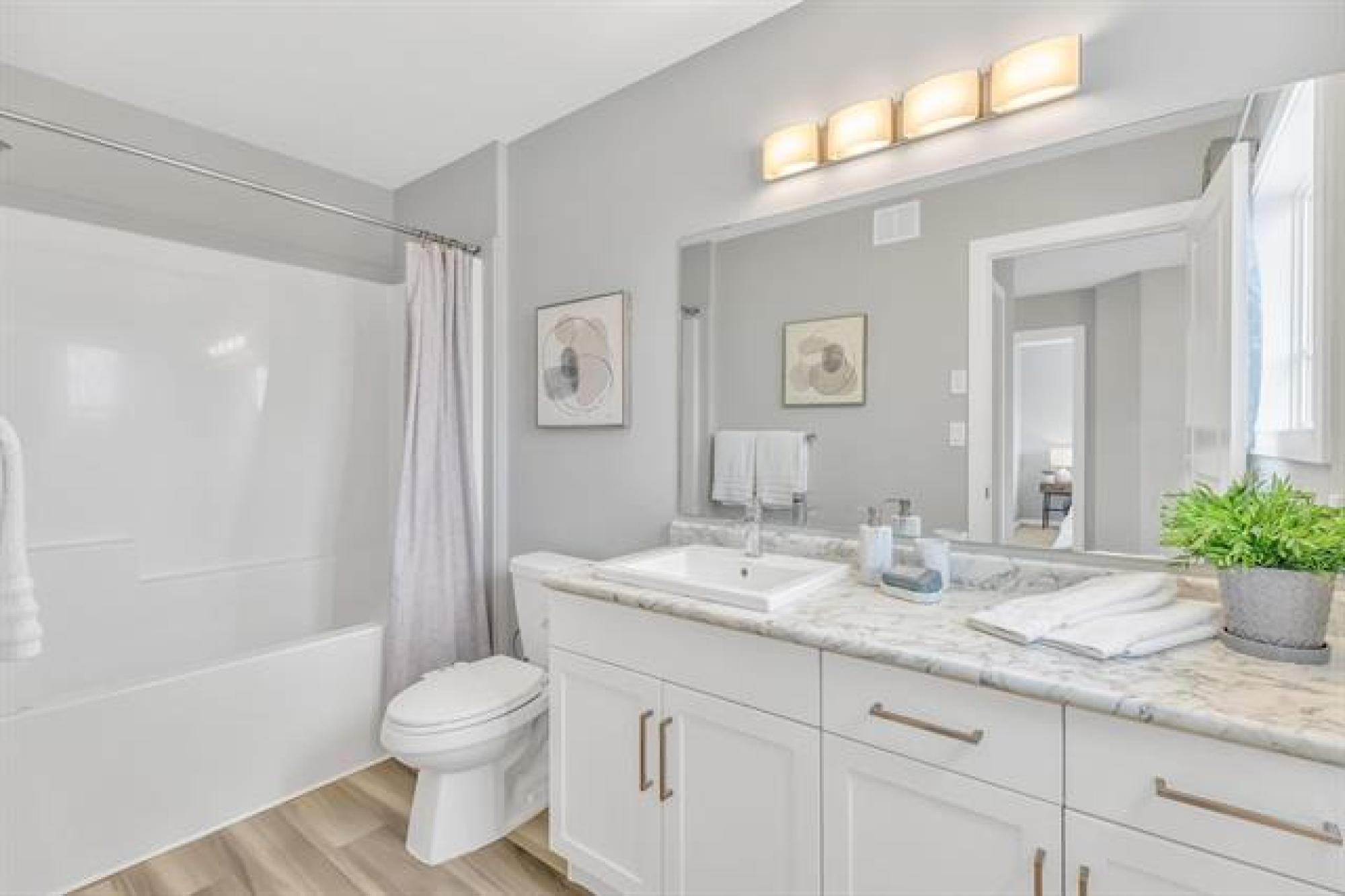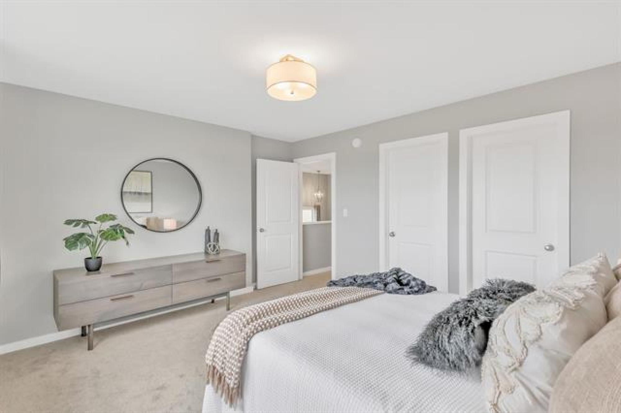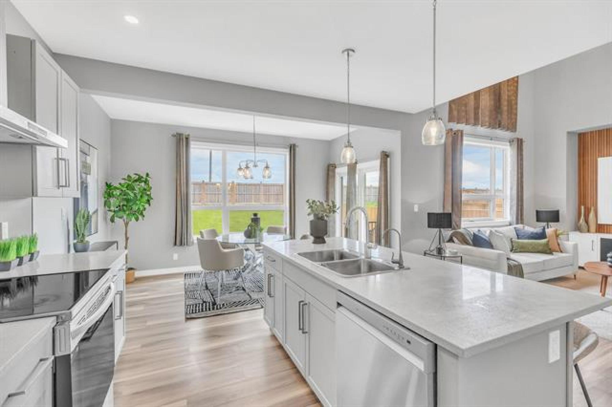 SHOW HOME LIKE 1,831 sq. ft. two-storey blends modern style with functional design. Featuring 3 spacious bedrooms and 3 bathrooms, it’s ideal for families. A large front foyer welcomes you into an open-concept main floor with luxury vinyl plank flooring, quartz countertops, and oversized windows filling the home with natural light. The kitchen boasts a walk-in pantry and island, flowing seamlessly to the living room with a dramatic two-storey ceiling and striking fireplace feature wall—perfect for entertaining. A main floor powder room adds convenience. Upstairs, find a handy laundry room, two generous secondary bedrooms, and a gorgeous primary suite with walk-in closet and private ensuite. The fully insulated basement offers potential for another bedroom, bath, or rec room. Enjoy the double attached garage, extra-wide driveway, landscaped yard, and deck for summer BBQs. With curb appeal that stands out, this move-in-ready home offers style, comfort, and room to grow!