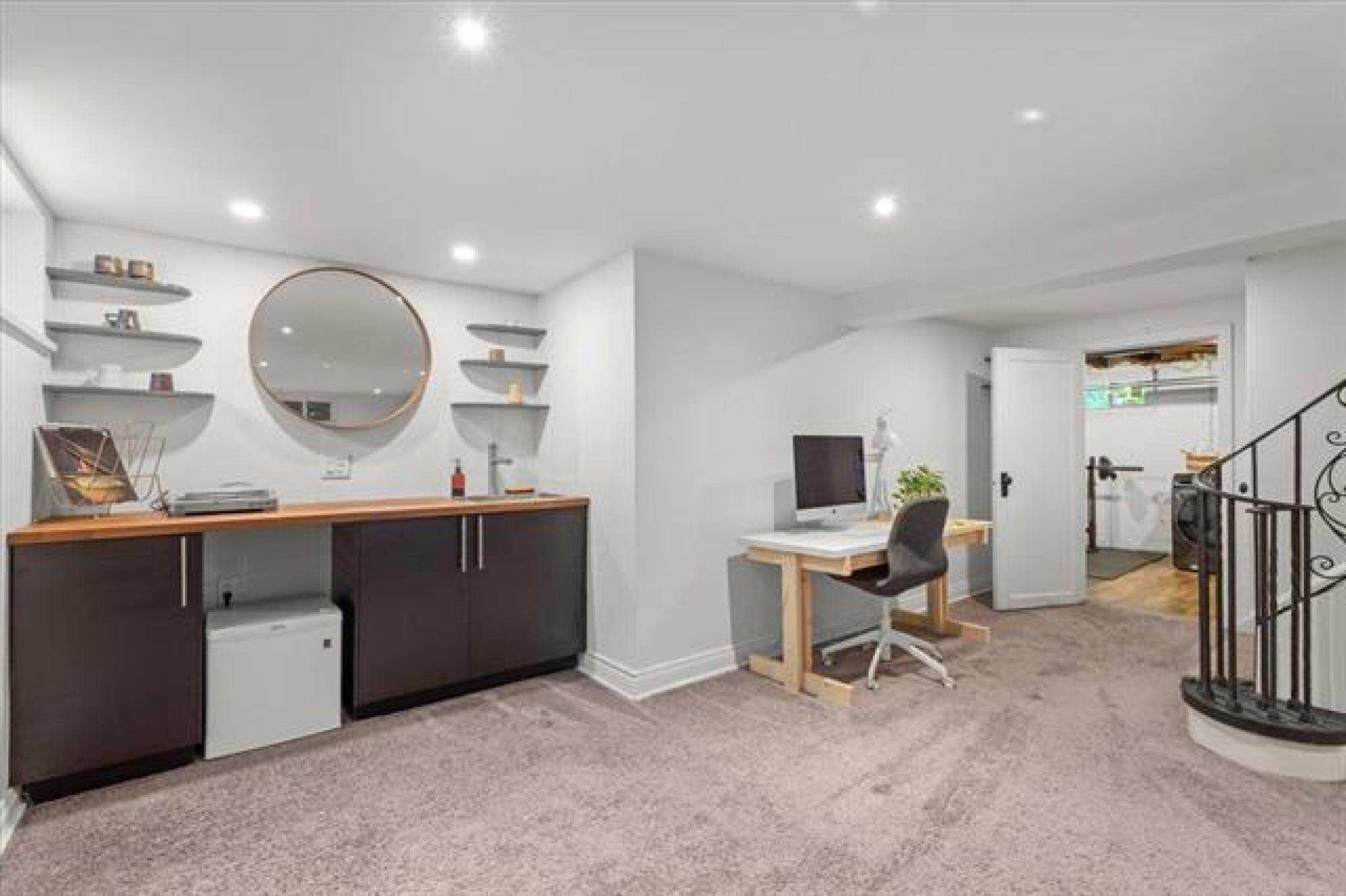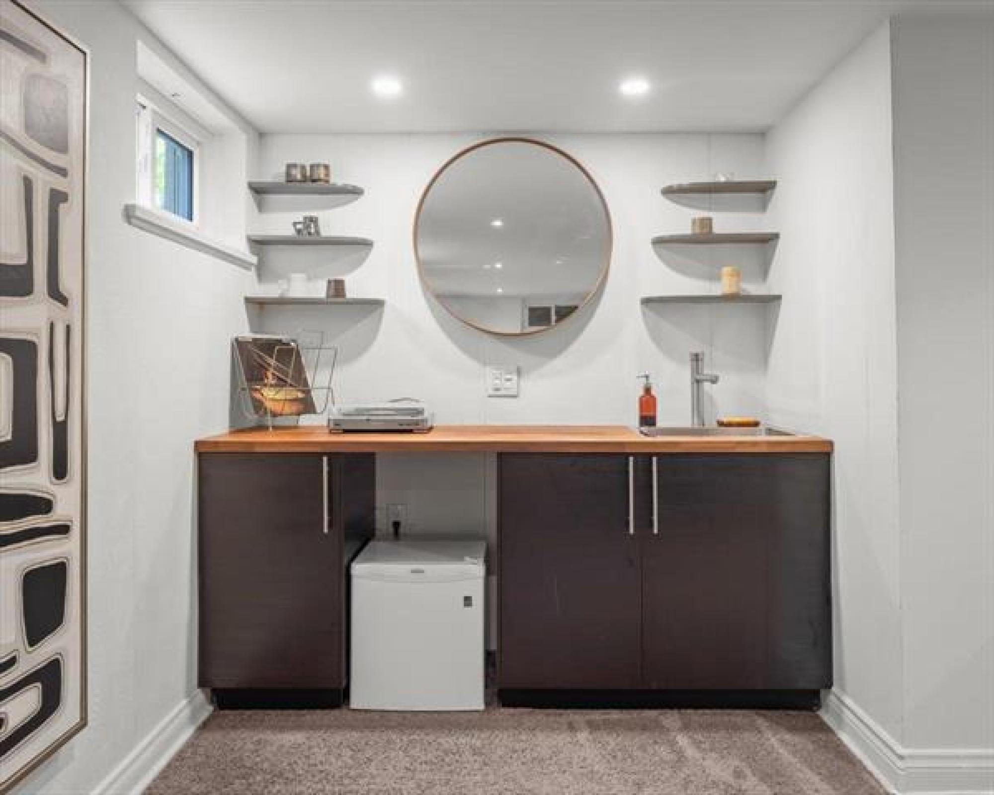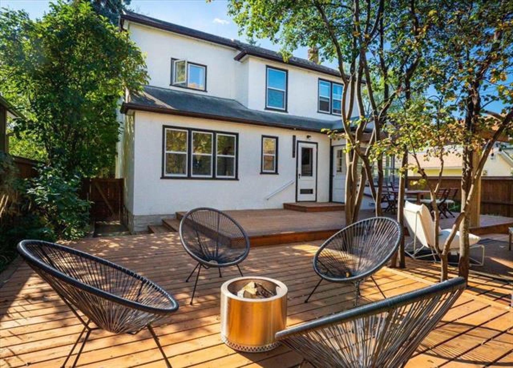 Offers as received. Welcome to this stunning character home, beautifully updated while maintaining its timeless charm, just steps from the river. From the moment you walk in, you’ll be captivated by the thoughtful design and inviting atmosphere. A striking center staircase separates the sun-filled living room from the dining area and updated kitchen. The dining space and kitchen are bright and modern, featuring quartz countertops, stainless steel appliances, and the perfect layout for entertaining. A main-floor office overlooking the backyard and a stylish powder room add convenience and functionality. Upstairs, you’ll find three bedrooms, including a uniquely spacious primary suite, along with a beautifully finished 4-piece bathroom. The lower level offers a generous rec room complete with a bar, plenty of space to relax or entertain, and additional storage with laundry. Step outside to your private backyard oasis, designed for both gatherings and quiet moments. A double detached garage completes the property. Located in a highly desirable area close to countless amenities, this home truly has it all—character, updates, and an unbeatable location. A must-see!
