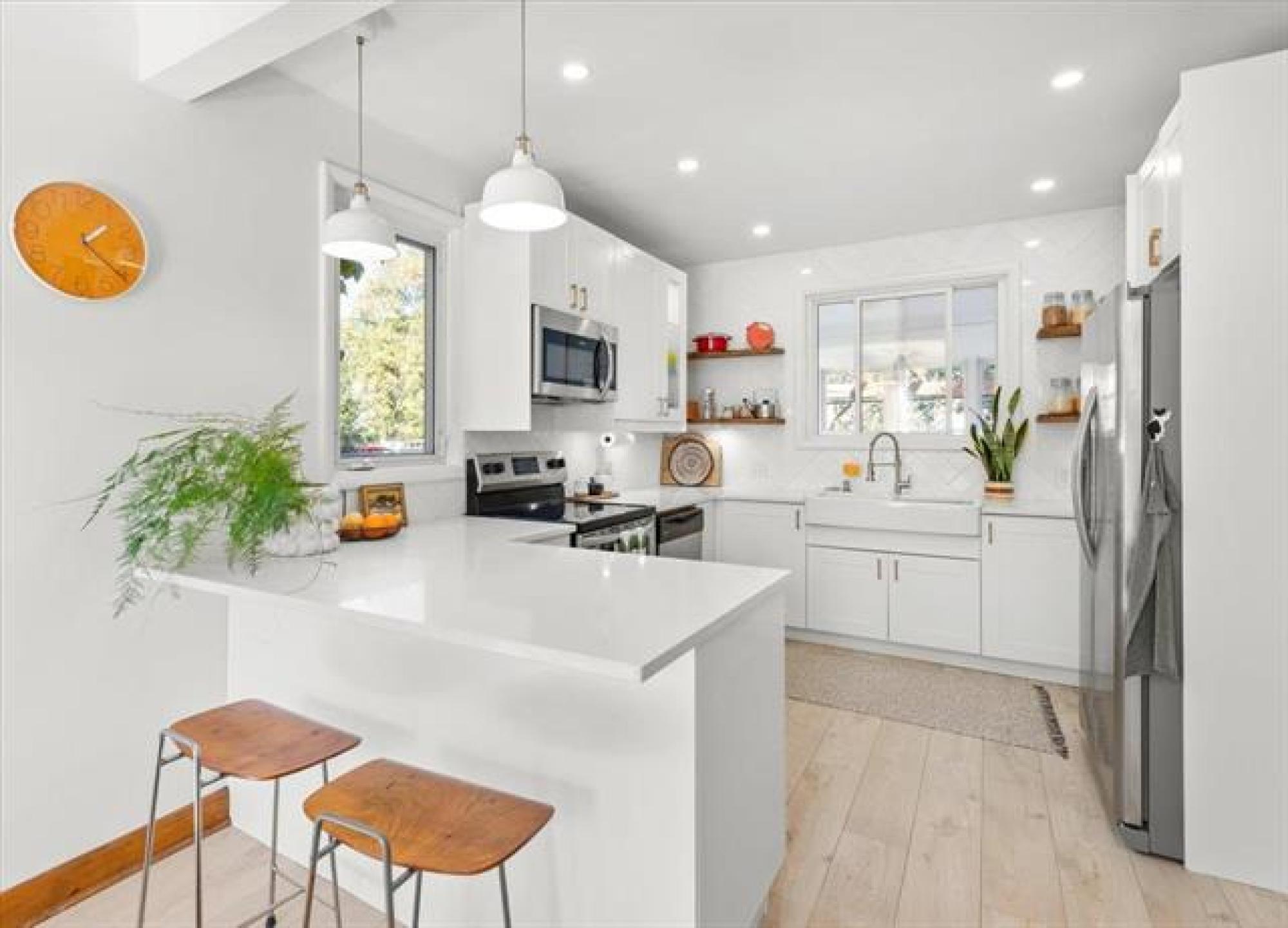 SS Now, Open House Sun Oct 5, 1-3. OTP Tuesday oct 7 PM. Welcome to this stunning character home, beautifully updated while maintaining its timeless charm, just steps from the river. From the moment you walk in, you’ll be captivated by the thoughtful design and inviting atmosphere. A striking center staircase separates the sun-filled living room from the dining area and updated kitchen. The dining space and kitchen are bright and modern, featuring quartz countertops, stainless steel appliances, and the perfect layout for entertaining. A main-floor office overlooking the backyard and a stylish powder room add convenience and functionality. Upstairs, you’ll find three bedrooms, including a uniquely spacious primary suite, along with a beautifully finished 4-piece bathroom. The lower level offers a generous rec room complete with a bar, plenty of space to relax or entertain, and additional storage with laundry. Step outside to your private backyard oasis, designed for both gatherings and quiet moments. A double detached garage completes the property. Located in a highly desirable area close to countless amenities, this home truly has it all—character, updates, and an unbeatable location. A must-see!