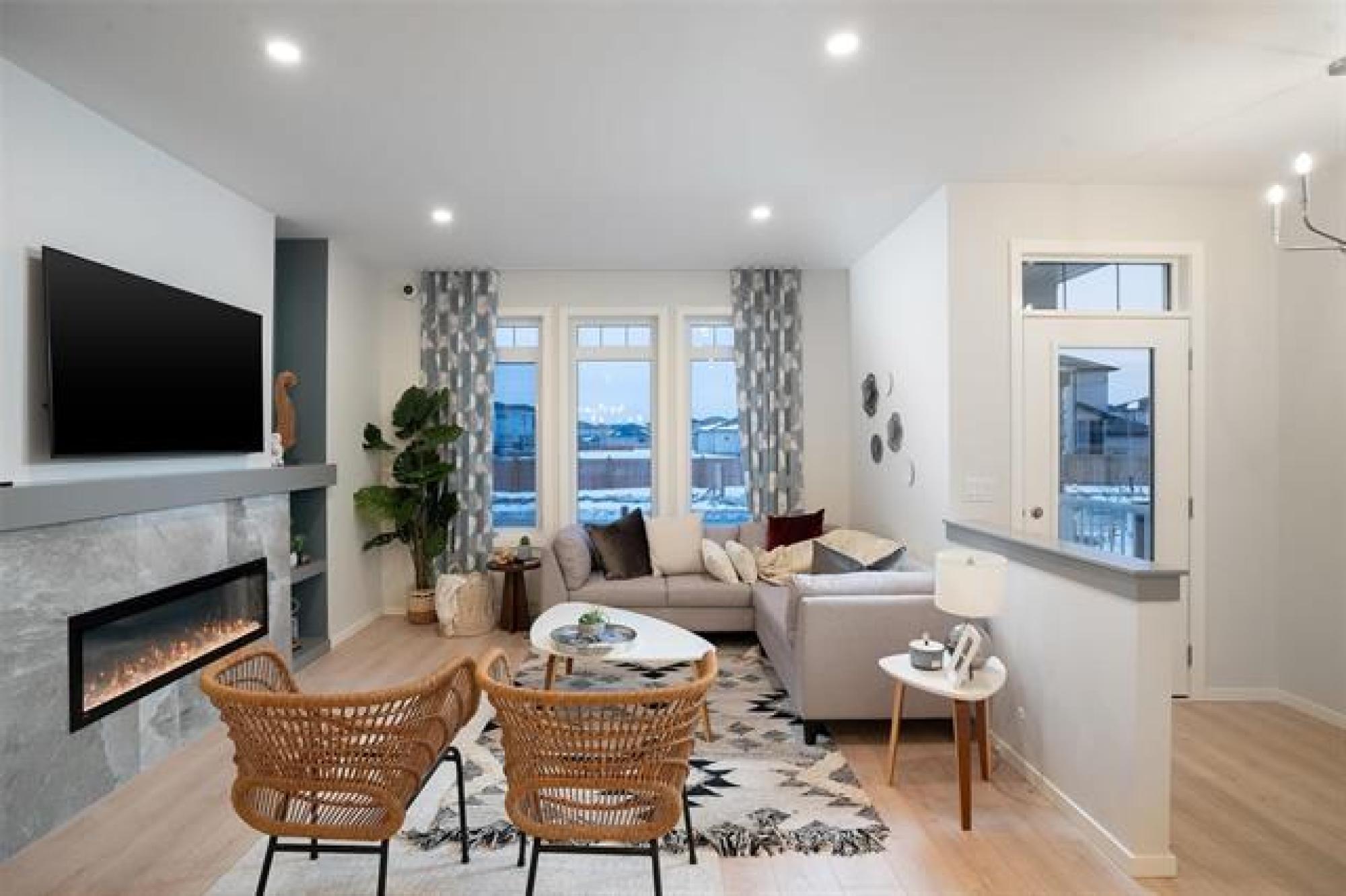 S/S NOW- Welcome to 481 Ken Oblik Drive in Prairie Pointe! This brand-new, fully loaded 1,517 sq. ft. SHOW HOME is now for sale — and a must-see to appreciate the quality and detail throughout. Designed with both style and functionality, it offers raised ceilings, a custom fireplace wall, designer cabinetry with quartz countertops, and countless premium upgrades in and out! The home is truly turn-key, including all the extras- professional landscaping, A/C, window coverings, alarm/video surveillance systems, & even the Smart TV is included! The main floor features an open-concept layout ideal for entertaining, while the upper level includes three bedrooms, multiple baths, second-floor laundry, and a luxurious primary suite with walk-in closet and stunning ensuite with 5'x3' tiled glass shower. The basement is suite-ready, with a private side entry, rough-ins for a bathroom and kitchenette, secondary laundry hookups, and space designed for a potential 2-bedroom suite — perfect for multigenerational living or rental income. This award-winning home is available for January possession and backed by a 5-year Manitoba New Home Warranty. Don’t miss out — book your private showing today!