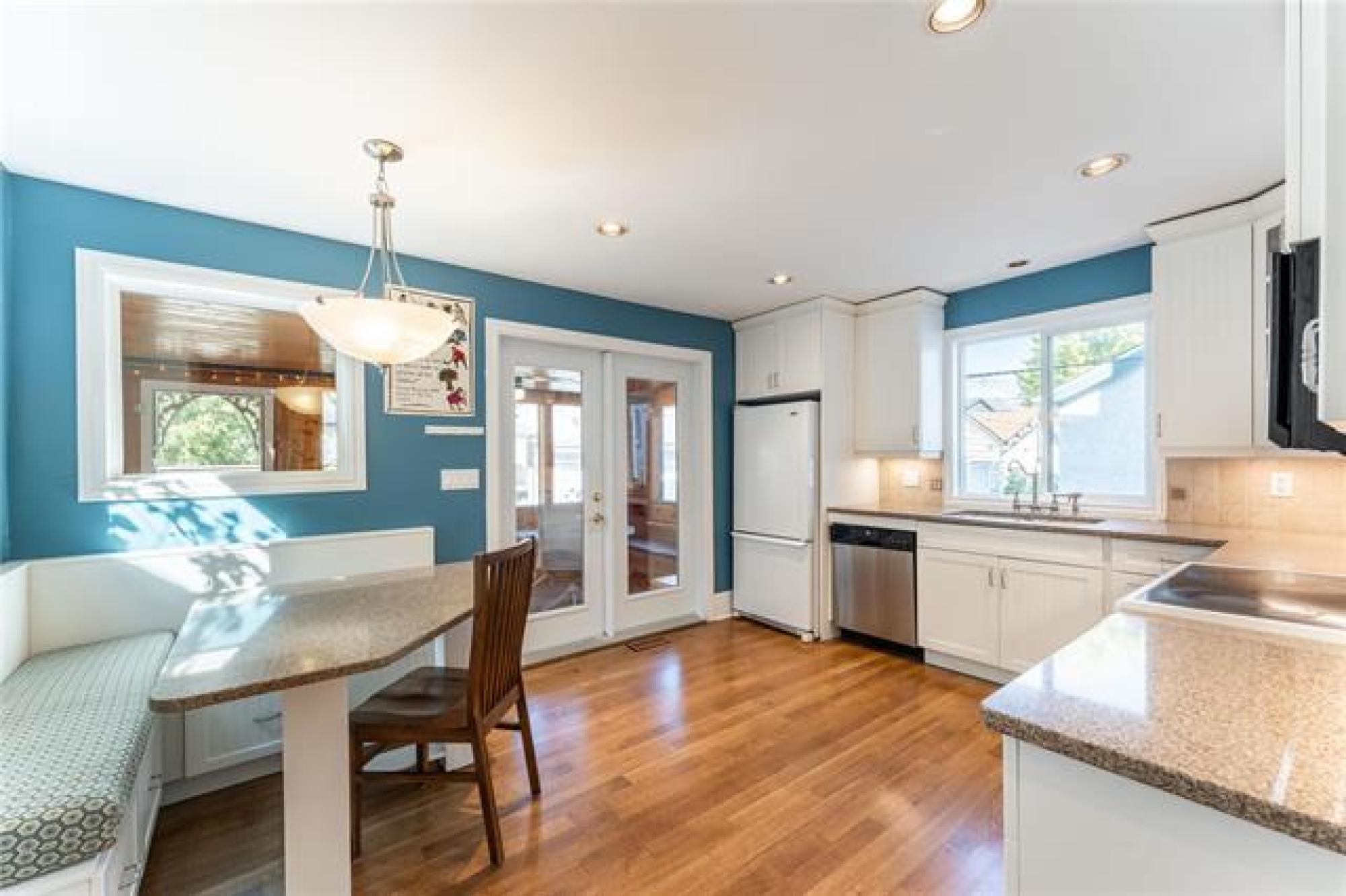 PRICE REDUCED! Offers as received! Charming, solid, and ideally located, this 3-bedroom, 2-bath, 1,232 sq ft two-storey in Lord Roberts blends character and convenience for comfortable family living. Step into the bright enclosed front porch, then into a freshly painted interior highlighted by beautifully refinished hardwood floors. The main floor offers a functional layout with a cozy living room, dedicated dining area, full 3-piece bath, and a large eat-in kitchen featuring white cabinetry, a built-in nook, and patio doors leading to a sunny back porch overlooking the yard. Upstairs you’ll find a 4-piece bath and all three bedrooms, including a spacious primary with walk-in closet. The unfinished basement provides laundry, a workshop area, and plenty of storage. Outside, the freshly painted exterior and low-maintenance yard make for easy living. All of this in a friendly, walkable neighbourhood just off Osborne - steps to schools, parks, trails, restaurants, and everything else that makes this area so loved.