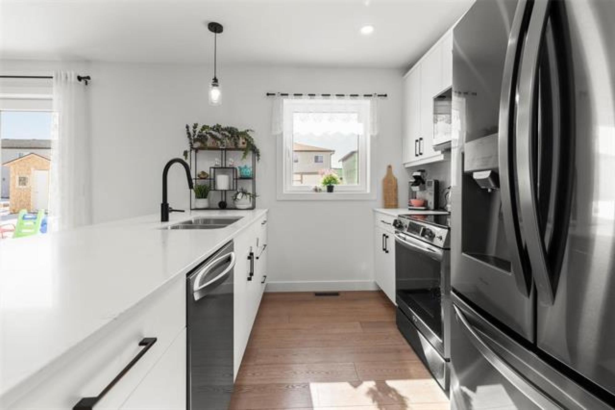 Like-new turn-key home offering 3 bedrooms and 3.5 bathrooms with a FULLY FINISHED BASEMENT and attached insulated/drywalled garage. So much value with INCLUDED APPLIANCES, deck and landscaping already in place! The main floor features a galley kitchen with quartz countertops and pantry, dining area with patio doors to the deck, bright living room and convenient powder room. The upper level offers a primary bedroom with walk-in closet and 3-piece ensuite with tiled shower, two additional bedrooms, a 4 piece bathroom and laundry room. The finished basement includes a rec room, office, 4 piece bathroom and utility/storage space. Enjoy the fully landscaped yard with deck, firepit area and storage shed. Additional features include central air conditioning, concrete driveway, triple-pane European tilt & turn windows, and the remainder of the 5 Year Progressive Home Warranty