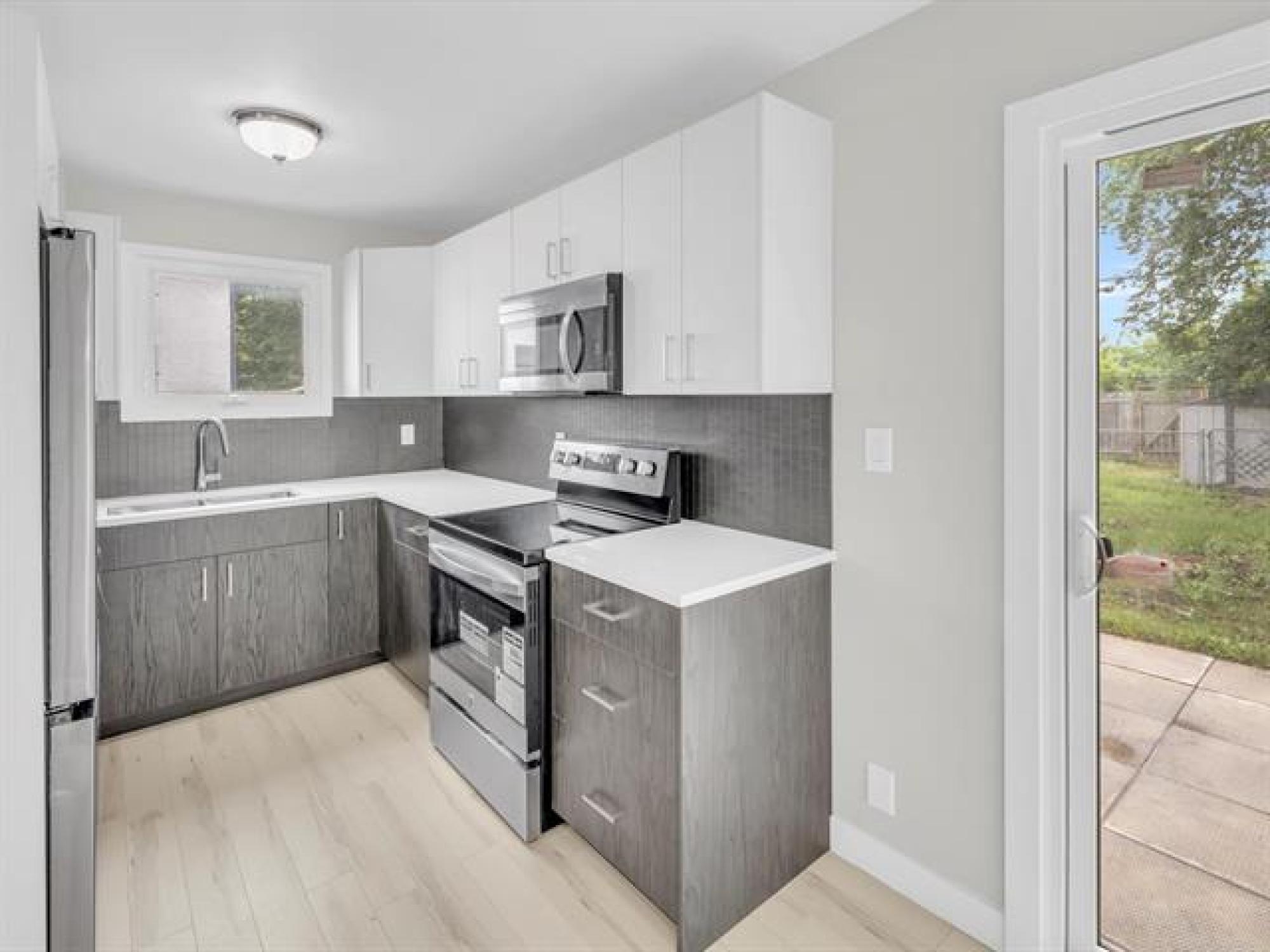 SS now! Offer as Received! All measurements are +/- jogs. Welcome to 61 Madrill Close, this beautifully renovated 2-storey home located in the highly desirable area of Maples! Offering 1,099 sq. ft. of comfortable living space, this 1972-built gem has been tastefully updated throughout. All countertops are quartz. The main floor features a spacious living room with a large window that fills the space with natural light, a dedicated dining area, a stunning modern kitchen, and a convenient half bathroom. Upstairs, you'll find a huge primary bedroom with a walk-in closet, two additional well-sized bedrooms, and a full bathroom. The fully finished basement adds even more living space with a large rec room, a full bathroom, and a laundry area. Enjoy the outdoors in the fully fenced backyard—perfect for relaxing or entertaining. Located within walking distance to schools such as Maples Collegiate and O.V. Jewitt School, and close to all major amenities, this home is an ideal choice for families or first-time buyers. Upgrades - Kitchen (2025), Bathrooms (2025), Paint (2025), Floor (2025), Doors (2025), Appliances (2025), Electrical (2025), Shingles (2022)