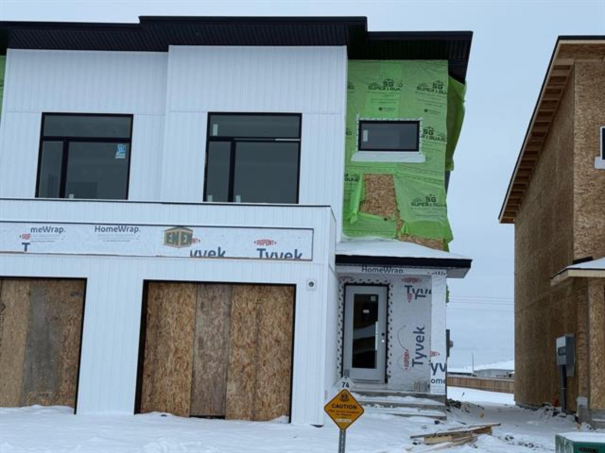 END UNIT 1210 sf townhouse with 2 levels plus a full unfinished basement! A total of 3 bedrooms, 2.5 bathrooms this home has it all! The primary bedroom is a showstopper- massive picture window, ceilings that vault to approx 11' height. Walk-in closet with added window for tons of natural light and your own 3 pc ensuite! Thoughtful layout throughout with professionally chosen finishes. Oxford white kitchen cabinetry & vanities with modern black hardware. QUARTZ COUNTERTOPS! Large eat-up island and bonus pantry for added storage. Contemporary light fixtures giving this home a sophisticated and modern feel throughout. Luxury vinyl plank flooring on the main level, LVT in the upstairs bathrooms and laundry closet. Stackable laundry located on second level close to bedrooms to save those trips to the basement! Carpet up the stairs and into all the bedrooms on the second floor. Att single garage, central a/c, hi-efficient furnace and concrete drive plus NEW HOME WARRANTY are all included! Photos are of previous similar build- some lighting/finishes (exterior color) may vary.