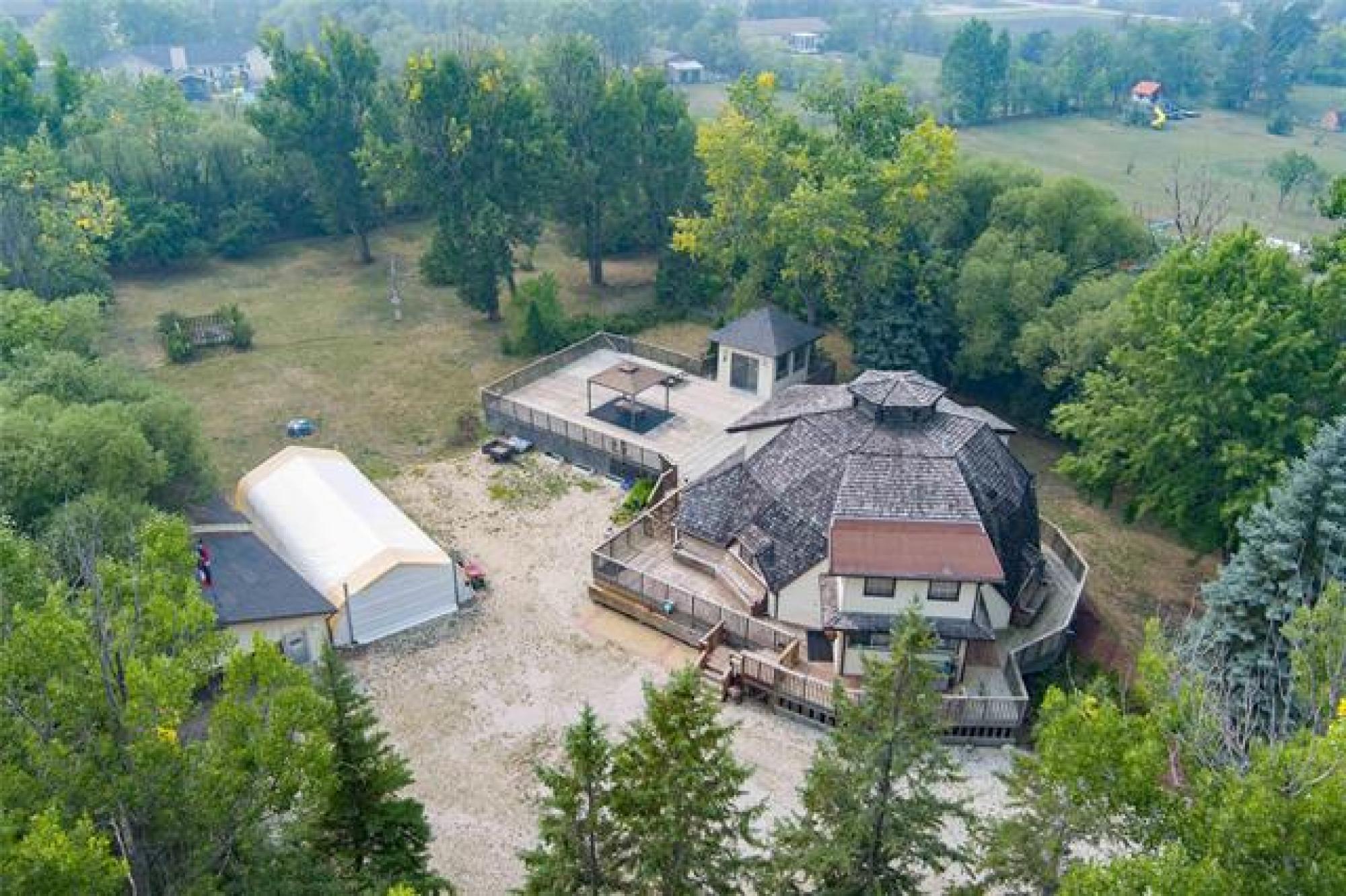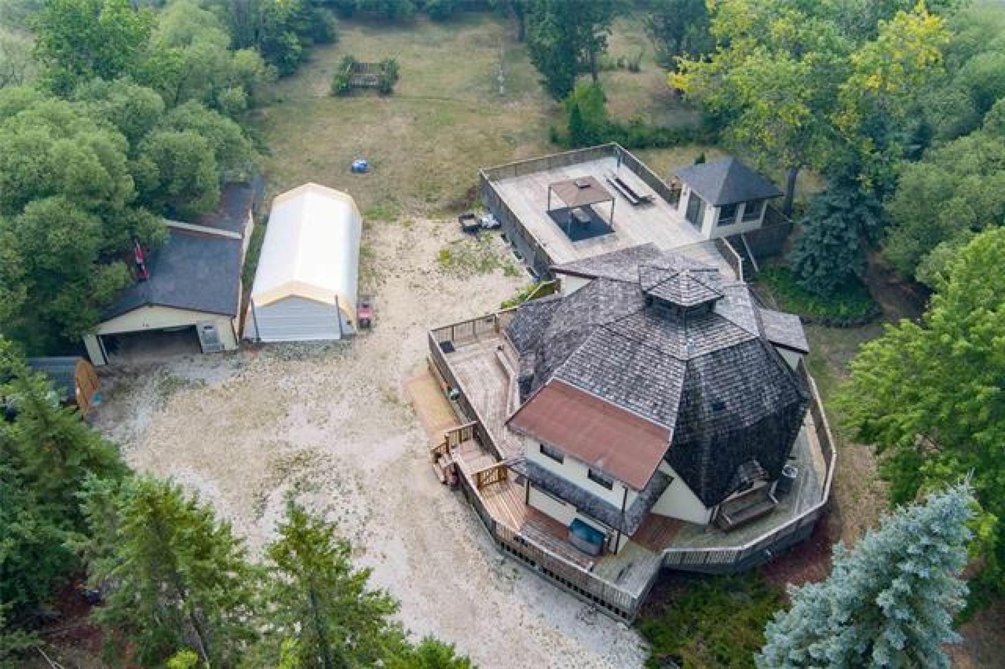 WOW! Extremely Unique Dome Shaped Home. Custom Built with Fir Wood Construction, Cedar and Oak finishings throughout. This home was built with originality in mind. The kitchen has an abundance of space for family and friends to gather and enjoy. Built in oven and stove, a huge 9+feet Island and counter tops finished with Tile and glass stone trim. The cabinets have been imported from Britain in which there is definitely no shortage of. The dining area is along side the kitchen and the living/family room is open to the above. Plenty of room to binge watch your favorite family shows. Main floor bedroom and bath. The Upper level boasts a loft with two bedrooms and a Jack and Jill Bath. The Primary Bedroom is huge with an adjacent sitting area viewing the grounds. Out side you will find a complete wrap around deck, Spacious green space with beautiful trees surrounding the property, The 4 car garage is heated , has A/C and Centra Vac. Similar in size you will also have an additional 4 car-carport. All Appliance Included