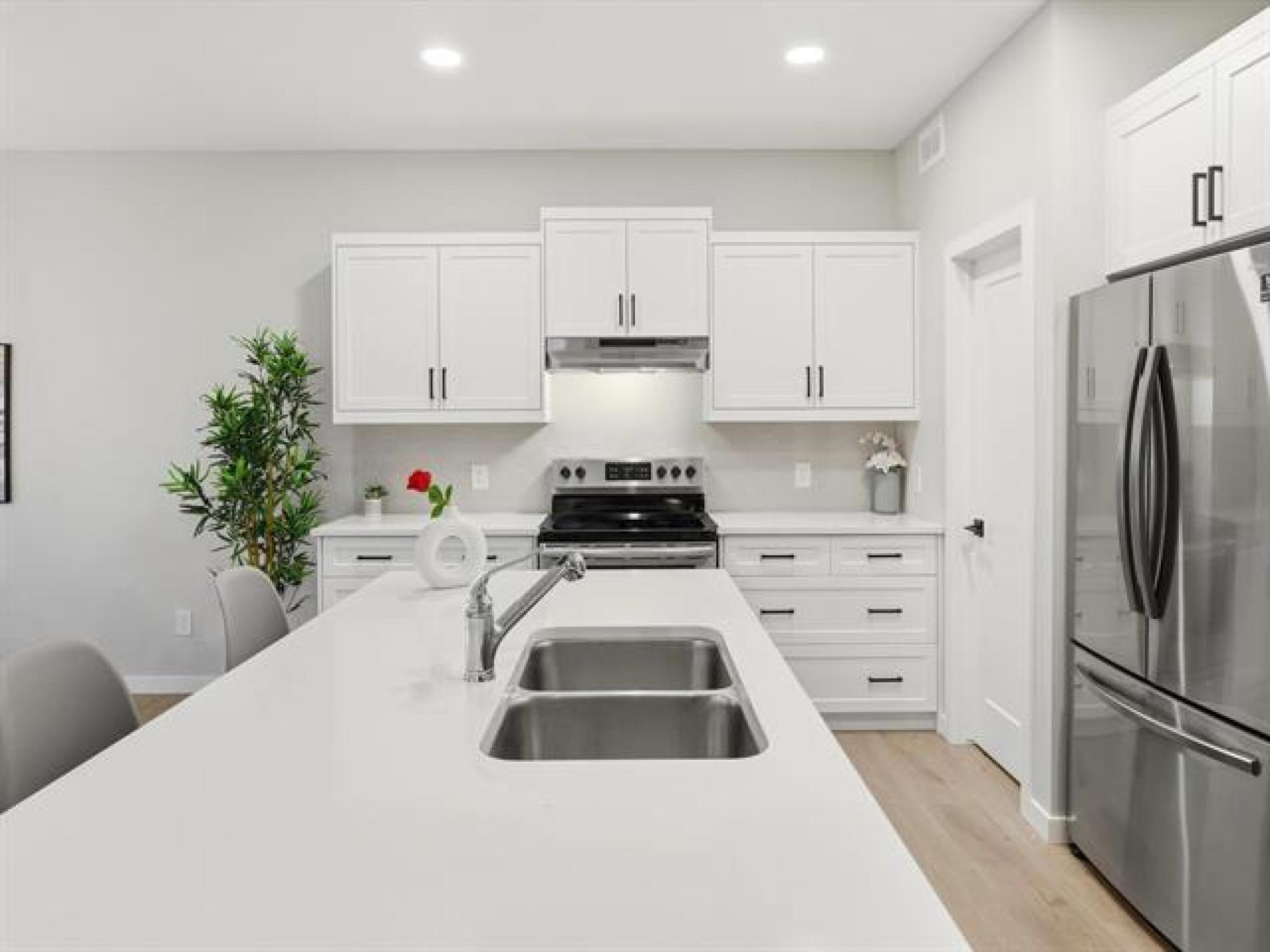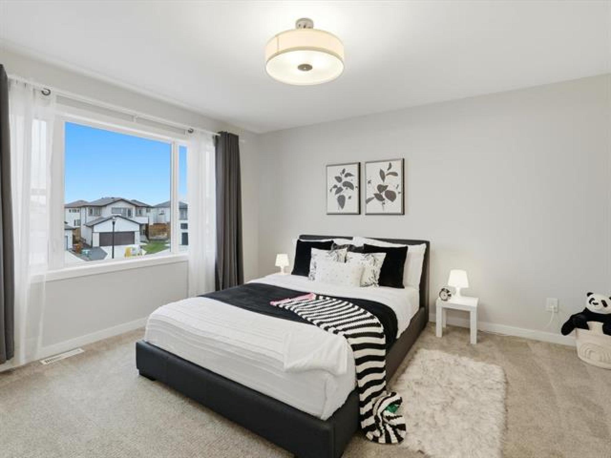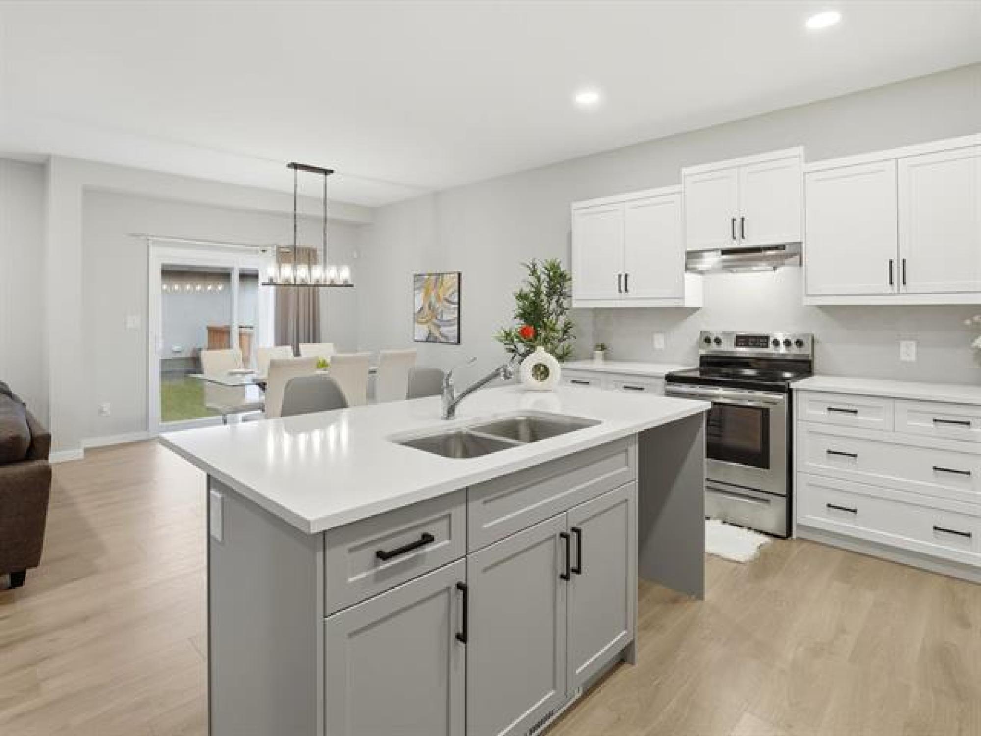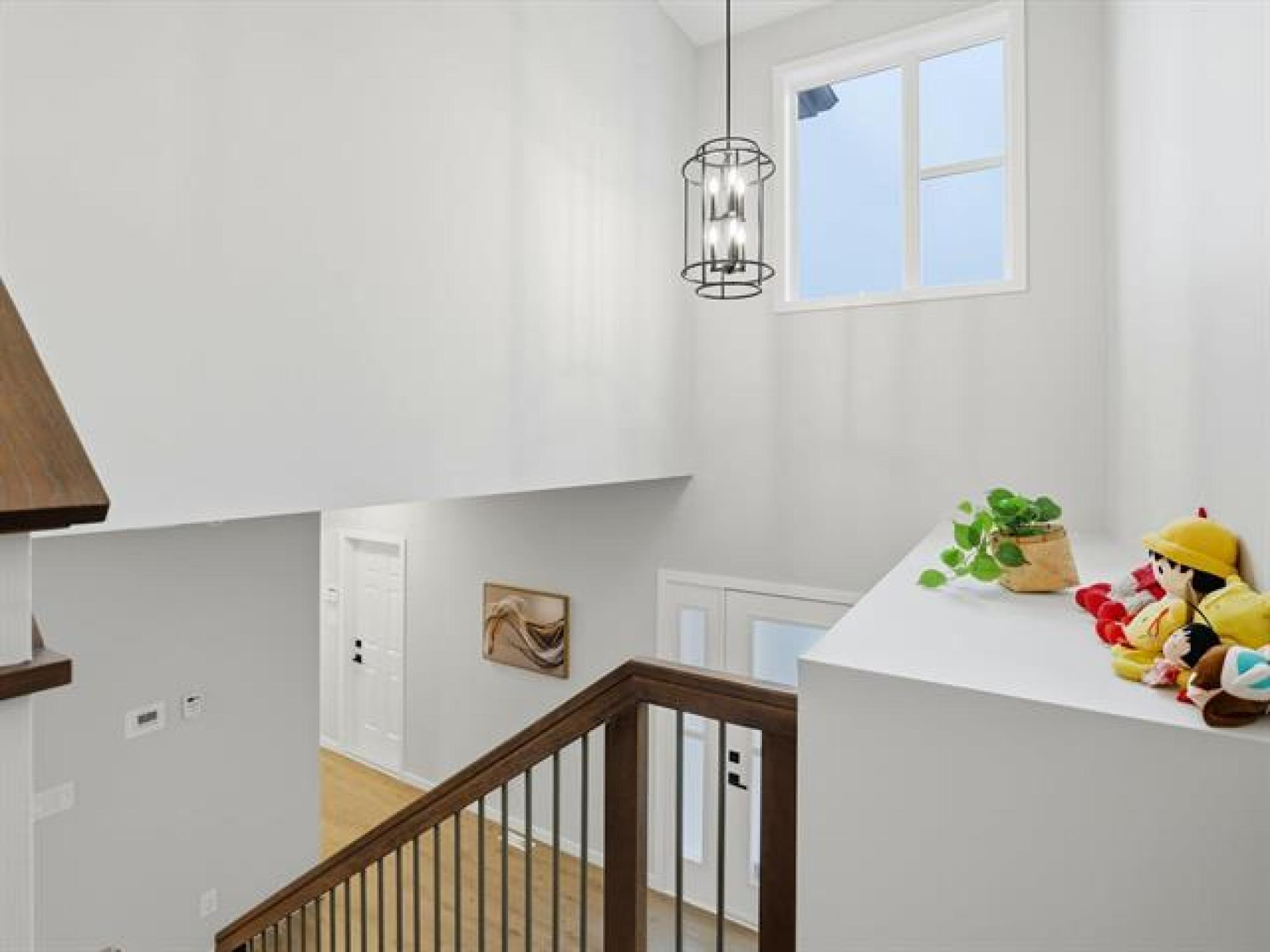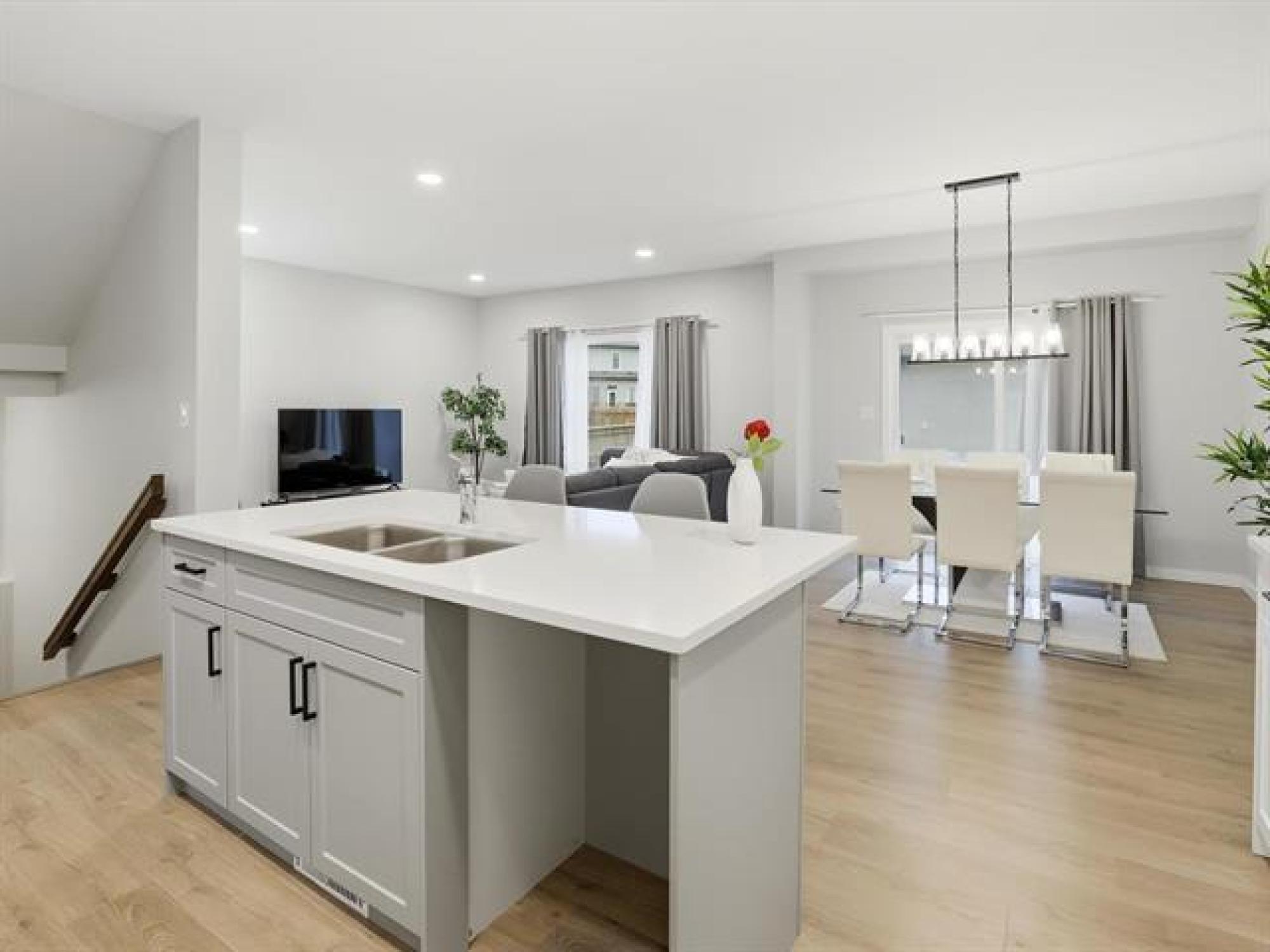 SS now. Offers November 26th. Measurements +/- Jogs. Open House: Sat & Sun, 2–4 PM. Welcome to 8 Dunedin, a beautifully upgraded 2021-built, 1,629 sq. ft. two-storey in the desirable community of Prairie Pointe. This modern home offers great curb appeal with stone accents, acrylic stucco, and black-finished fixtures. Step into the impressive 18-ft open-to-below foyer with 9-ft main-floor ceilings, creating a bright and spacious entrance. The main level features a generous living room and an open-concept kitchen with soft-closing cabinets, quartz countertops, stainless steel appliances, a stylish backsplash, a large pantry, and a well-sized dining area—perfect for daily living and entertaining. A convenient half bathroom completes the main floor. The upper level includes a spacious primary bedroom with a walk-in closet and ensuite, two additional bedrooms (one with its own walk-in closet), a full bathroom, and upper-floor laundry. The fully fenced backyard features a deck and plenty of space to enjoy. Additional highlights include laminate flooring, spindle railings, and a double attached garage. Don’t miss this fantastic move-in-ready home in a sought-after neighbourhood! DON'T MISS