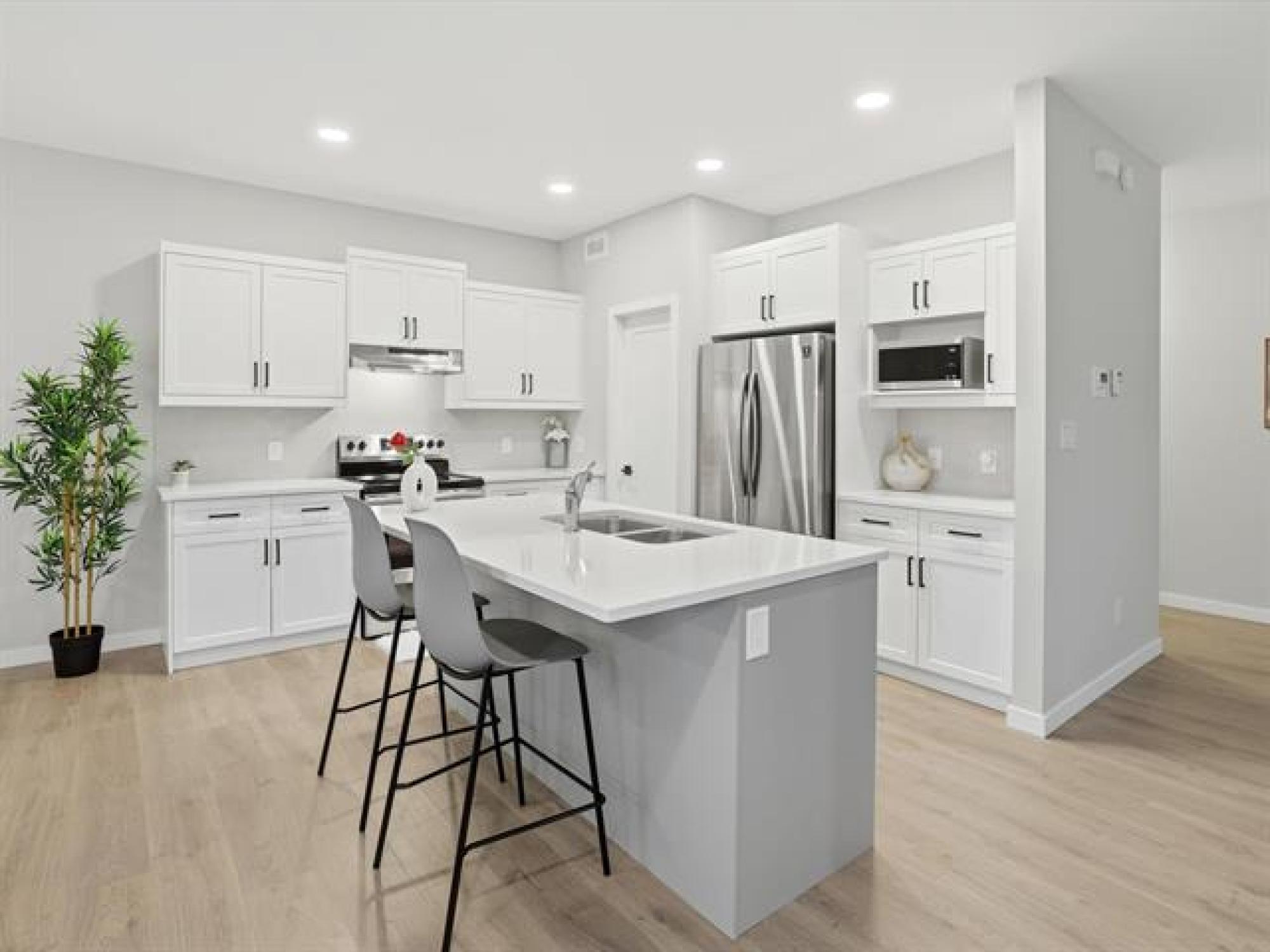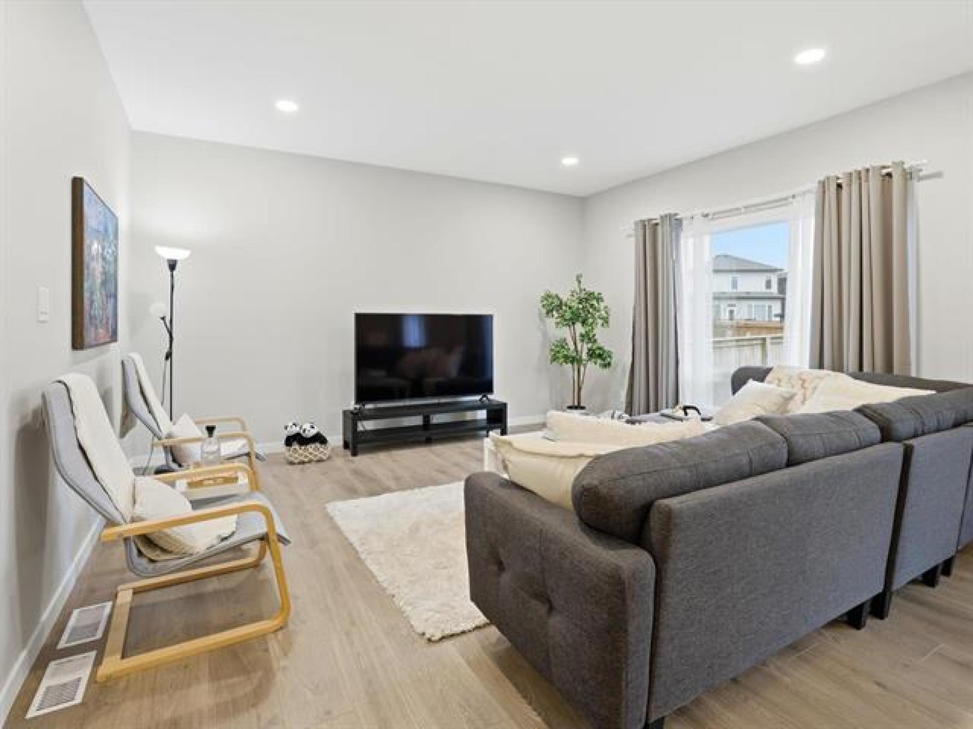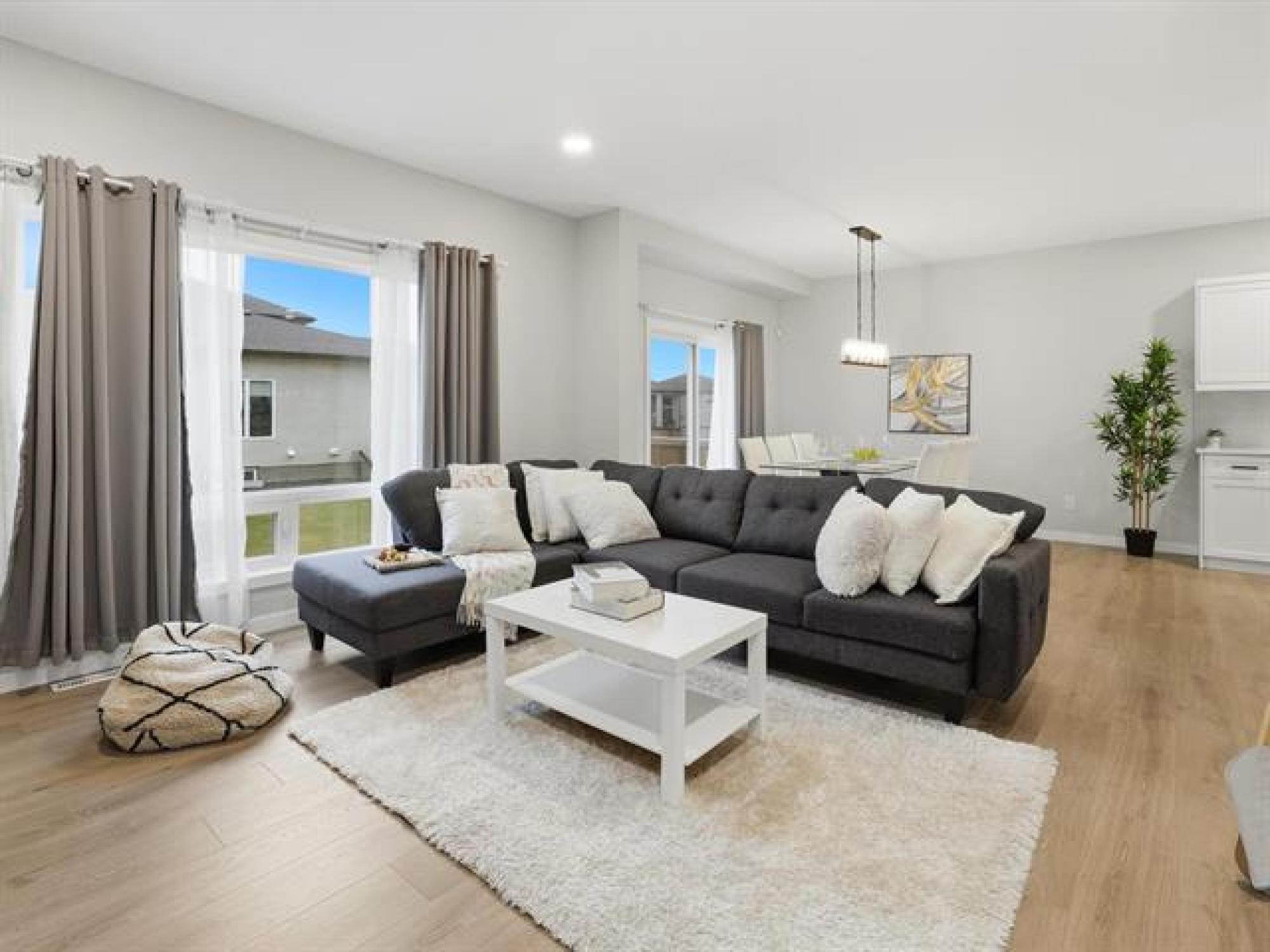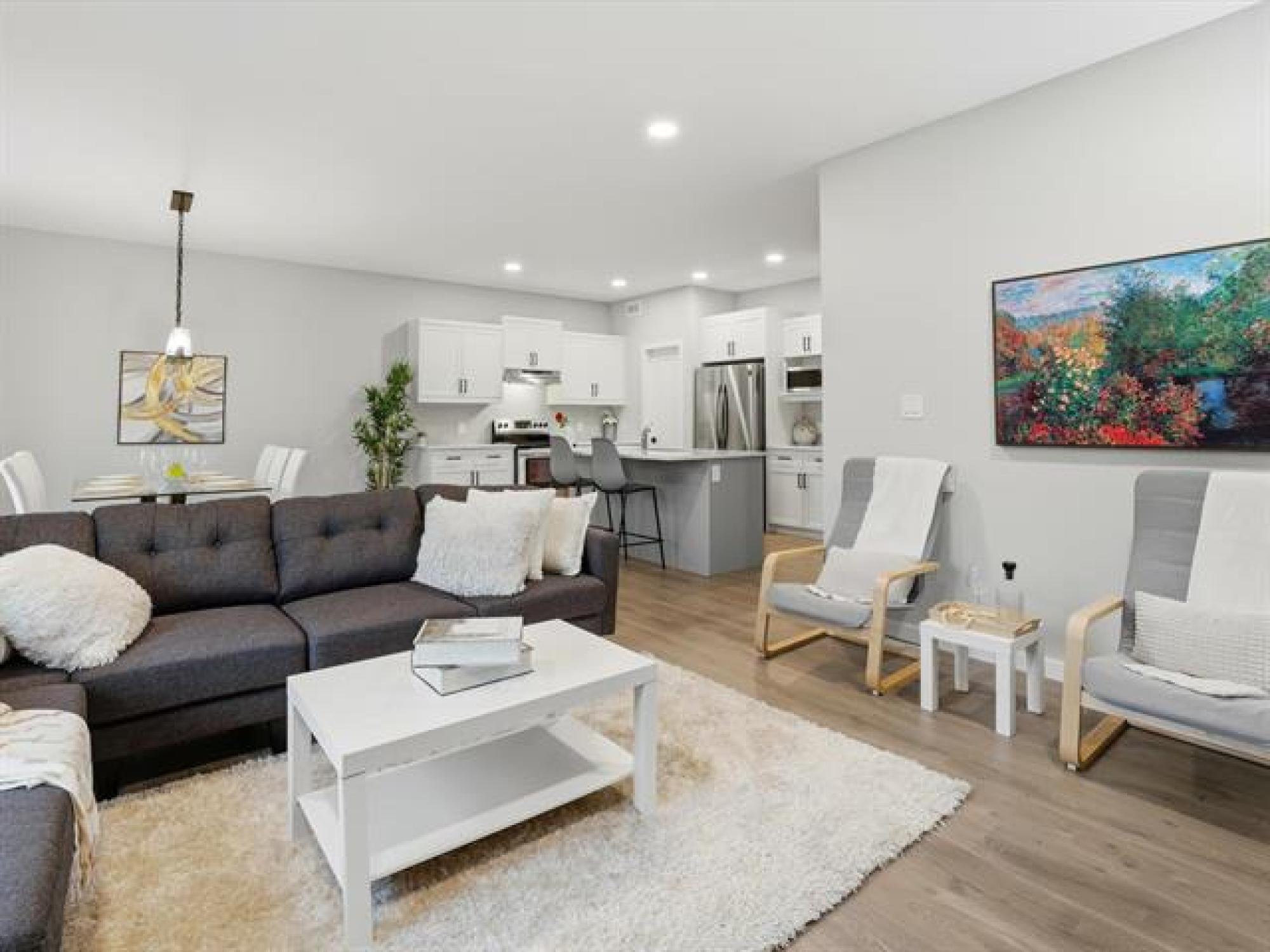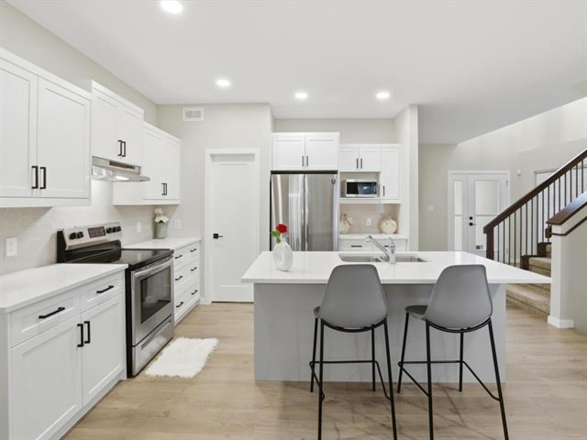 SS now. Offers November 26th. Measurements +/- Jogs. Open House: Sat & Sun, 2–4 PM. Welcome to 8 Dunedin, a beautifully upgraded 2021-built, 1,629 sq. ft. two-storey in the desirable community of Prairie Pointe. This modern home offers great curb appeal with stone accents, acrylic stucco, and black-finished fixtures. Step into the impressive 18-ft open-to-below foyer with 9-ft main-floor ceilings, creating a bright and spacious entrance. The main level features a generous living room and an open-concept kitchen with soft-closing cabinets, quartz countertops, stainless steel appliances, a stylish backsplash, a large pantry, and a well-sized dining area—perfect for daily living and entertaining. A convenient half bathroom completes the main floor. The upper level includes a spacious primary bedroom with a walk-in closet and ensuite, two additional bedrooms (one with its own walk-in closet), a full bathroom, and upper-floor laundry. The fully fenced backyard features a deck and plenty of space to enjoy. Additional highlights include laminate flooring, spindle railings, and a double attached garage. Don’t miss this fantastic move-in-ready home in a sought-after neighbourhood! DON'T MISS