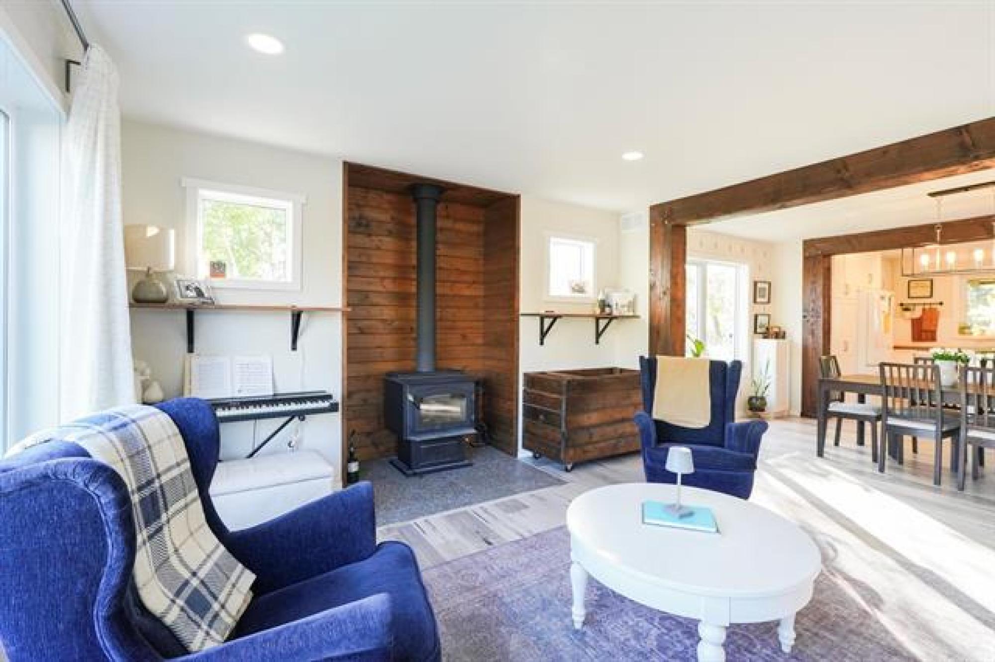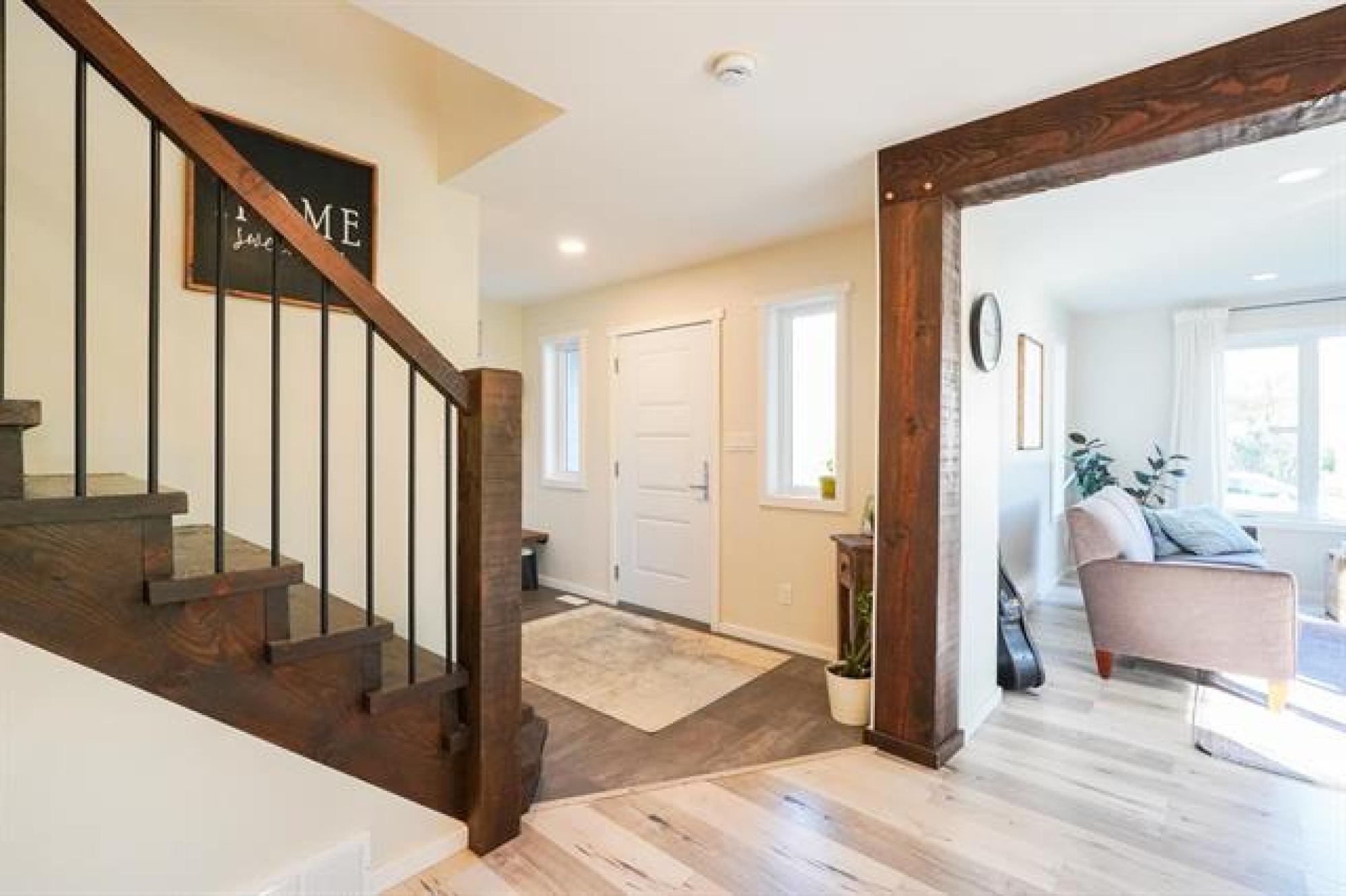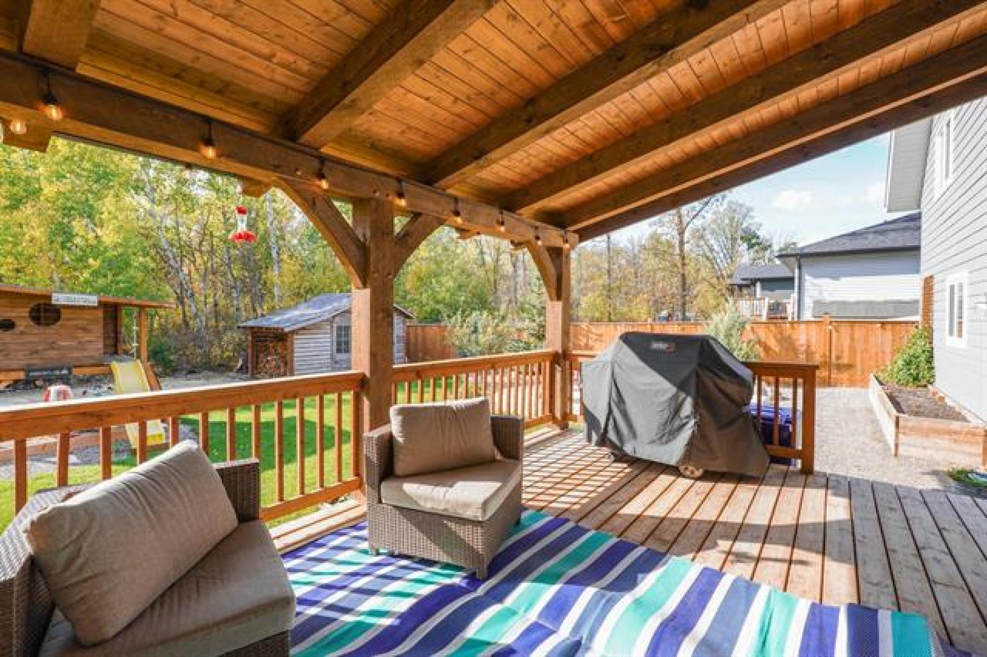 Beautifully crafted 2-storey home offering 2,447 sq. ft. of living space, built in 2018, and showcasing stunning timber accents throughout. This well-designed home features 3 spacious bedrooms and 2.5 bathrooms, ideal for families or those who love to entertain. The inviting large family room is highlighted by floor-to-ceiling built-in bookshelves and expansive windows throughout, providing an abundance of natural light. Stay cozy during the winter months with a charming wood stove, and enjoy outdoor living on the timber-frame covered deck overlooking a private backyard. The yard also features a custom fire pit area—perfect for gatherings—and extra parking ideal for a camper, boat, or additional vehicles. Completing the package is a large double attached garage and a functional layout that blends comfort, style, and practicality. A fantastic opportunity to own a modern home with timeless character.