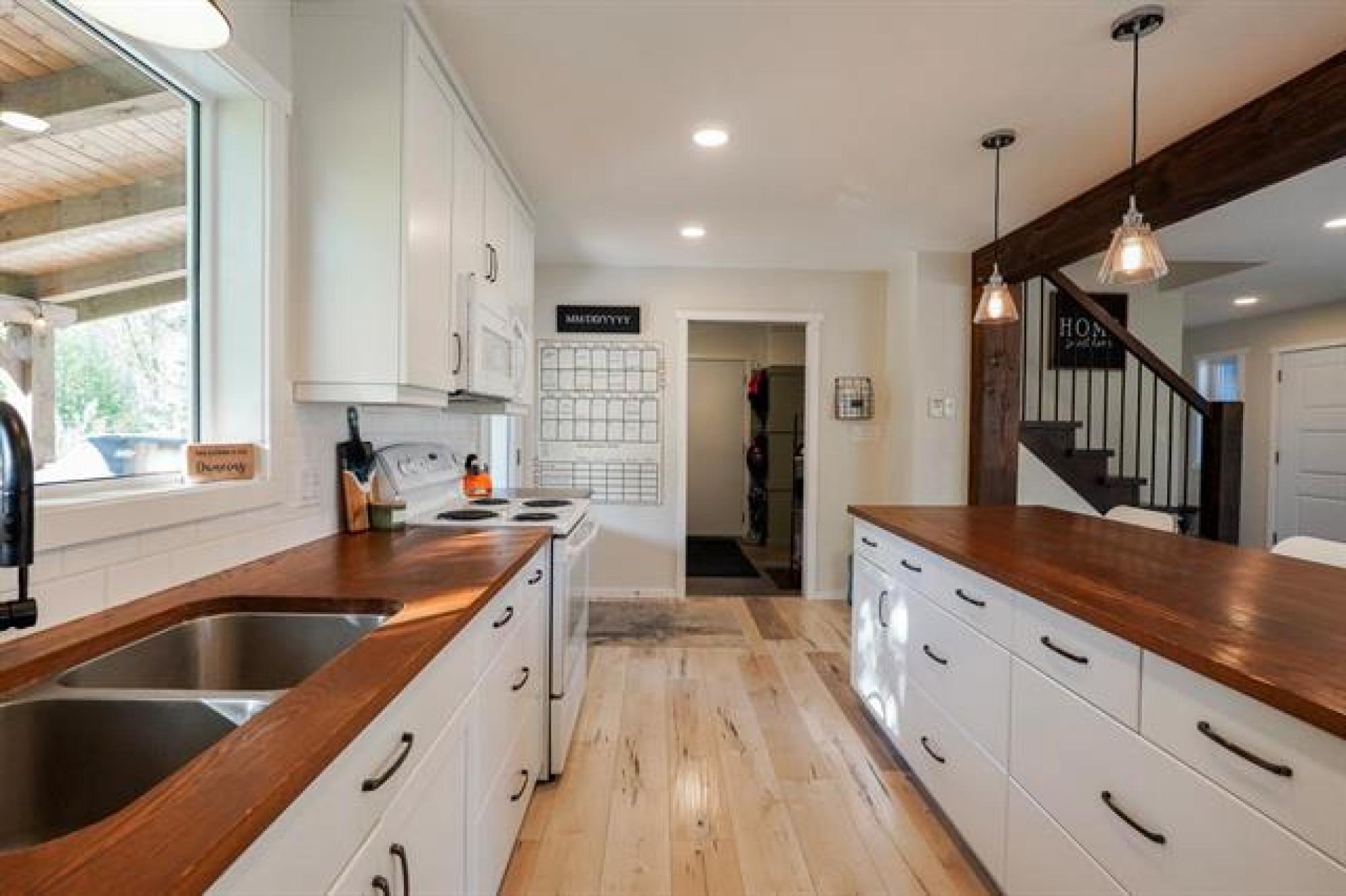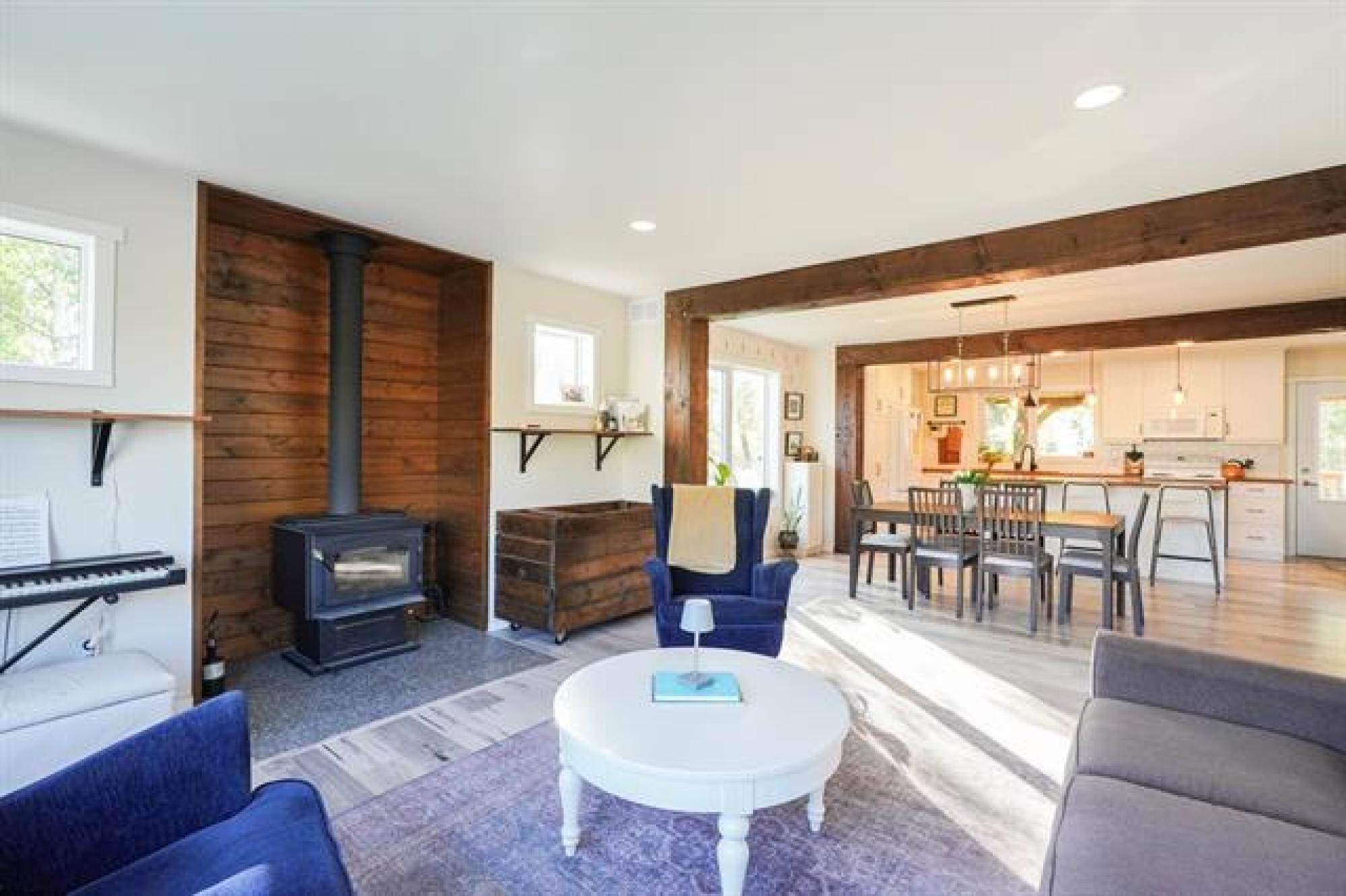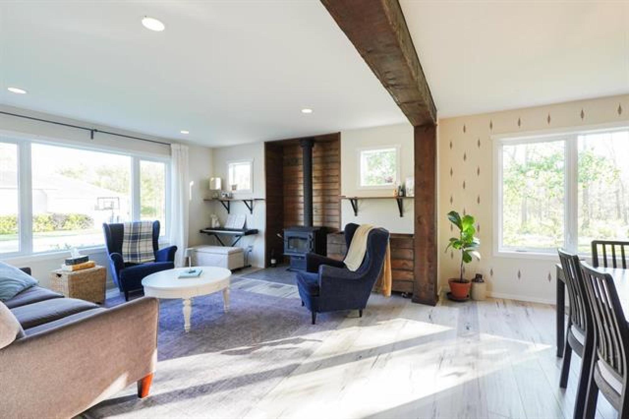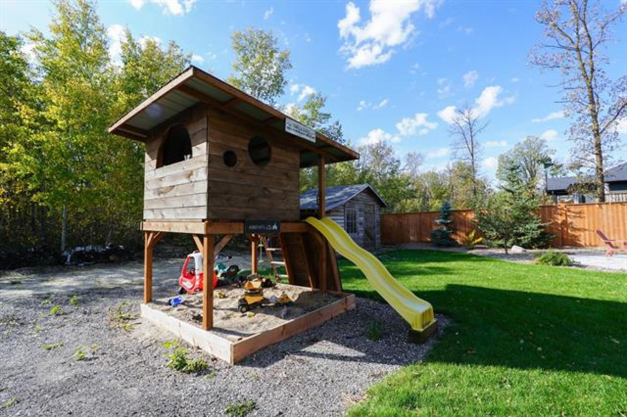 Beautifully crafted 2-storey home offering 2,447 sq. ft. of living space, built in 2018, and showcasing stunning timber accents throughout. This well-designed home features 3 spacious bedrooms and 2.5 bathrooms, ideal for families or those who love to entertain. The inviting large family room is highlighted by floor-to-ceiling built-in bookshelves and expansive windows throughout, providing an abundance of natural light. Stay cozy during the winter months with a charming wood stove, and enjoy outdoor living on the timber-frame covered deck overlooking a private backyard. The yard also features a custom fire pit area—perfect for gatherings—and extra parking ideal for a camper, boat, or additional vehicles. Completing the package is a large double attached garage and a functional layout that blends comfort, style, and practicality. A fantastic opportunity to own a modern home with timeless character.