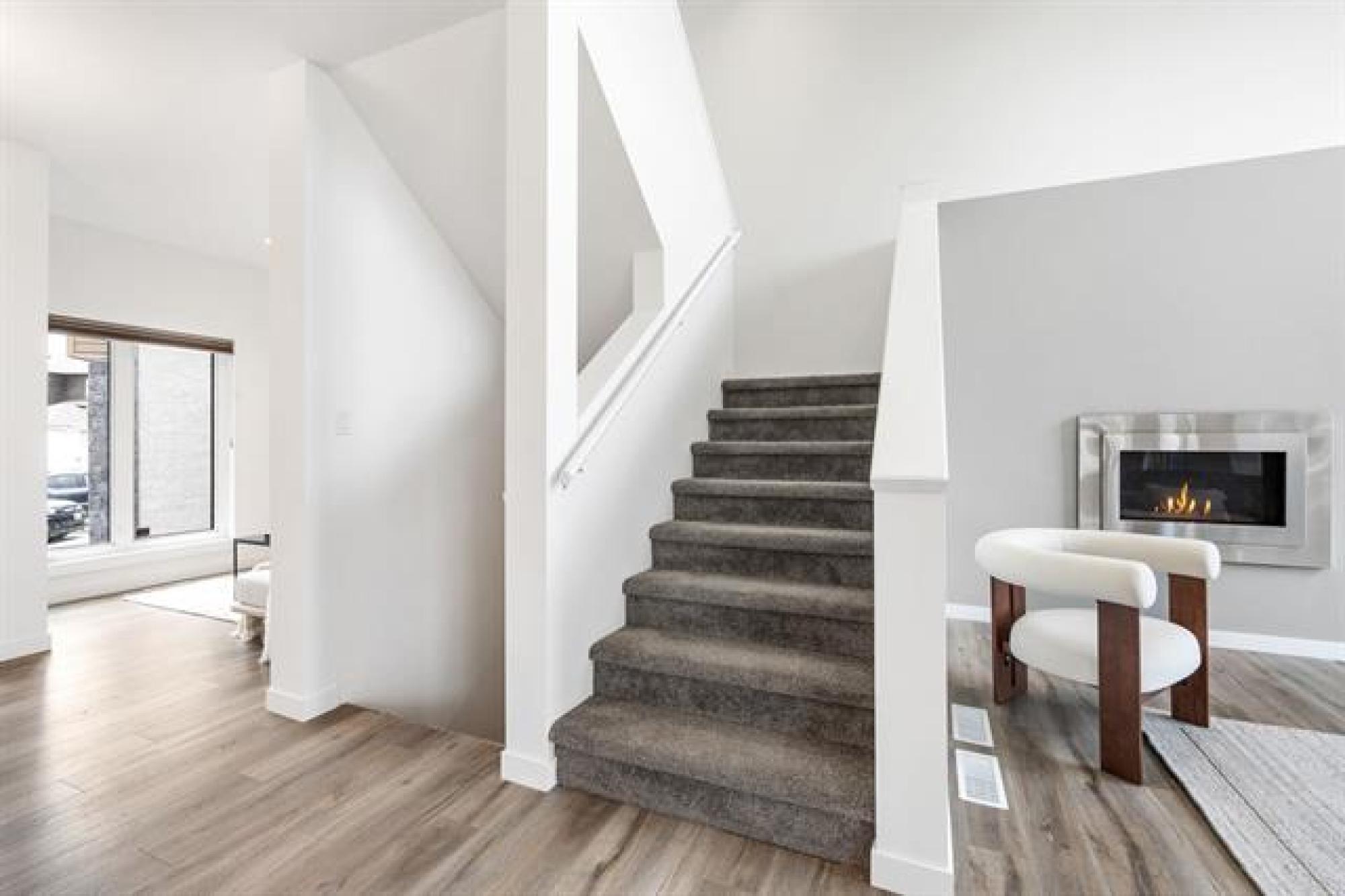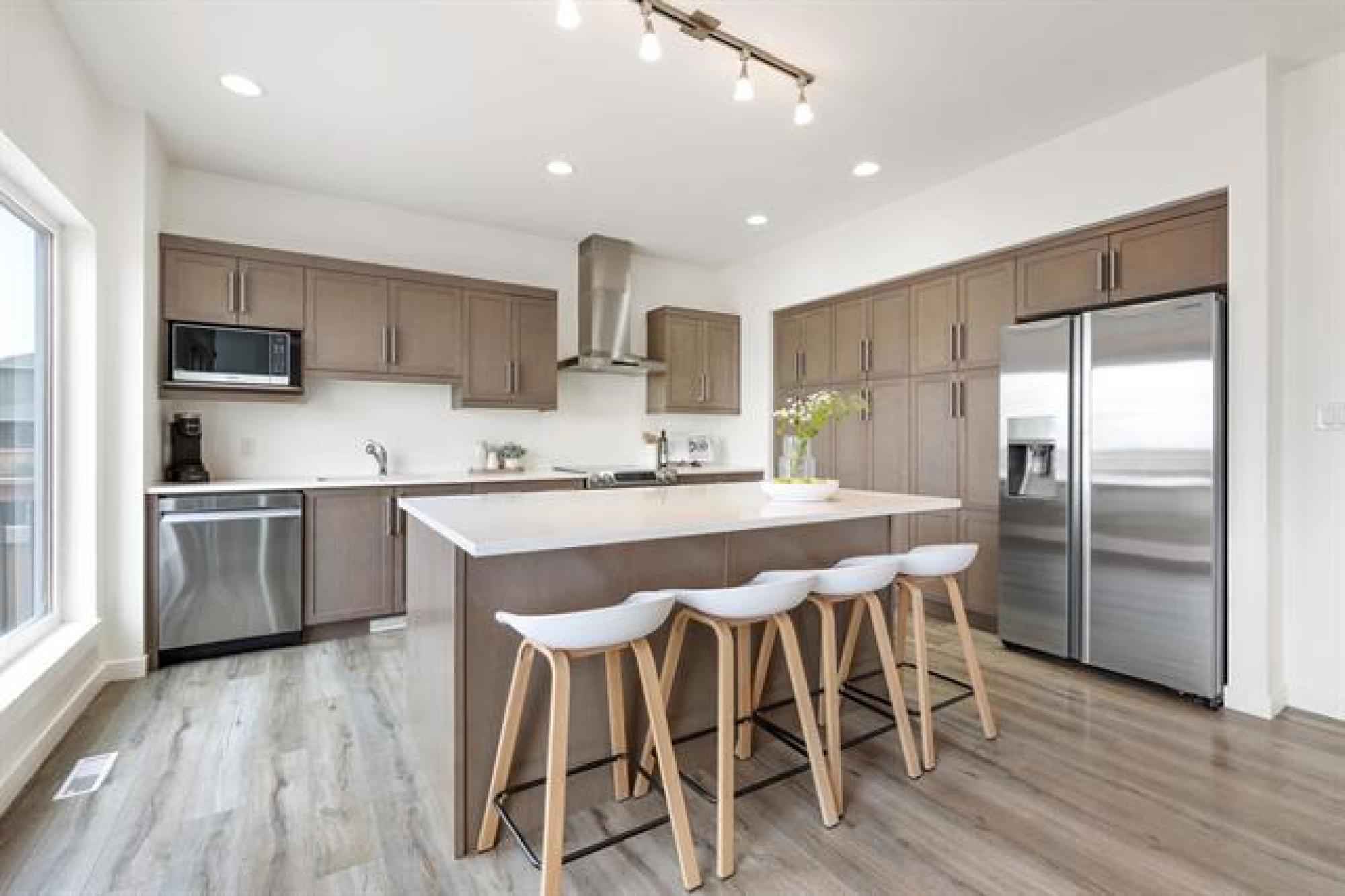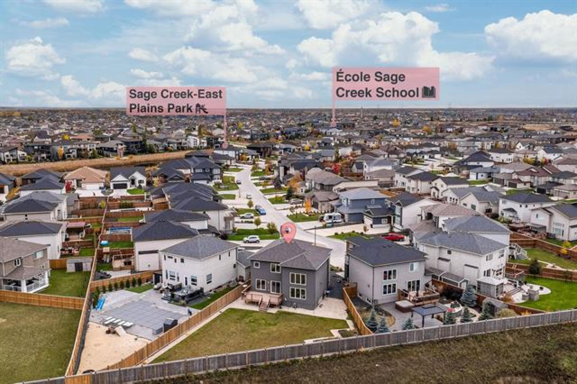 Showing starts now. Offers Oct 30th. Open House Sat & Sun 12-2pm. | Tucked in a quiet cul-de-sac in Sage Creek, this 2019-built Artista home combines timeless design and everyday functionality. The moment you walk in, a bright front den greets you, perfect for a home office or a quiet reading space. Beyond the entry, the open layout unfolds with 9’ ceilings, and a great room highlighted by a gas fireplace and soaring 18’ ceiling. The kitchen blends style and function with quartz countertops, a large island, hood fan, and sleek cabinetry pantry. The dining area opens to a spacious deck and landscaped yard, ideal for everyday living or entertaining. A powder room, laundry, and mudroom with garage access complete the main floor. Upstairs, the loft overlooks the great room below and leads to a bright primary suite with a 4-piece ensuite featuring relaxing backyard views, heated floors, and a spacious walk-in closet. Two additional bedrooms and another full bath complete this well-designed level. The insulated basement awaits your finishing touch. A comfortable, light-filled home built with Artista quality in every detail. A home you’ll want to experience in person.