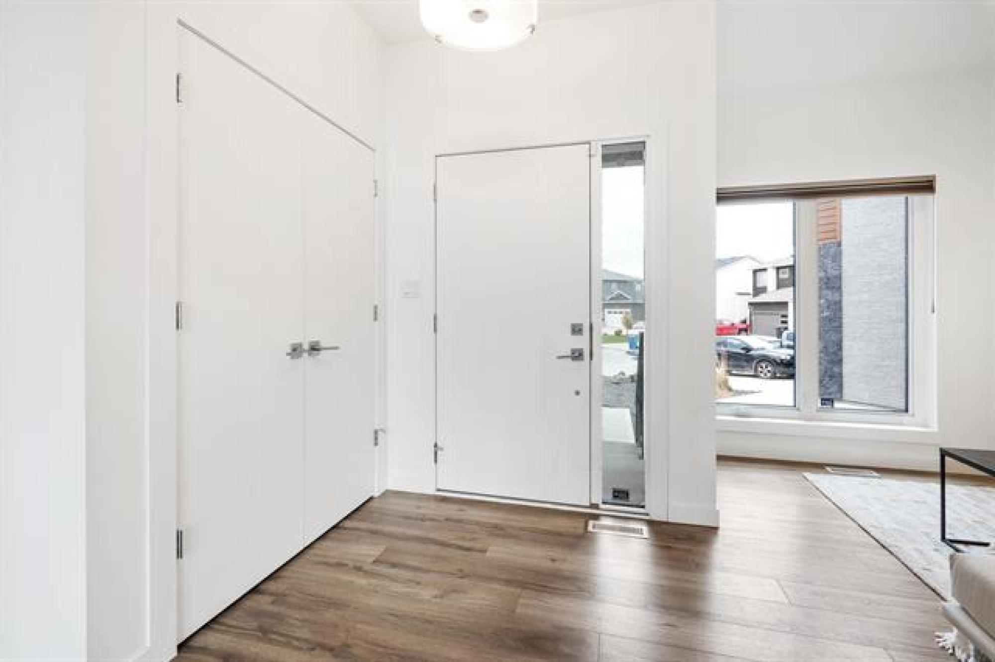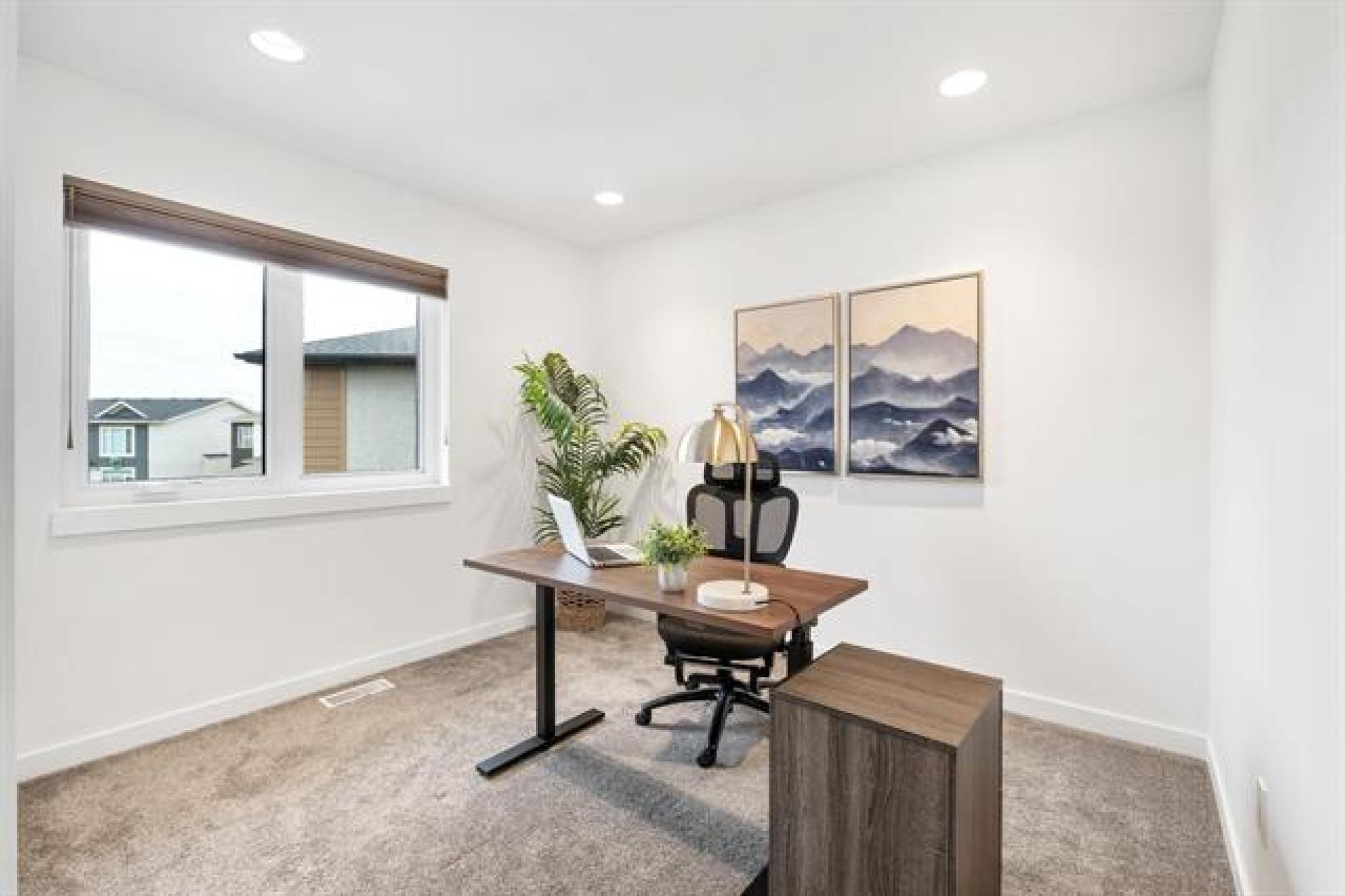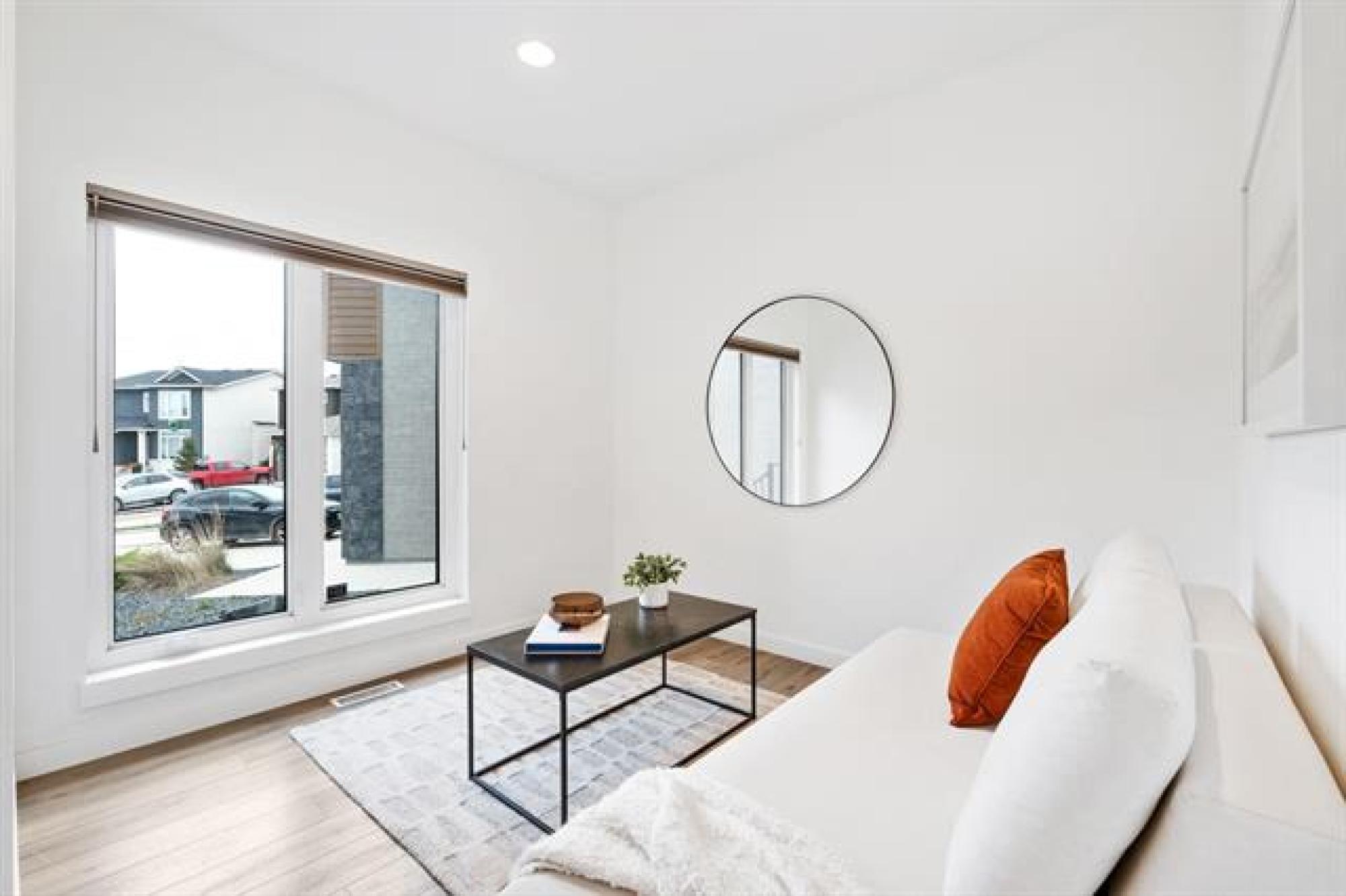 Showing starts now. Offers Oct 30th. Open House Sat & Sun 12-2pm. | Tucked in a quiet cul-de-sac in Sage Creek, this 2019-built Artista home combines timeless design and everyday functionality. The moment you walk in, a bright front den greets you, perfect for a home office or a quiet reading space. Beyond the entry, the open layout unfolds with 9’ ceilings, and a great room highlighted by a gas fireplace and soaring 18’ ceiling. The kitchen blends style and function with quartz countertops, a large island, hood fan, and sleek cabinetry pantry. The dining area opens to a spacious deck and landscaped yard, ideal for everyday living or entertaining. A powder room, laundry, and mudroom with garage access complete the main floor. Upstairs, the loft overlooks the great room below and leads to a bright primary suite with a 4-piece ensuite featuring relaxing backyard views, heated floors, and a spacious walk-in closet. Two additional bedrooms and another full bath complete this well-designed level. The insulated basement awaits your finishing touch. A comfortable, light-filled home built with Artista quality in every detail. A home you’ll want to experience in person.