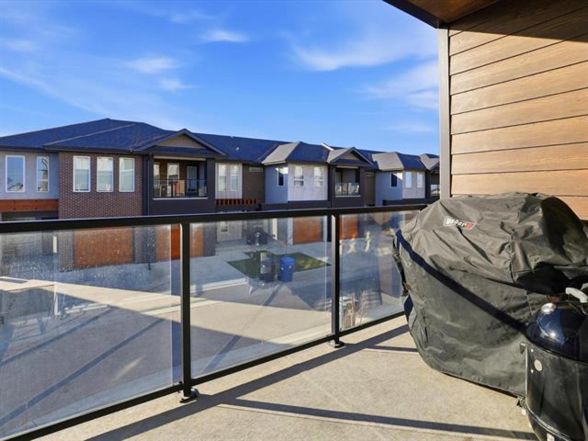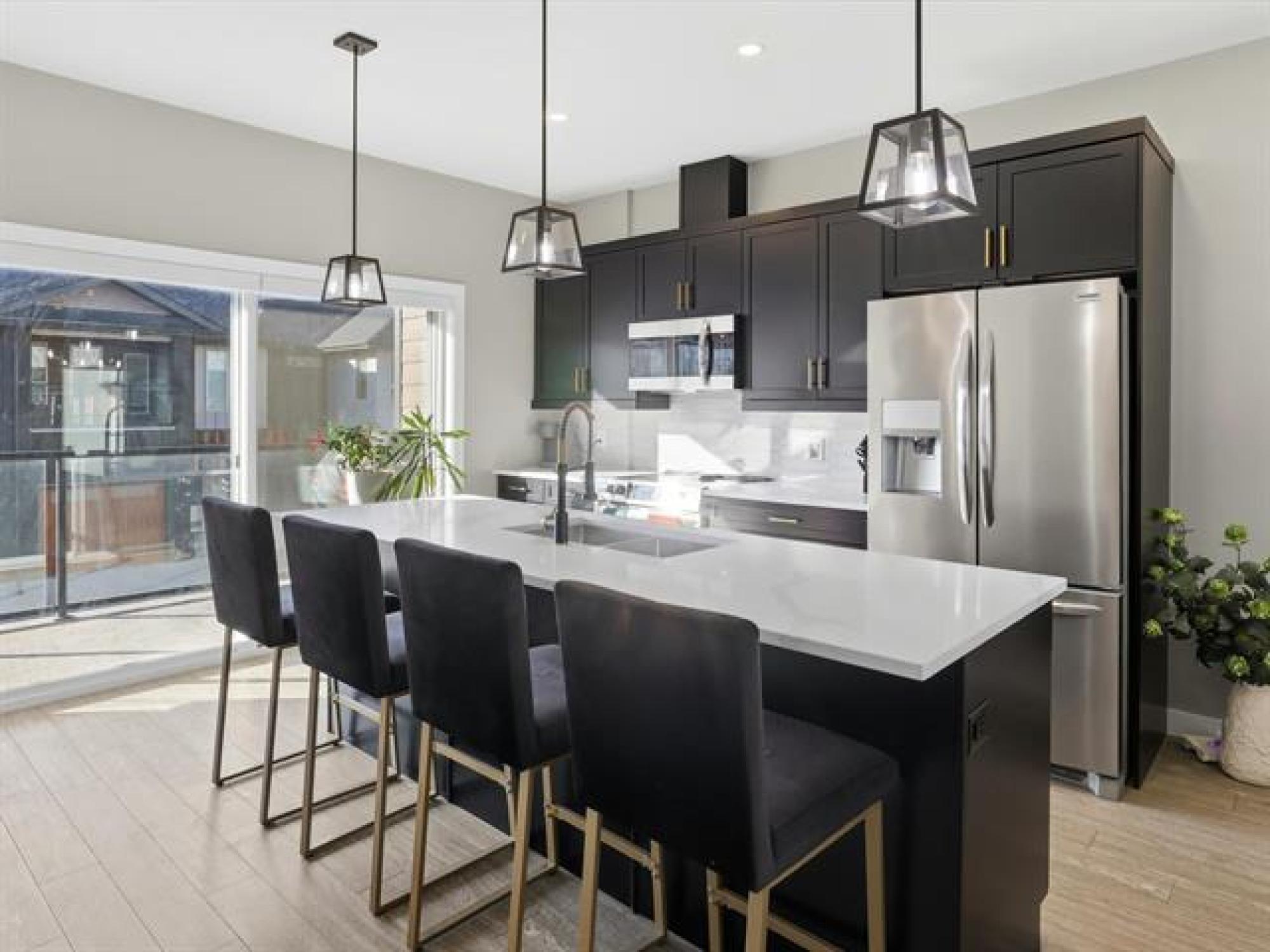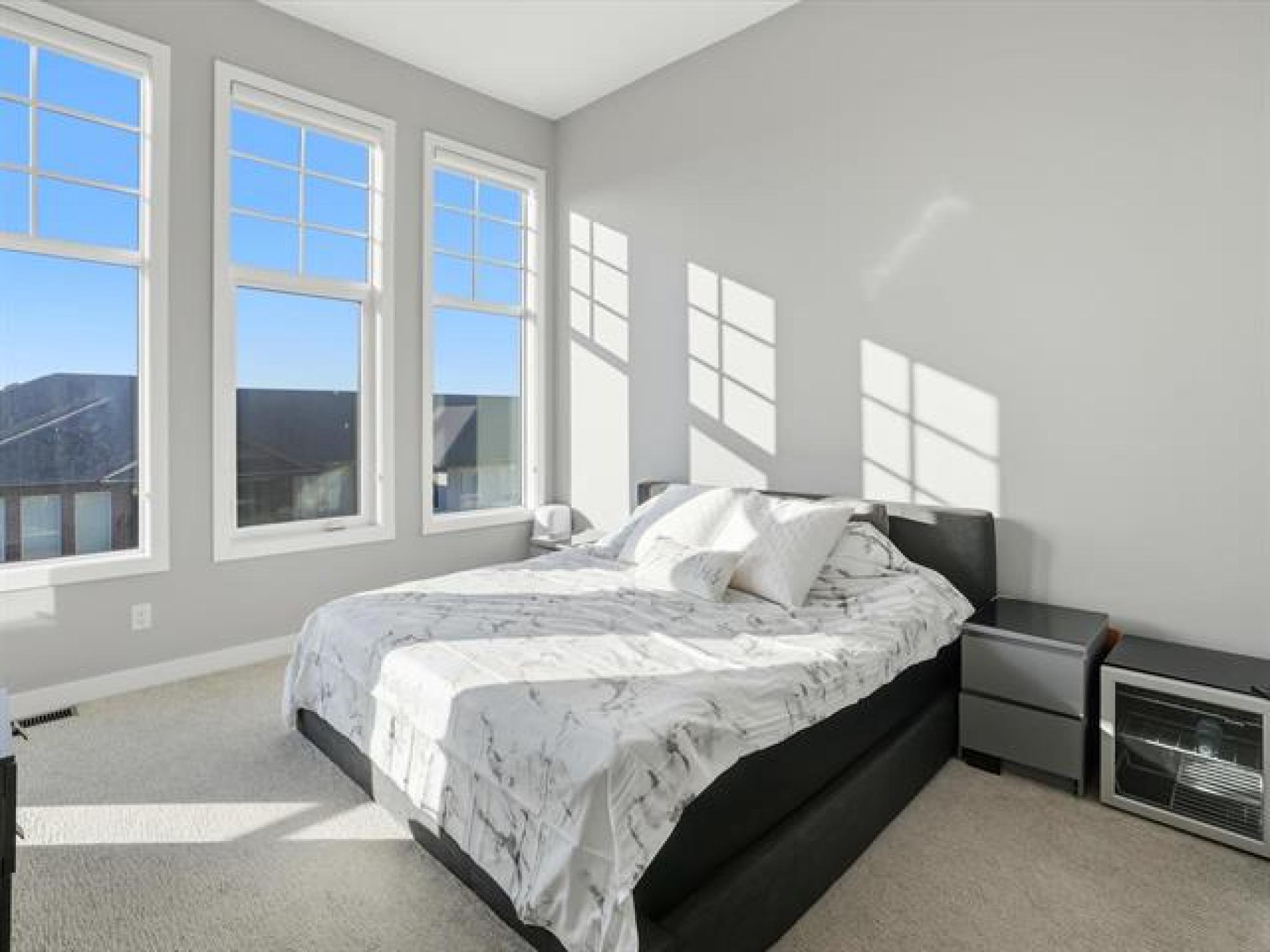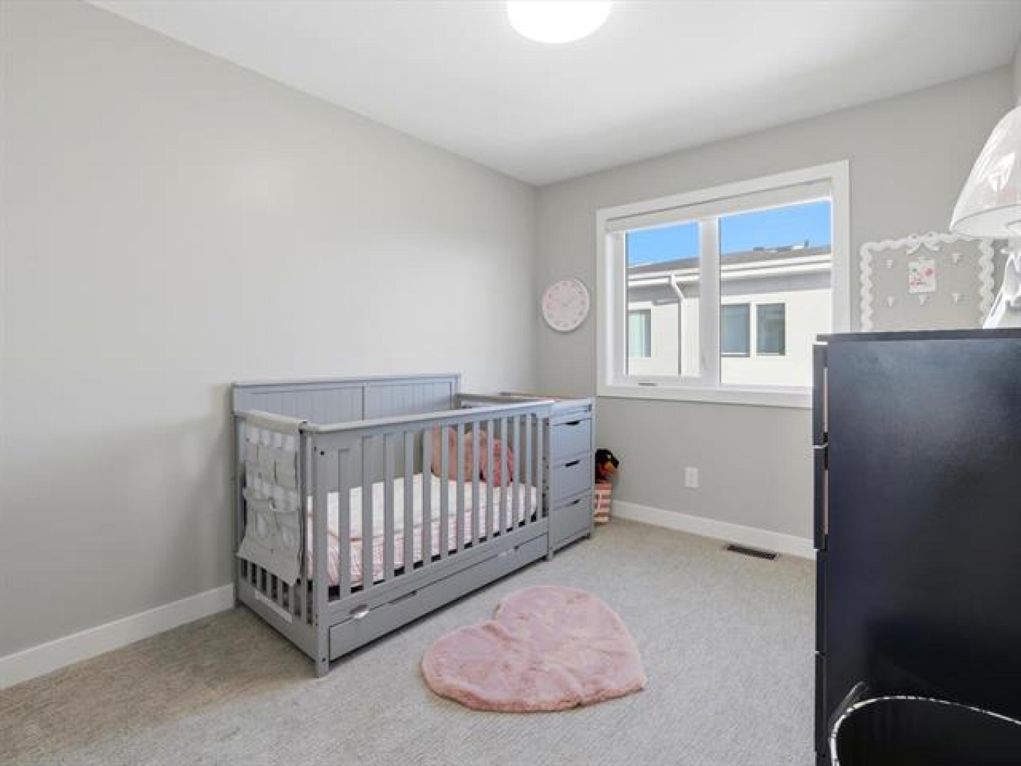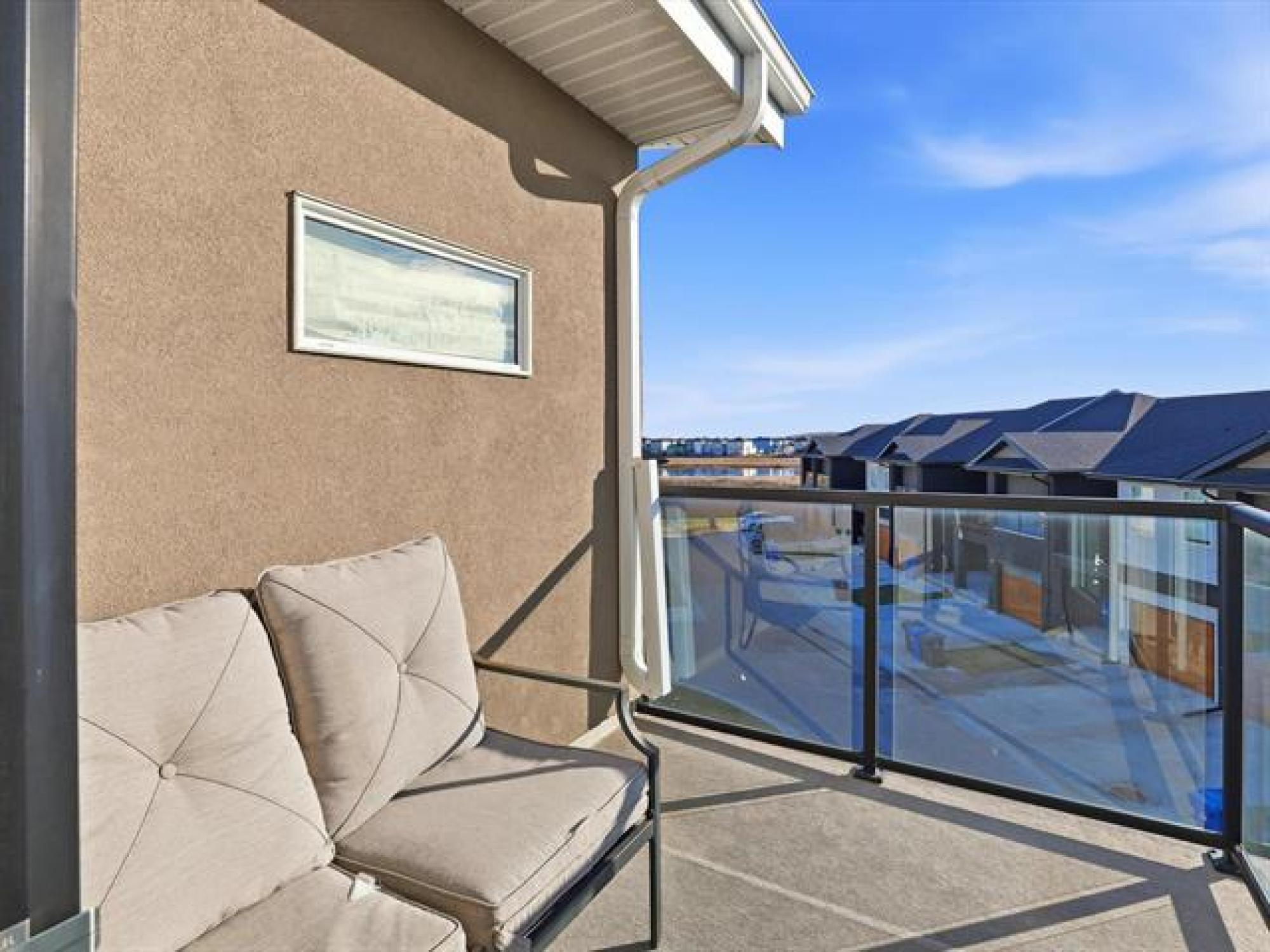 S/S Now. Offers reviewed as received. Step inside this bright corner-unit townhouse and enjoy an open, welcoming layout! The main floor features a seamless living, dining, and kitchen space with a custom fireplace feature wall that elevates the room. The upgraded kitchen adds both style and function with quartz countertops, raised cabinetry, a custom backsplash, upgraded appliances, and black cabinetry with gold hardware. A convenient powder room for guests completes this level. On the ground floor, a bonus flex room with access to the back patio offers great versatility—whether you need a home office, gym, or an extra space to unwind. Upstairs, you’ll find three generous bedrooms and a full 4-piece bath. The primary suite is a standout, featuring soaring ceilings, large windows that bring in plenty of natural light, a private balcony, a walk-in closet, and a 3-piece ensuite. Second-floor laundry adds extra ease to daily routines. With a single attached garage and a bright, modern interior, this townhouse combines comfort, style, and convenience in one of the most desirable pockets in Southwest Winnipeg steps from parks, trails, transit, and everyday amenities in and around Prairie Pointe.