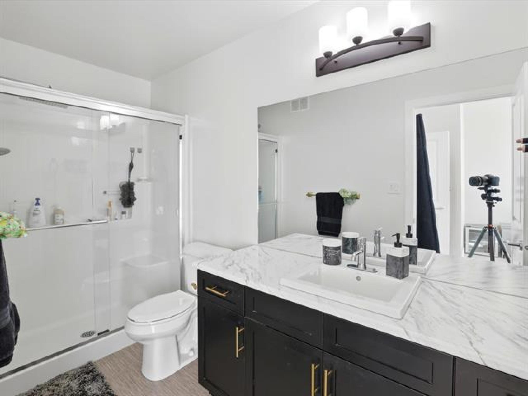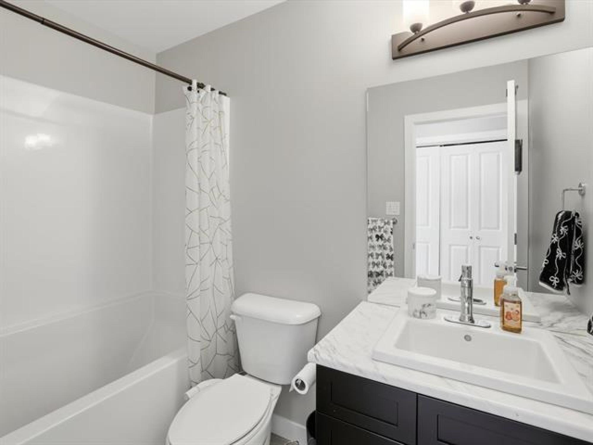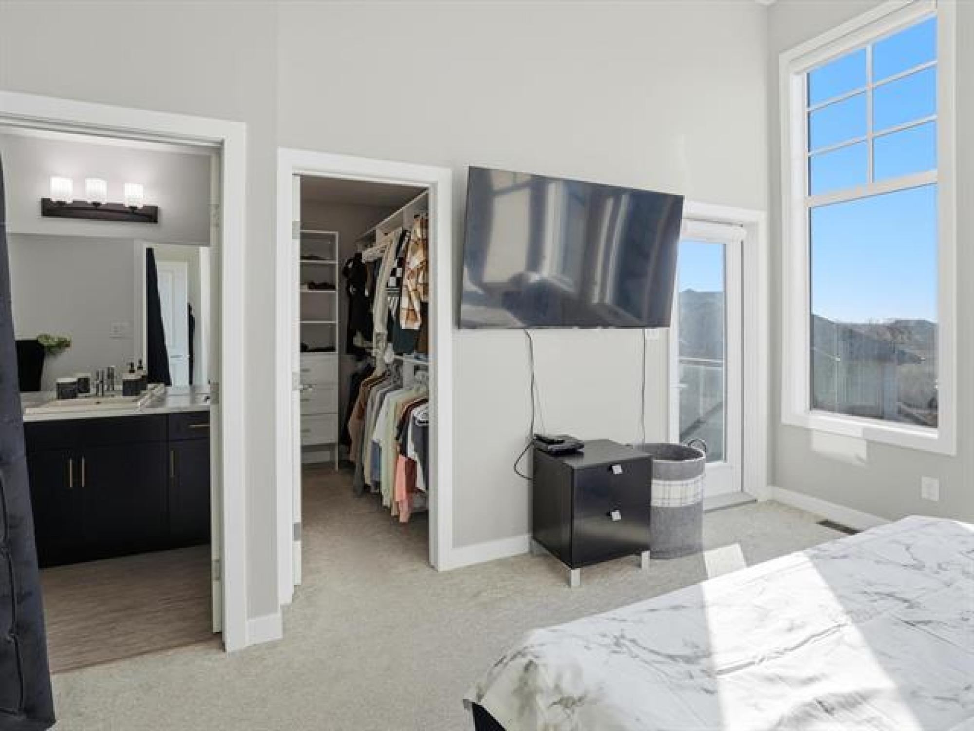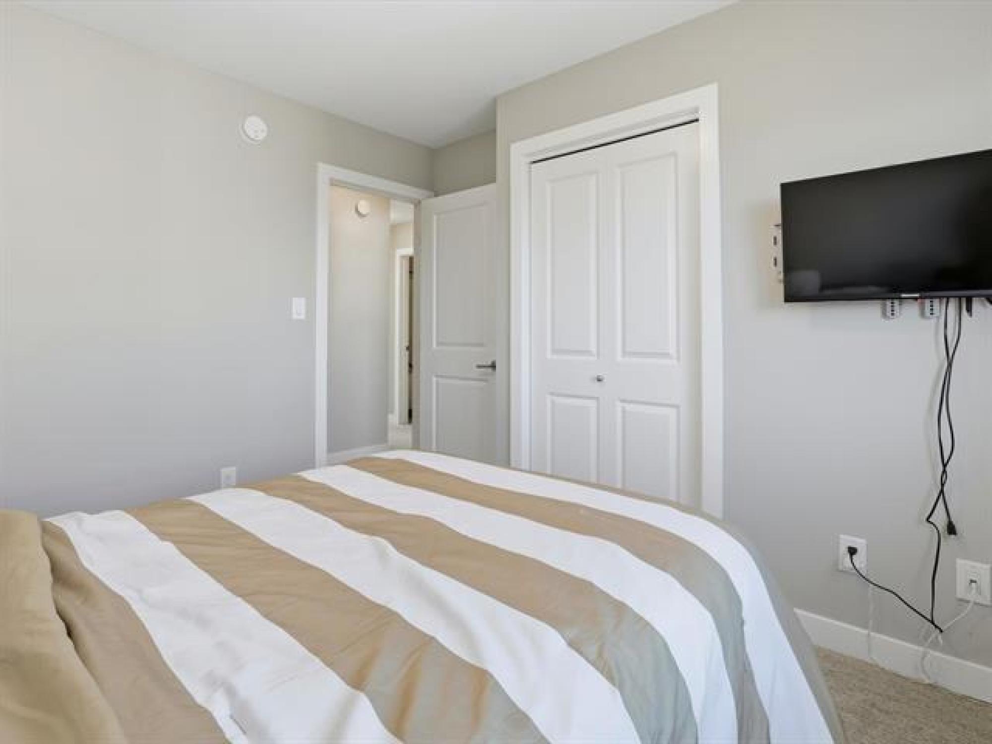 S/S Now. Offers reviewed as received. Step inside this bright corner-unit townhouse and enjoy an open, welcoming layout! The main floor features a seamless living, dining, and kitchen space with a custom fireplace feature wall that elevates the room. The upgraded kitchen adds both style and function with quartz countertops, raised cabinetry, a custom backsplash, upgraded appliances, and black cabinetry with gold hardware. A convenient powder room for guests completes this level. On the ground floor, a bonus flex room with access to the back patio offers great versatility—whether you need a home office, gym, or an extra space to unwind. Upstairs, you’ll find three generous bedrooms and a full 4-piece bath. The primary suite is a standout, featuring soaring ceilings, large windows that bring in plenty of natural light, a private balcony, a walk-in closet, and a 3-piece ensuite. Second-floor laundry adds extra ease to daily routines. With a single attached garage and a bright, modern interior, this townhouse combines comfort, style, and convenience in one of the most desirable pockets in Southwest Winnipeg steps from parks, trails, transit, and everyday amenities in and around Prairie Pointe.