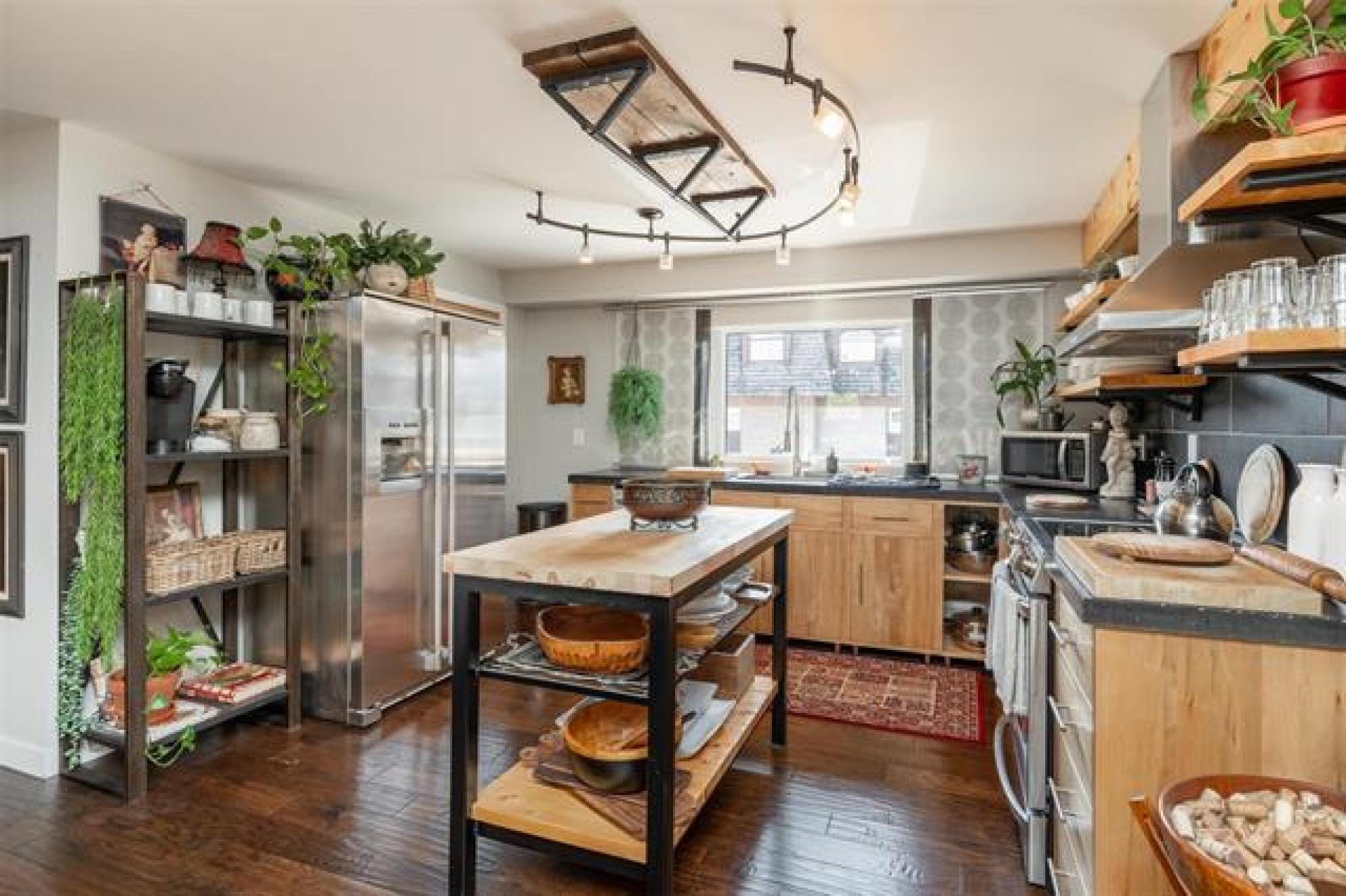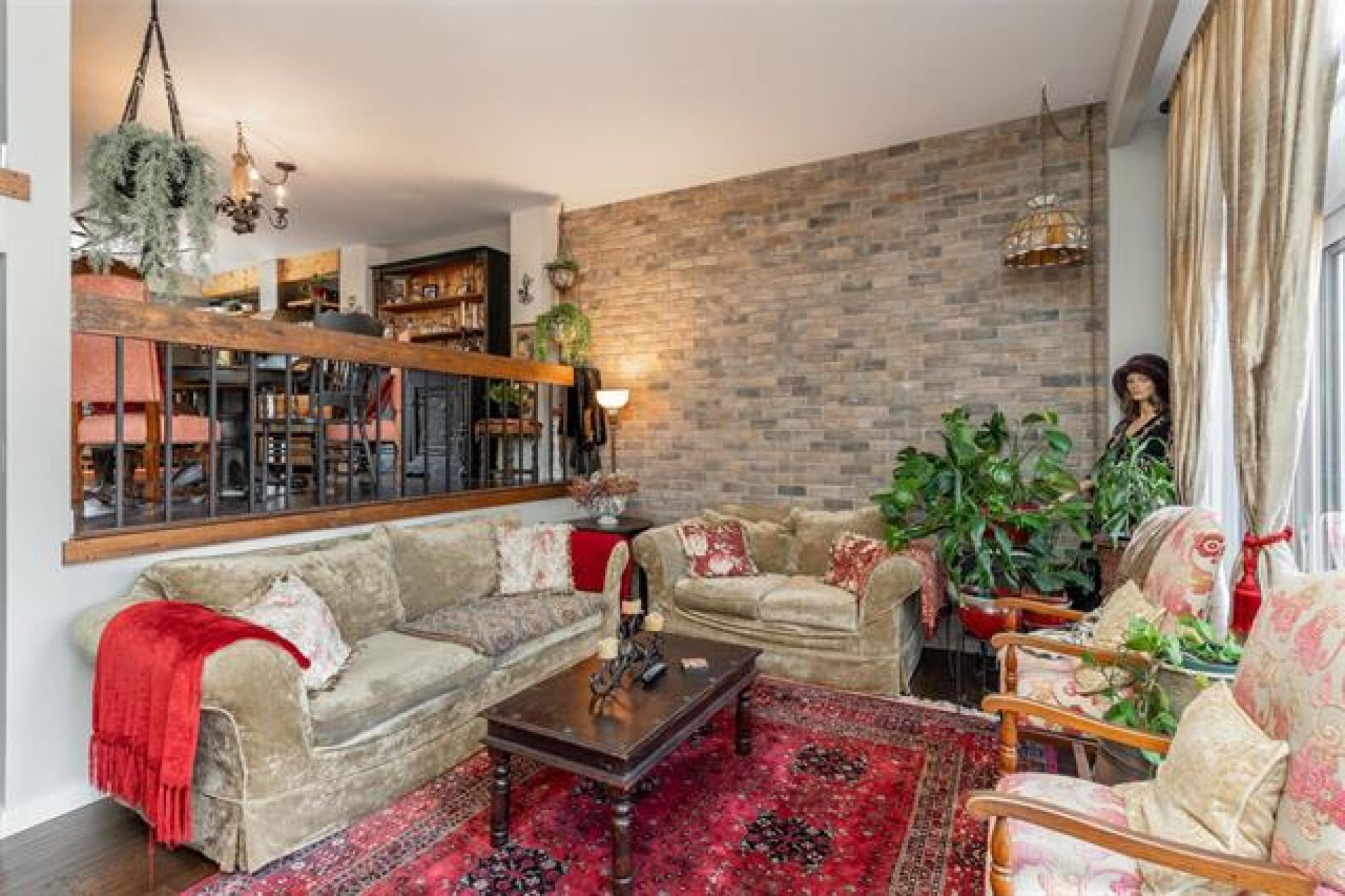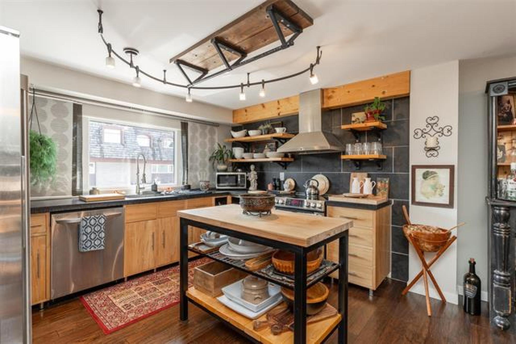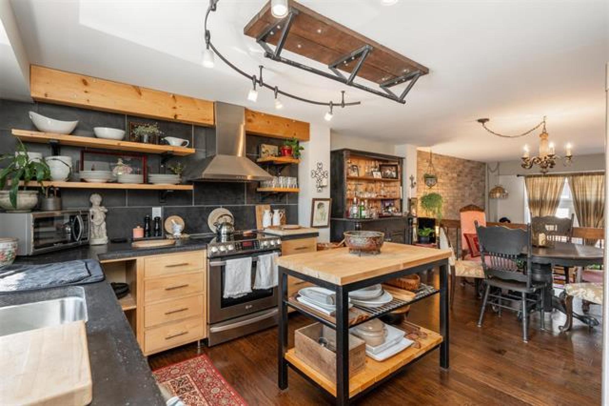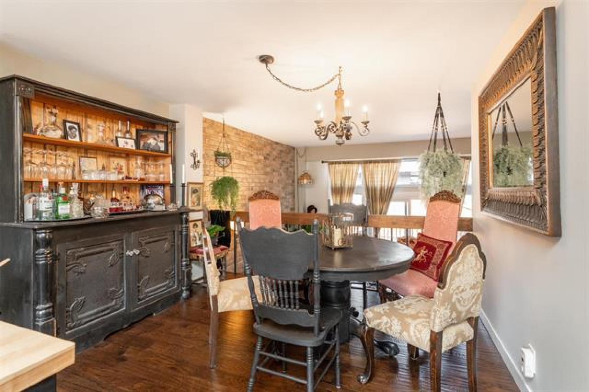 SS Tues Sept 16. Welcome to this spacious, stylish & updated 1,540 sq. ft. townhome featuring 3 bedrooms & 1.5 beautifully updated bathrooms. Hand-scraped hardwood floors run throughout the main & upper levels, complemented by a feature brick wall & custom cabinetry for timeless charm. The inviting entryway offers ample closet space & leads up the open-riser staircase to the bright living room filled with natural light from a wall of windows & sliding doors that open to a private, fenced backyard with a two-tier entertaining space—complete with a deck & new interlocking patio. One level up, the stunning custom kitchen showcases custom concrete countertops, open shelving, a center island, walk-in pantry & a dining area that overlooks the living room & backyard. On the top floor, you’ll find three generous bedrooms & a full bath with a stylish sliding barn door. The finished basement includes a rec room & laundry/utility room. Enjoy a heated garage & driveway parking. Updated: flooring, windows, plumbing, bathrooms + fence, patio. A must see!