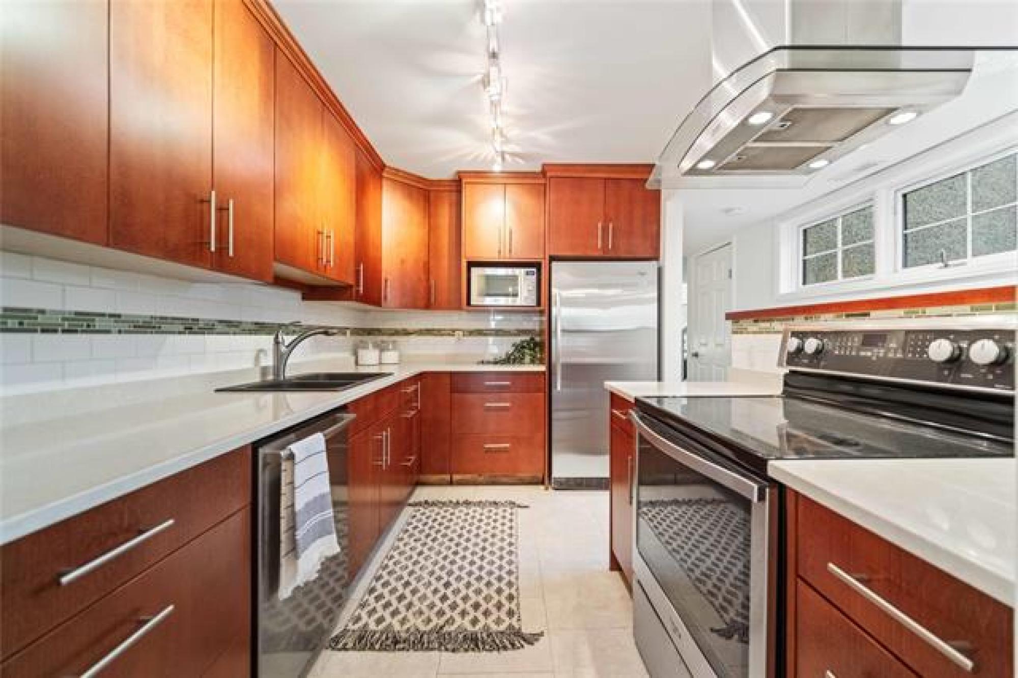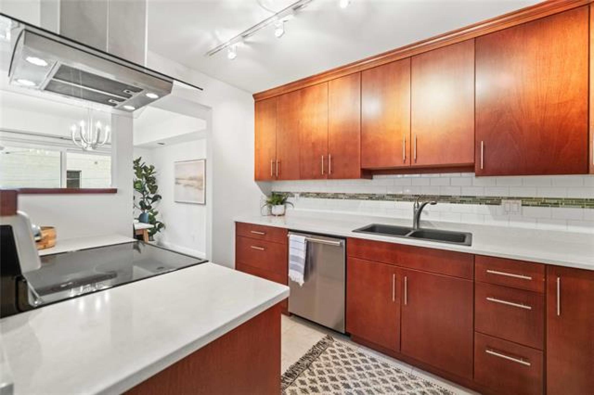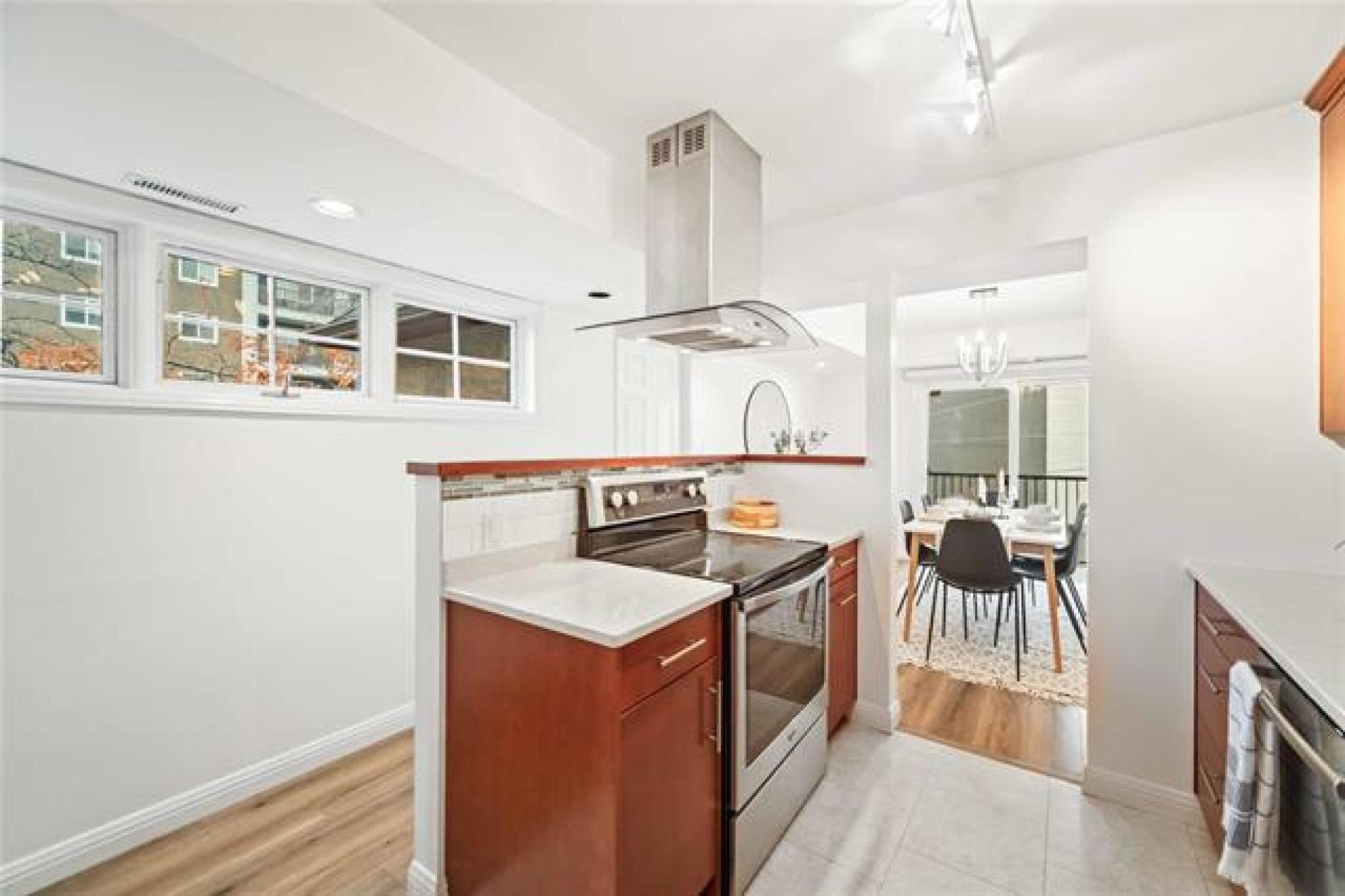 Showings start Wednesday Nov. 05, offers presented Monday Nov. 10. Executive townhome condo in fantastic location. Featuring two parking stalls (indoor garage and outdoor stall) - a rare find for this location! Beautifully renovated, this modern 1526 sq ft townhome has 3 bedrooms and 2 bathrooms. Main floor features a spacious Living Room with vaulted ceiling and large windows for plenty of natural light. The gorgeous kitchen has custom cabinets with soft close doors and drawers, stone countertops, and high end appliances. Open design of Kitchen and Dining Room is ideal for entertaining. Main floor balcony is accessed from Dining Room. Second floor has 3 bedrooms including large primary bedroom with walk-in closet. Access to the upper level balcony from primary bedroom. Stunning bathroom with tiled shower. Second floor laundry. Contemporary decor with updated flooring through-out. Additional features include central air conditioning, updated HWT (‘25), and plenty of storage space. Professionally managed complex. Ideal location close to shopping, restaurants and all amenities. Fantastic opportunity!