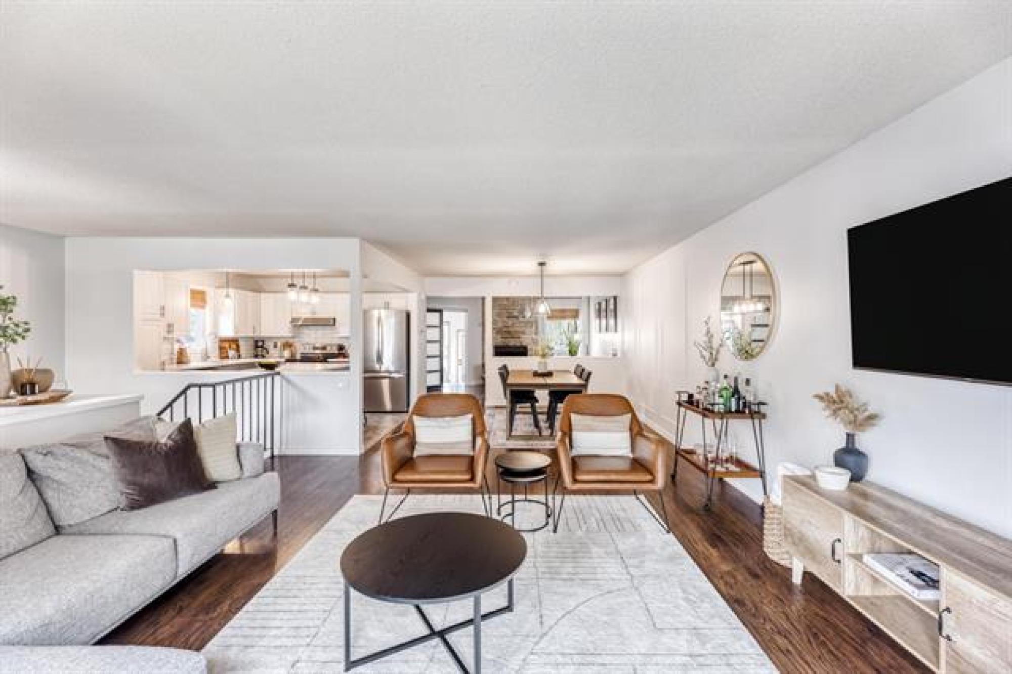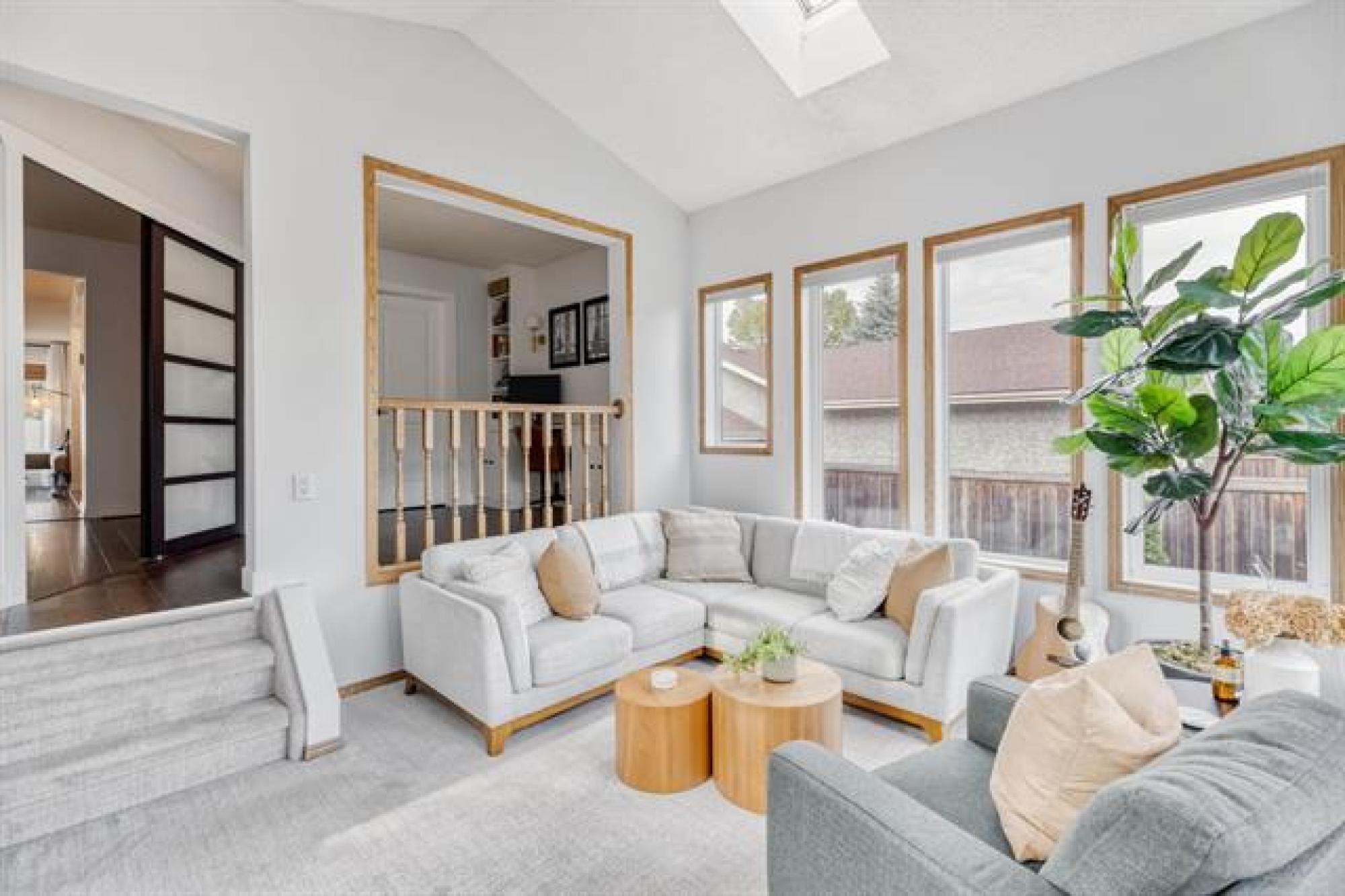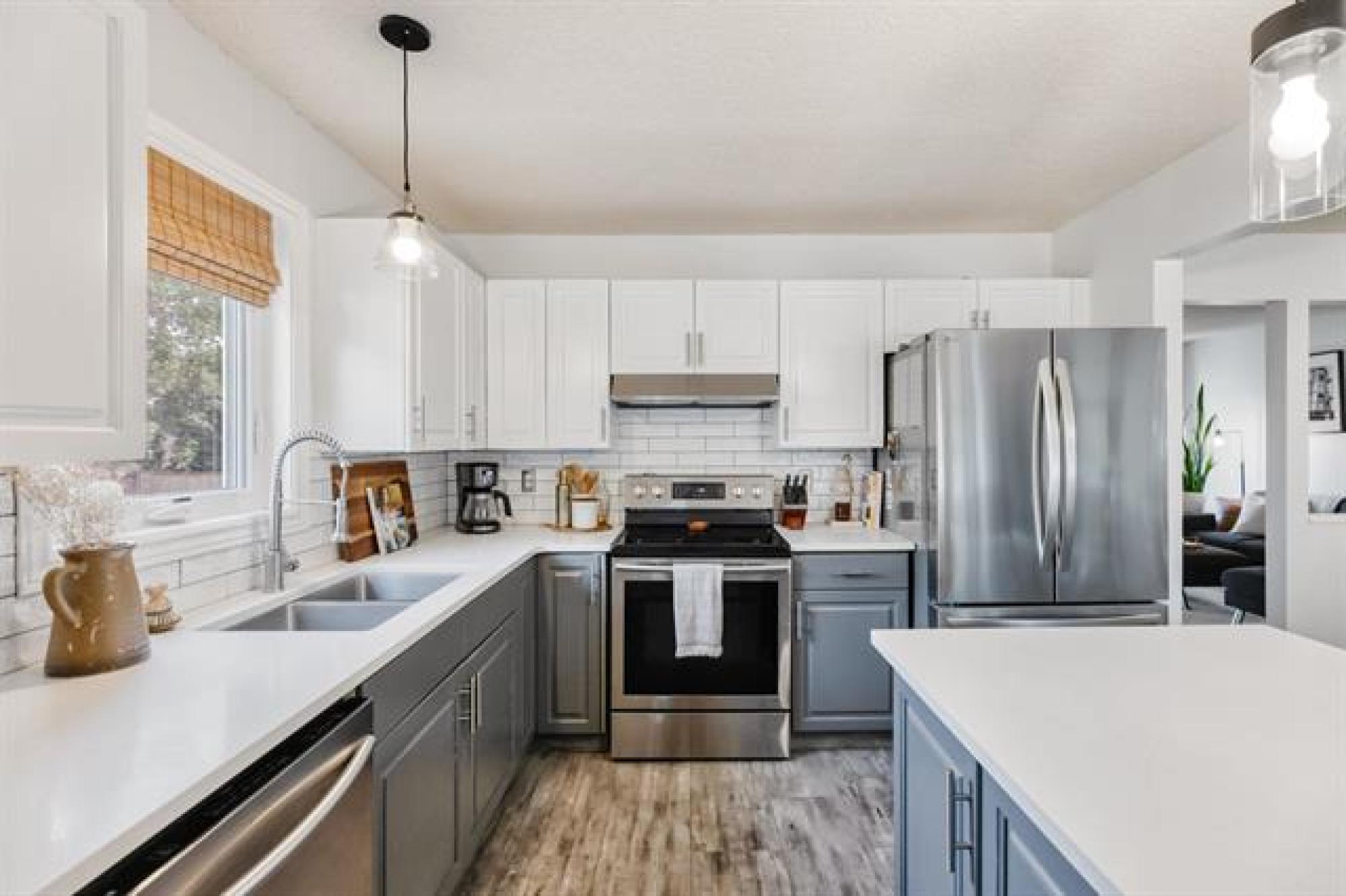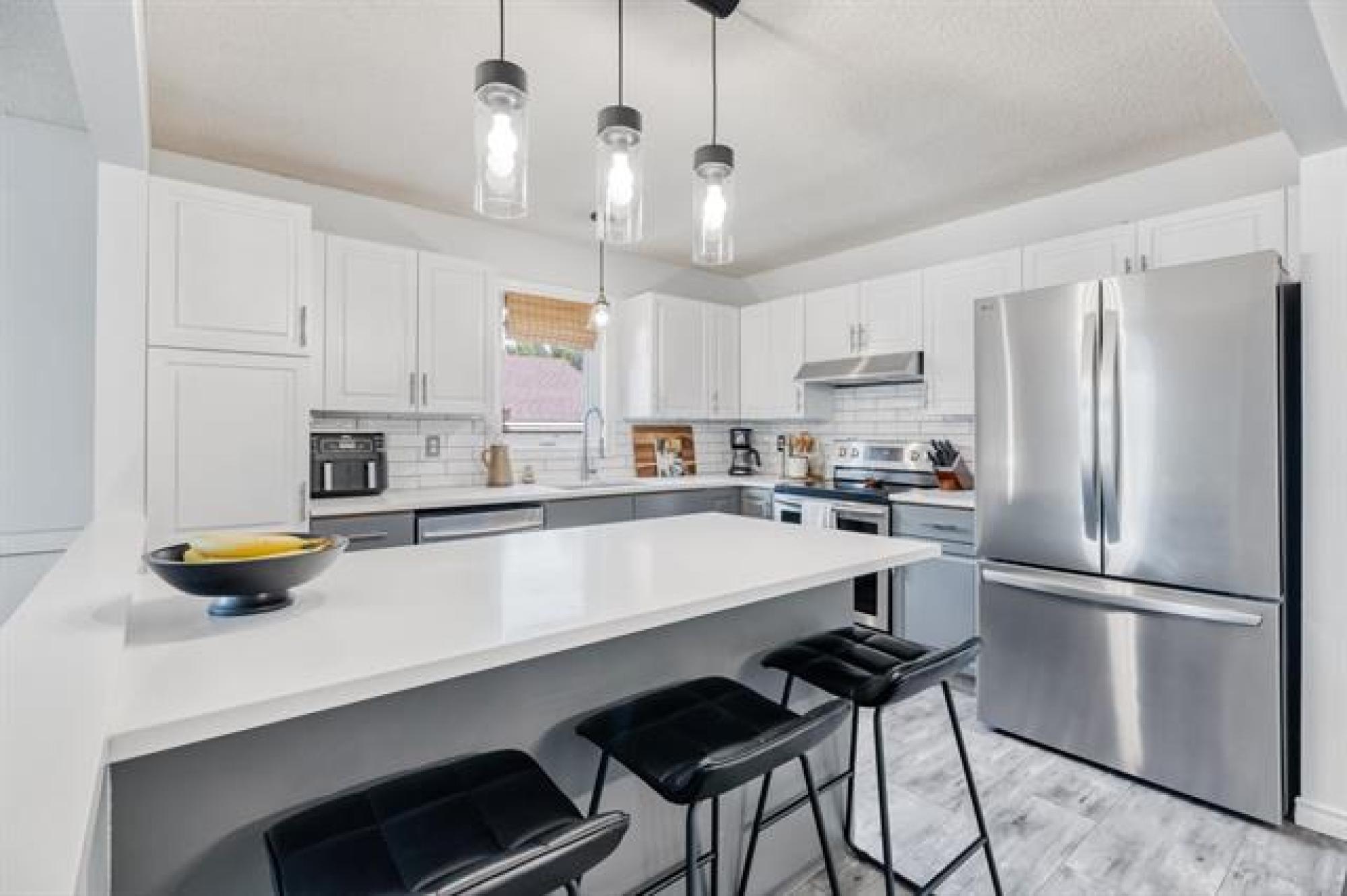 SS Oct 29th at 1PM and Offers due Nov 4th at 5:30PM. This beautifully updated bi-level home offers over 1,800 sqft of total living space. With a 10/10 curb appeal, a fully fenced backyard, and an attached single garage, everyday living is made easy. Step inside to discover a bright, open-concept main-level. The updated kitchen features quartz countertops, white cabinetry, a tiled backsplash, newer stainless steel appliances, and a versatile island with breakfast bar seating, the perfect spot to start your mornings. Head over to the cozy secondary living room, where a stone-facing fireplace is the focal point. At the back of the home, the sunken sunroom offers a retreat filled with natural light, an ideal space to unwind or enjoy your morning coffee with views of the backyard. The main level is complete with a two-piece bathroom and a built-in desk area. Downstairs, you’ll find three spacious bedrooms with large lookout windows that fill the space with light, an updated four-piece bathroom, and a laundry/utility room for added convenience. Step outside to your private backyard oasis, with a deck and patio area surrounded by greenery, it’s the perfect setting to garden or simply relax. Don't miss out.