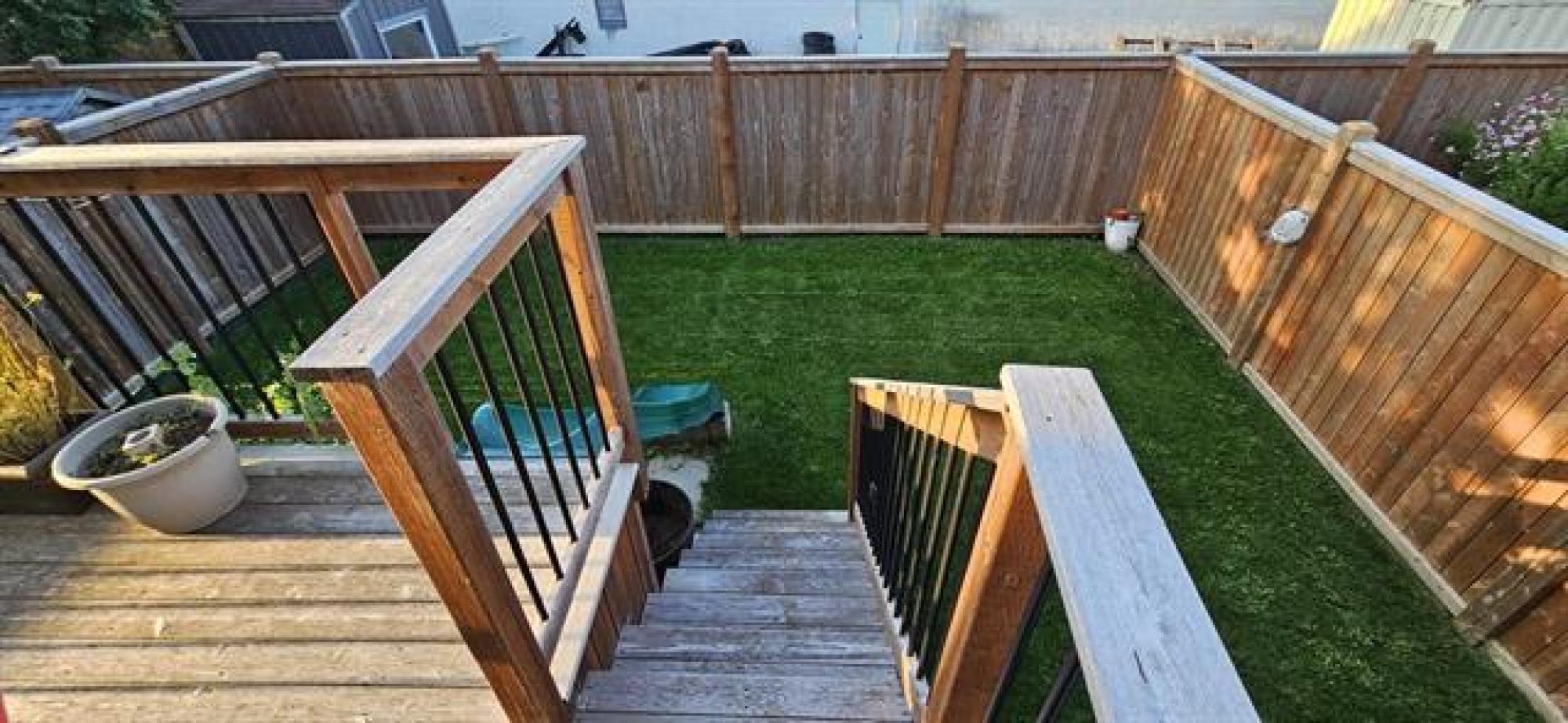 No showings until Oct. Rth. Come check out this modern condo built in 2016. Beautiful kitchen with dark cabinetry and 5 kitchen appliances included. Extended peninsula that accommodates additional seating availability. Patio door off of your dining area to your deck & landscaped yard which is fully fenced. Spacious living room with lots of natural light. A 2pc powder room completes the main floor. Your finished basement features the primary bedroom & an additional 2 bdrms. & main 4pce bath. Your private back yard comes with the raised deck and fully fenced. Pets allowed with condo board approval