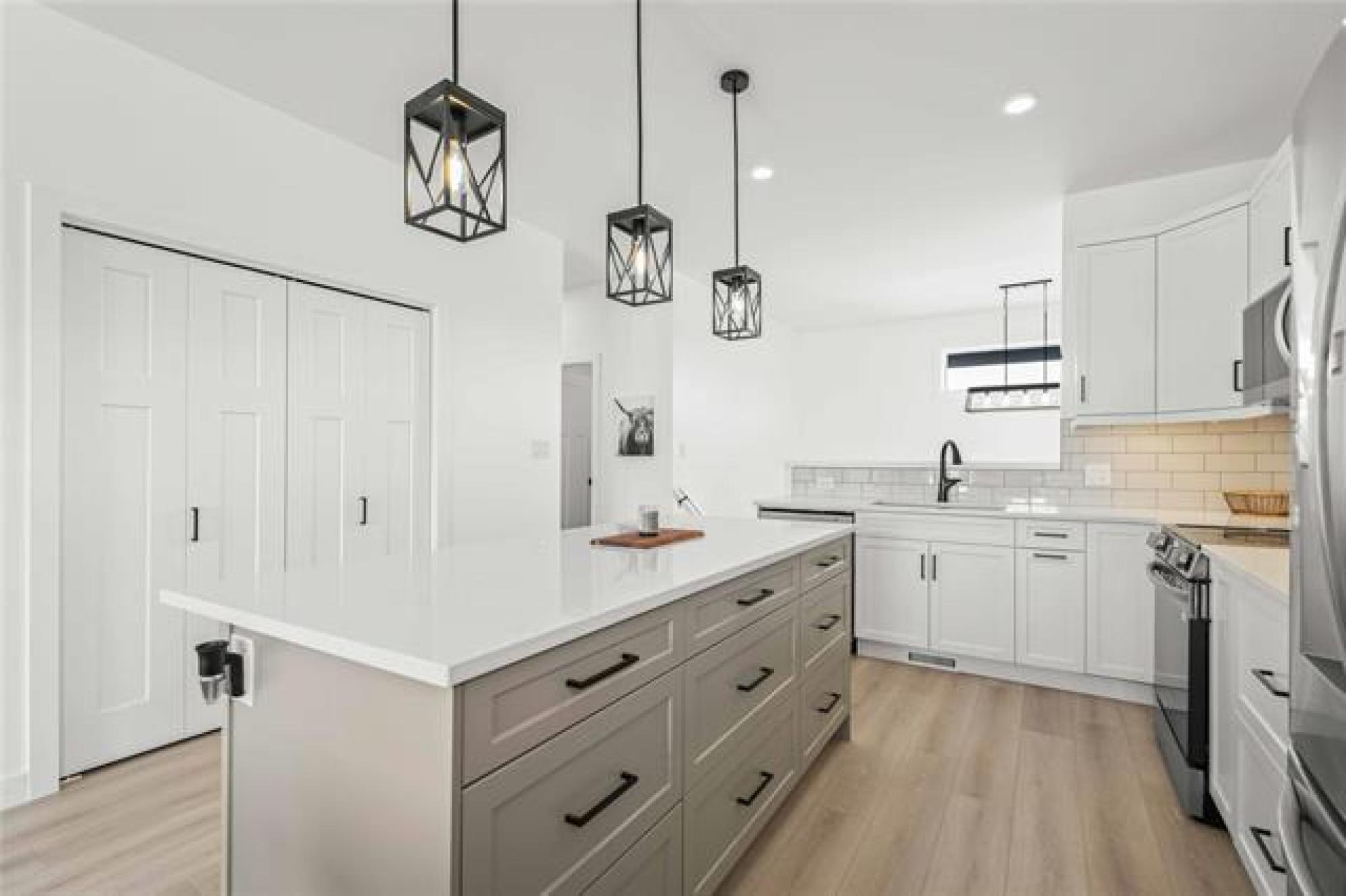 **Pictures are from similar build** National Home Warranty Included. Beautiful brand new 1,315 SqFt Bilevel with a full basement on a large 52' corner lot in Niverville Manitoba near the golf course (Highlands). Featuring 3 bedrooms, 2 bathrooms on the main floor. Great floorplan! Walk in to the large foyer area with vinyl flooring in the entrance with a large closet space! The main floor features laminate flooring, custom white cabinets, large island with quartz countertops. Living room has abundance of natural light with 9 foot ceilings and a patio door backing onto your yard (Deck is negotiable). The primary bedroom has an ensuite bathroom and large walk in closet! The basement is drywalled with an Insulated Concrete Form foundation (ICF) and steel beam construction! House is built on piles. Concrete driveway! Custom selections can still be made. Appliances & landscaping negotiable. Call now for more information and specs!