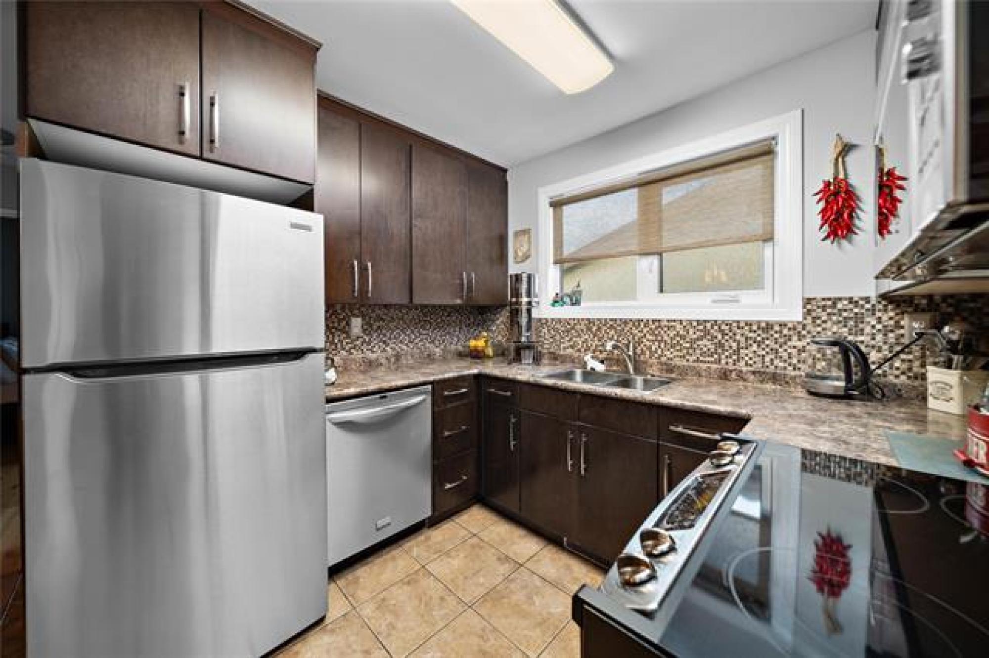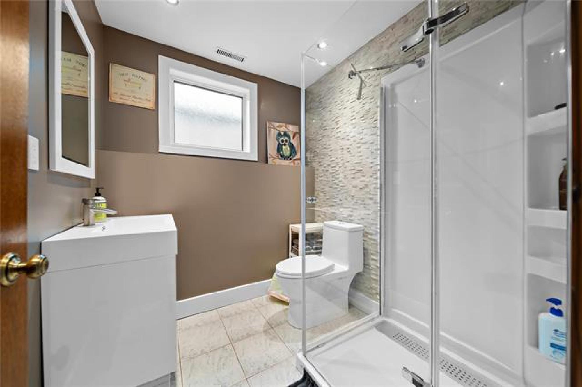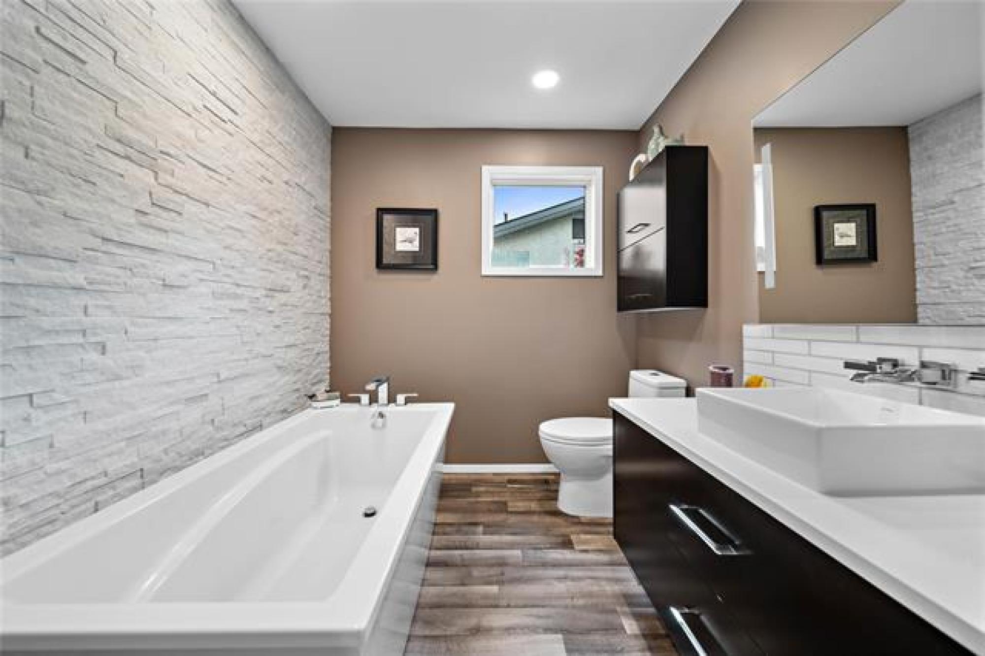 **Offers reviewed Tuesday, October 21st** Welcome to this beautifully maintained 3-bedroom, 2-bathroom bi-level home in the heart of Lakeside Meadows, just steps from Joseph Teres School! The main level features a bright, spacious living room highlighted by hardwood floors and a cozy gas fireplace, flowing into an inviting kitchen with stained wood cabinetry, laminate countertops, tile flooring, and stainless steel appliances. Two good-sized bedrooms and a fully renovated 3-piece bathroom with a soaker tub and floating vanity complete the main floor. The lower level offers a generous rec room with large windows, a third bedroom, and an updated 3-piece bathroom. Outside, enjoy the fenced yard with a brick patio, ideal for summer entertaining, plus a concrete front driveway for convenient parking. Additional updates include PVC windows throughout, shingles, and a hot water tank. With its thoughtful upgrades, warm finishes, and prime location, this home shows exceptionally well and is move-in ready.