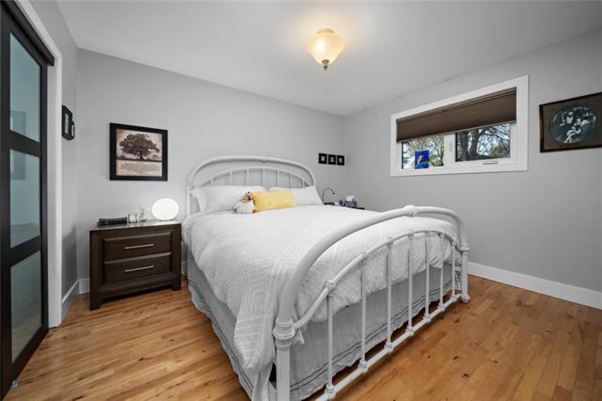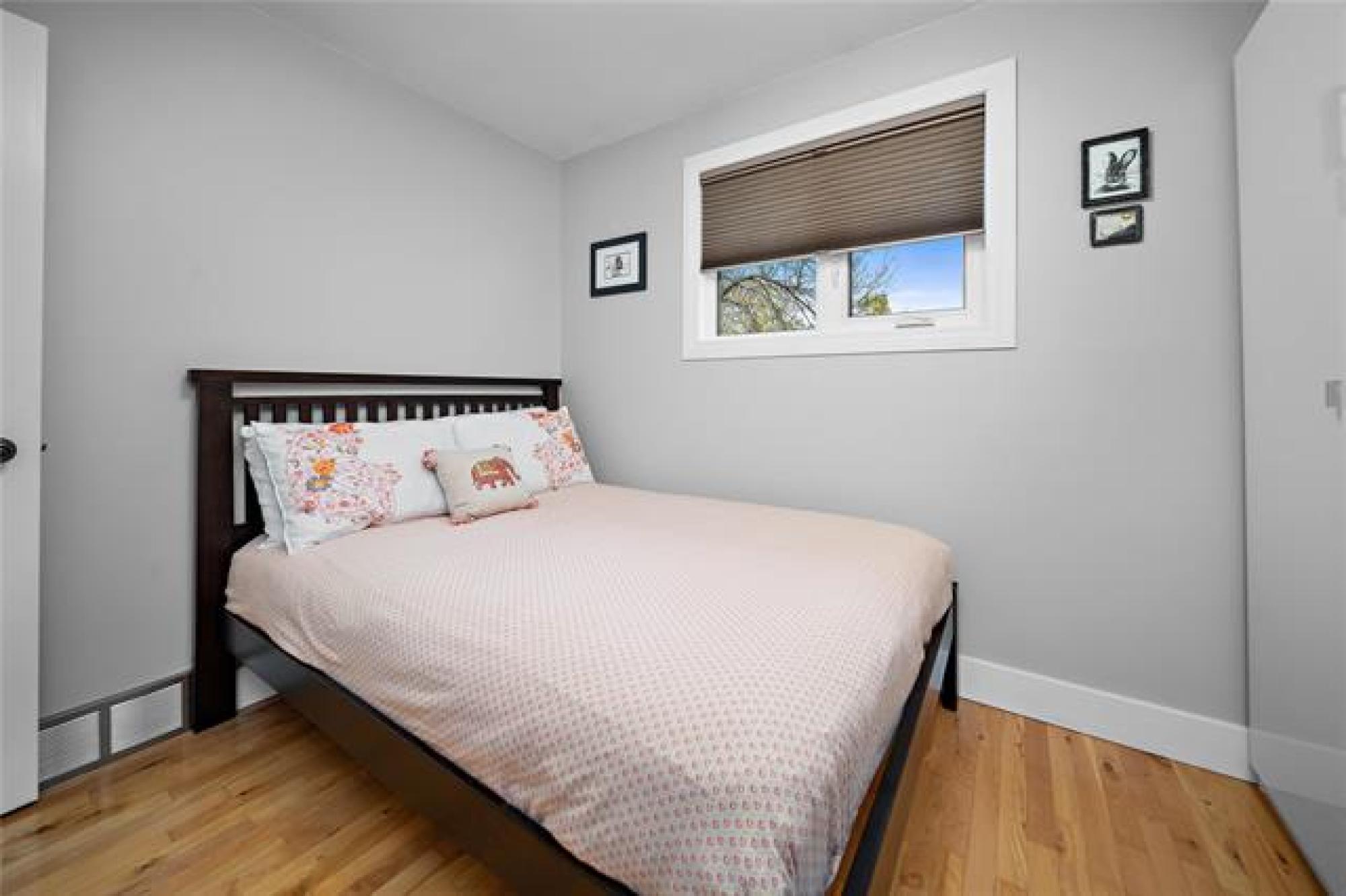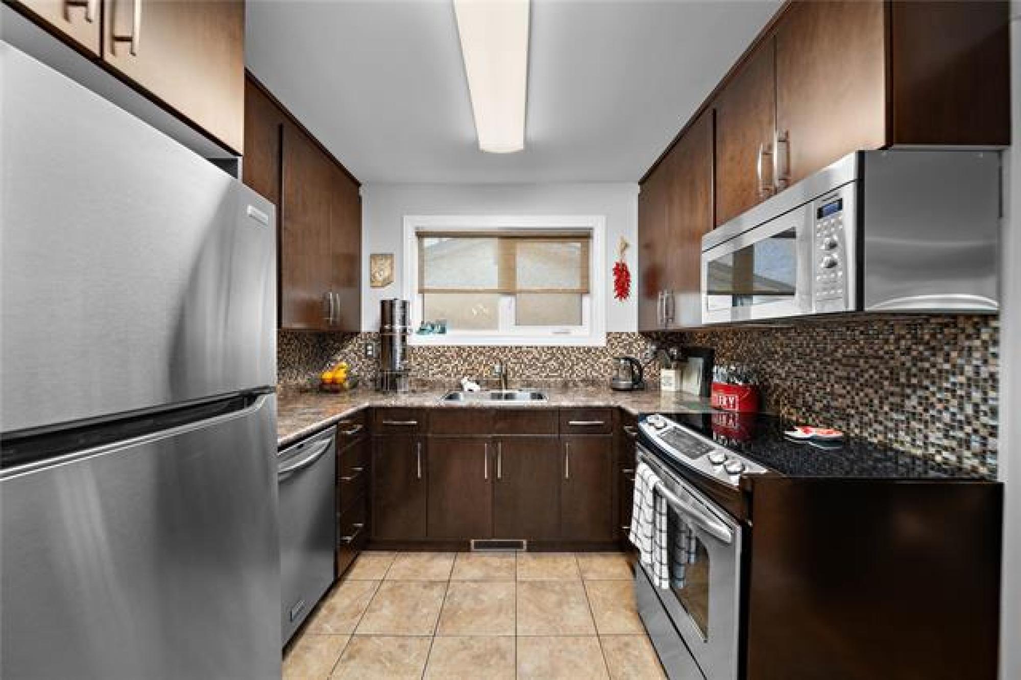 **Offers reviewed Tuesday, October 21st** Welcome to this beautifully maintained 3-bedroom, 2-bathroom bi-level home in the heart of Lakeside Meadows, just steps from Joseph Teres School! The main level features a bright, spacious living room highlighted by hardwood floors and a cozy gas fireplace, flowing into an inviting kitchen with stained wood cabinetry, laminate countertops, tile flooring, and stainless steel appliances. Two good-sized bedrooms and a fully renovated 3-piece bathroom with a soaker tub and floating vanity complete the main floor. The lower level offers a generous rec room with large windows, a third bedroom, and an updated 3-piece bathroom. Outside, enjoy the fenced yard with a brick patio, ideal for summer entertaining, plus a concrete front driveway for convenient parking. Additional updates include PVC windows throughout, shingles, and a hot water tank. With its thoughtful upgrades, warm finishes, and prime location, this home shows exceptionally well and is move-in ready.