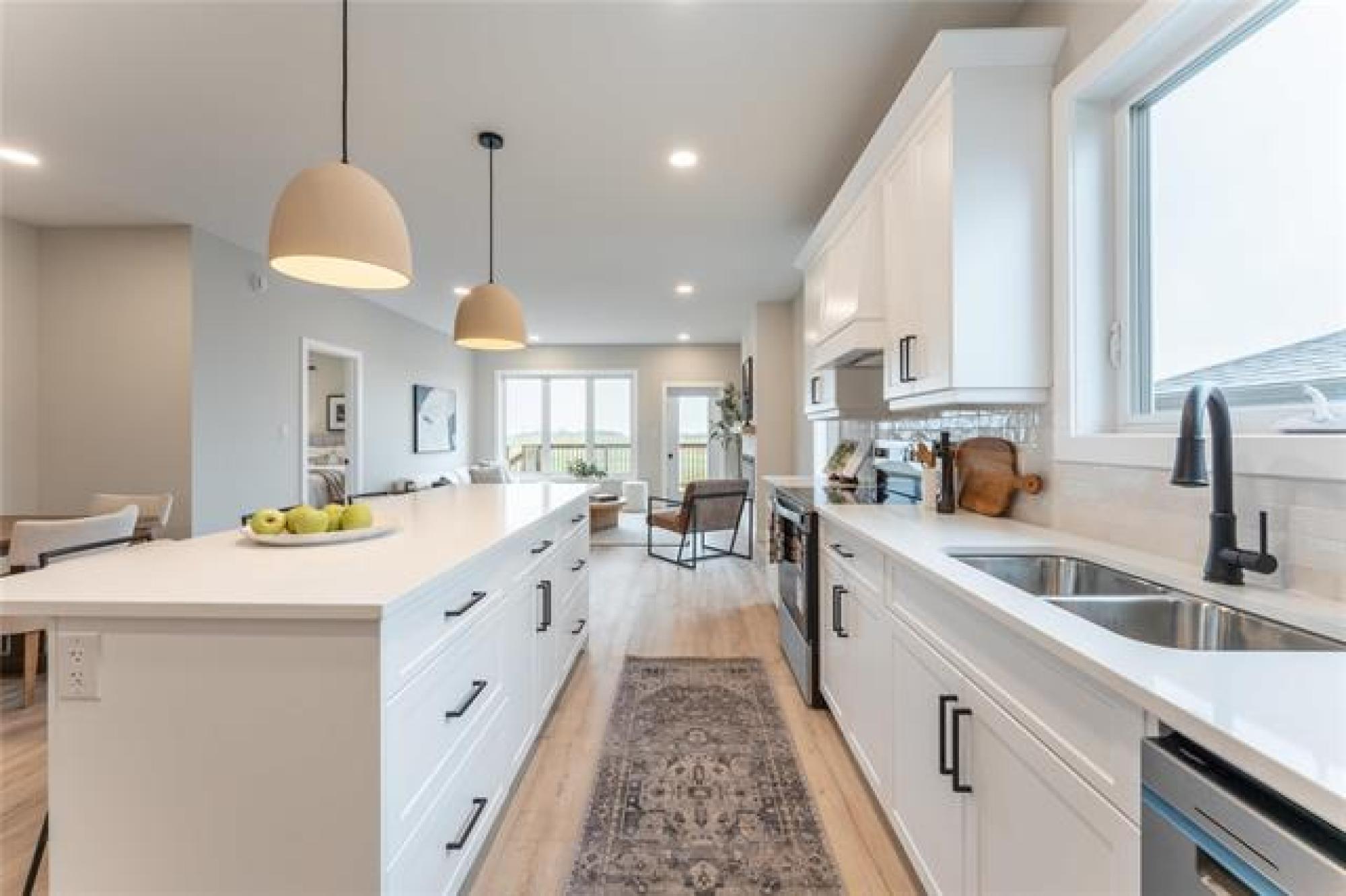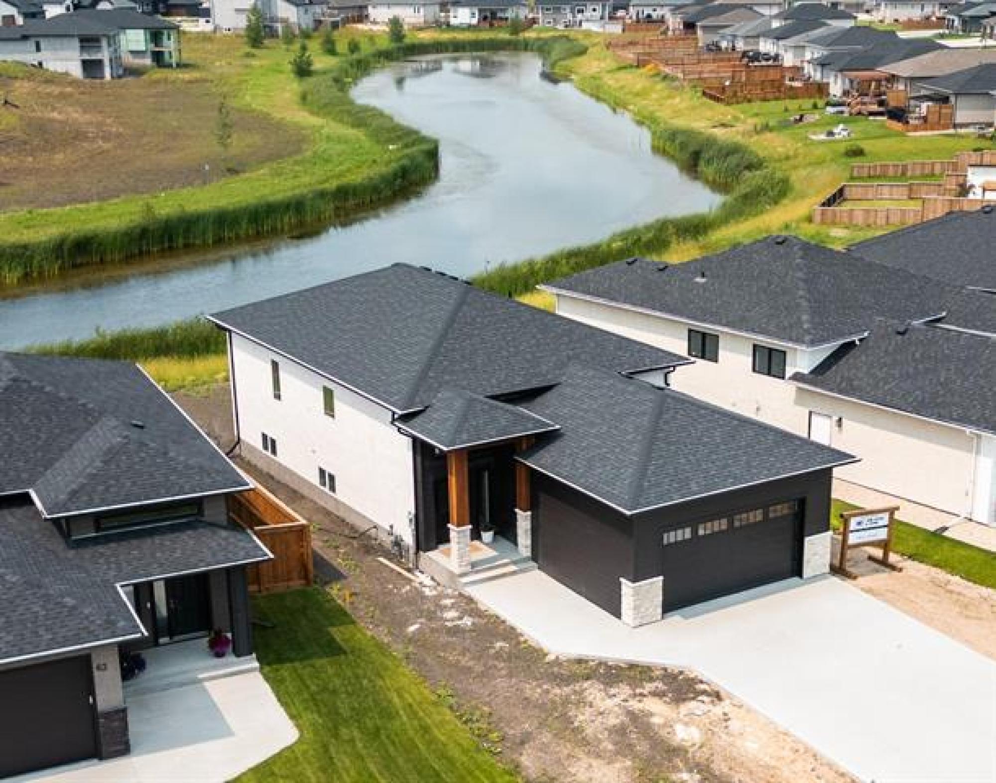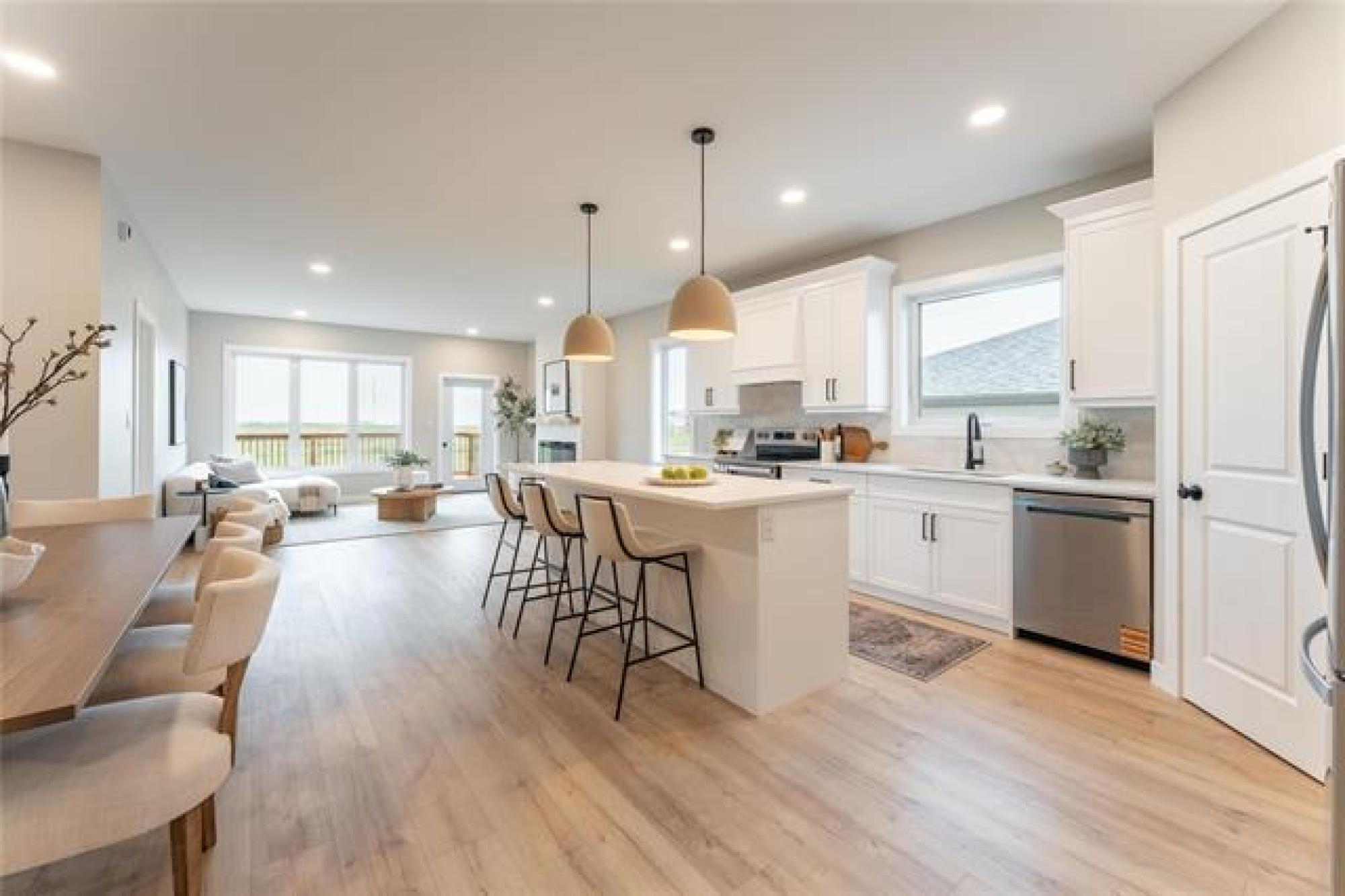 Welcome home to 20 Gleneagles Street, Niverville! A stunning Bi-level backing onto the lake and boasting top-of-the-line construction, including ICF foundation, triple-pane windows w/ Hardie board exterior, and stacked stone accent. High-end finishings including premium laminate flooring, Sprayed HDF cabinets w/ soft close, custom-built hood fan, apron sink, quartz countertops, Venetian plaster feature wall w/ live-edge Cottonwood mantle. Open concept floor plan with tons of natural light and exceptional lake views. The primary bedroom offers an impressive ensuite and plenty of closet space. 2 large additional bedrooms w/ full main bath. 22x24.5 deep garage w/ side yard space for a camper. National Home Warranty included! Possession is slated for June 1st, 2026. Call today for some of the best value in Niverville!