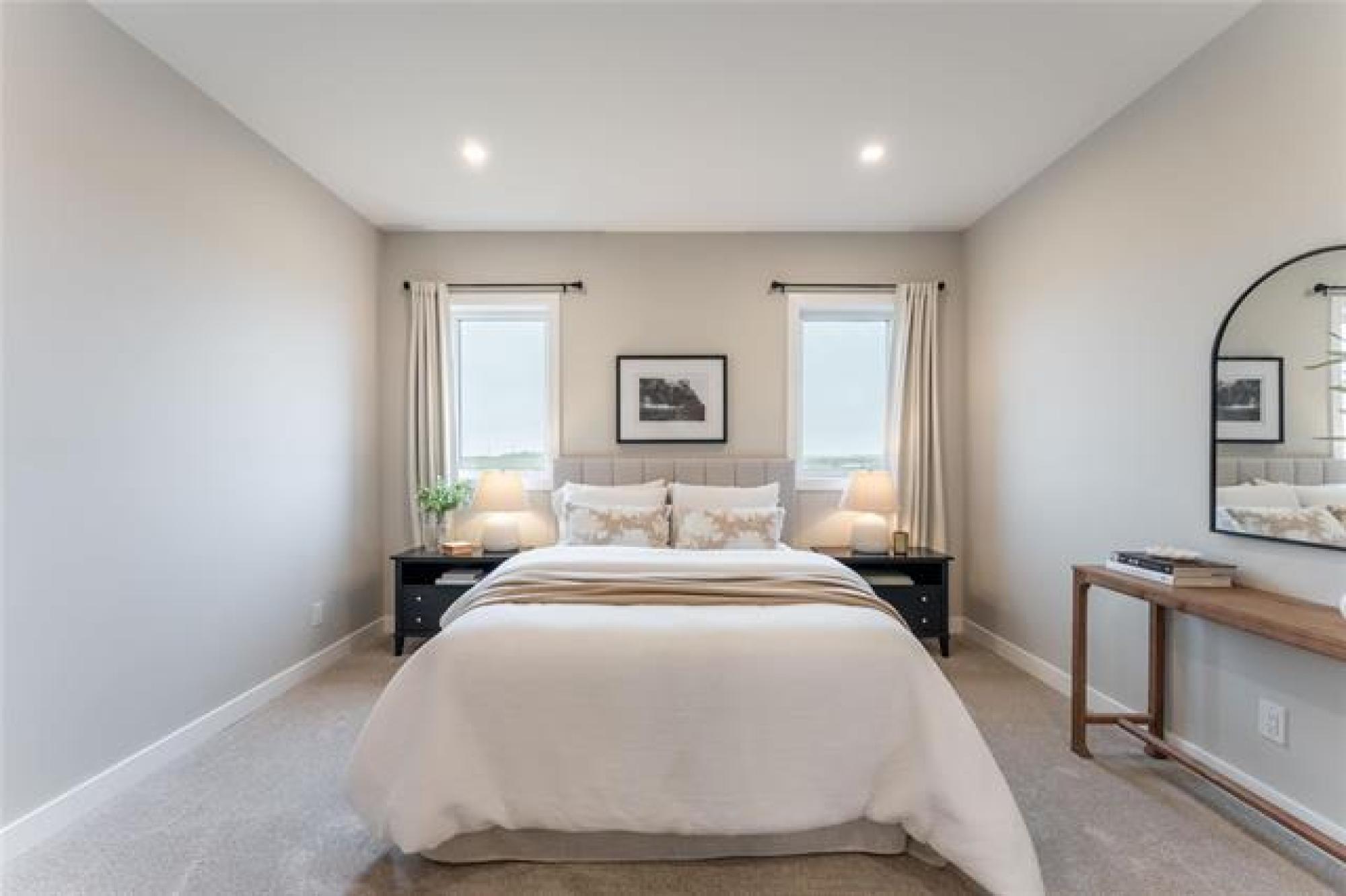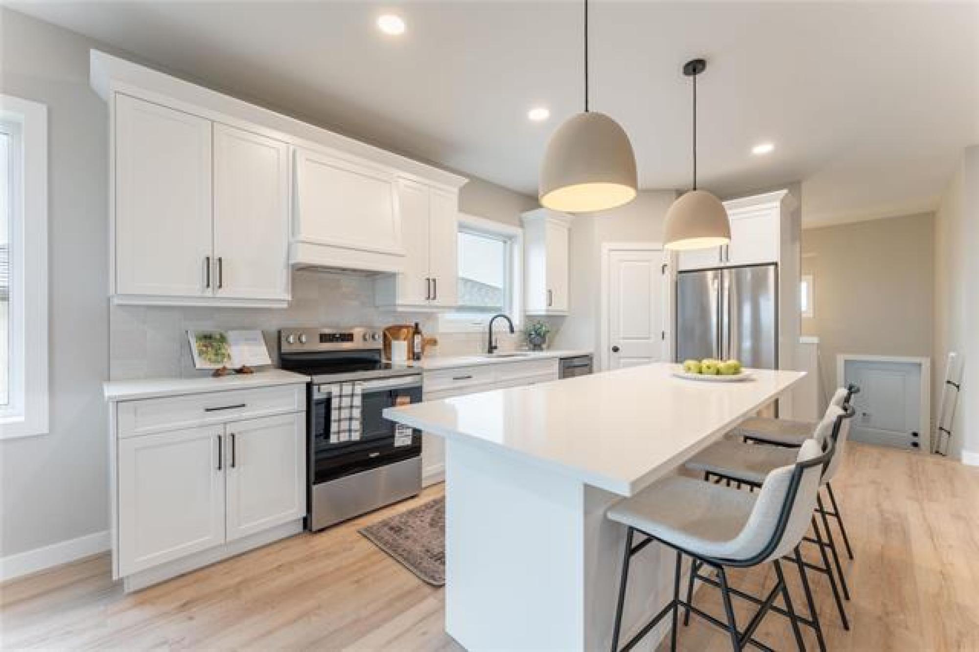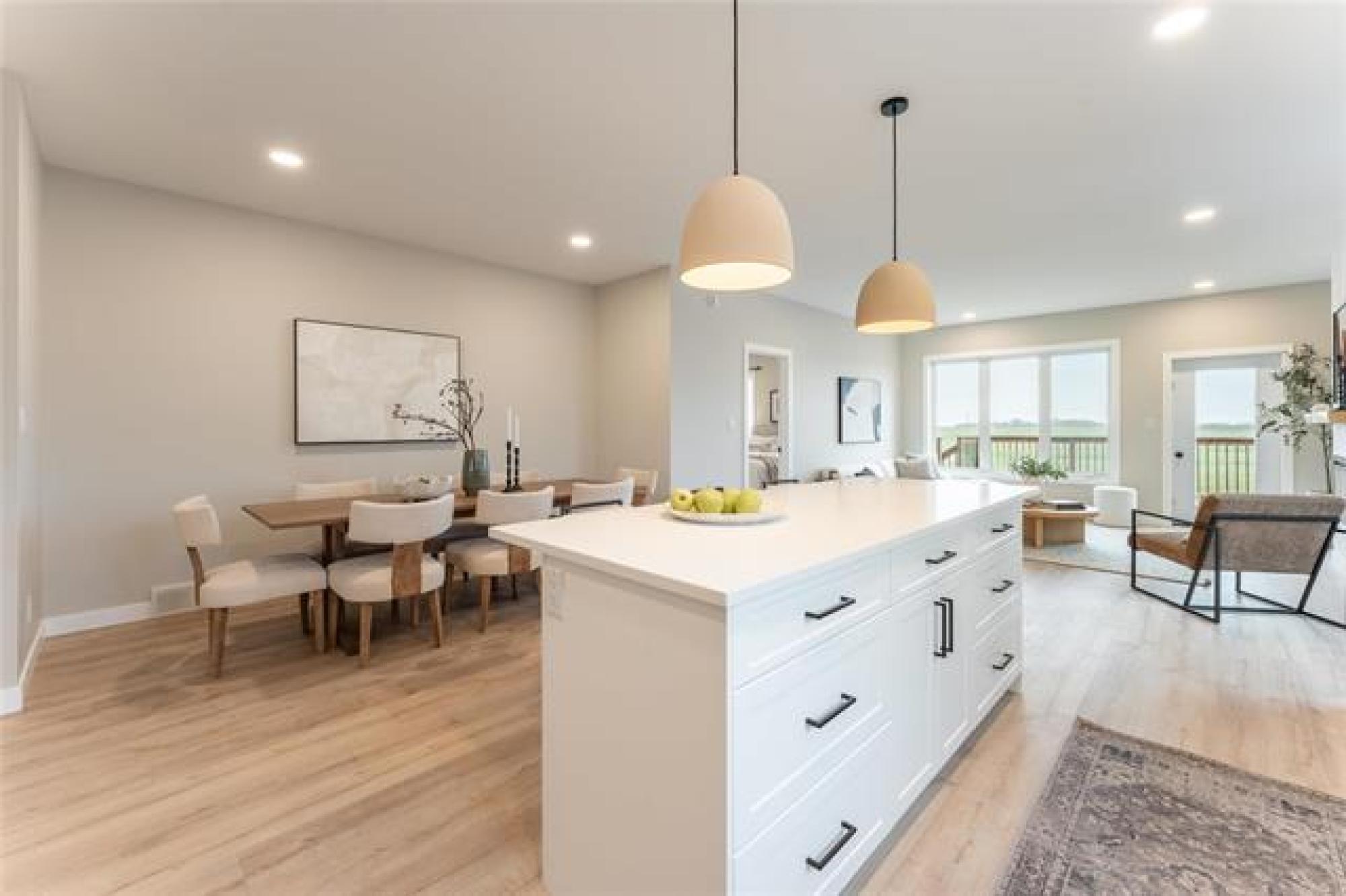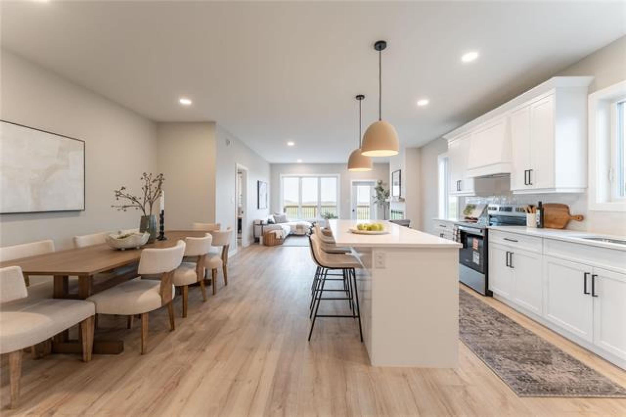 Welcome home to 20 Gleneagles Street, Niverville! A stunning Bi-level backing onto the lake and boasting top-of-the-line construction, including ICF foundation, triple-pane windows w/ Hardie board exterior, and stacked stone accent. High-end finishings including premium laminate flooring, Sprayed HDF cabinets w/ soft close, custom-built hood fan, apron sink, quartz countertops, Venetian plaster feature wall w/ live-edge Cottonwood mantle. Open concept floor plan with tons of natural light and exceptional lake views. The primary bedroom offers an impressive ensuite and plenty of closet space. 2 large additional bedrooms w/ full main bath. 22x24.5 deep garage w/ side yard space for a camper. National Home Warranty included! Possession is slated for June 1st, 2026. Call today for some of the best value in Niverville!