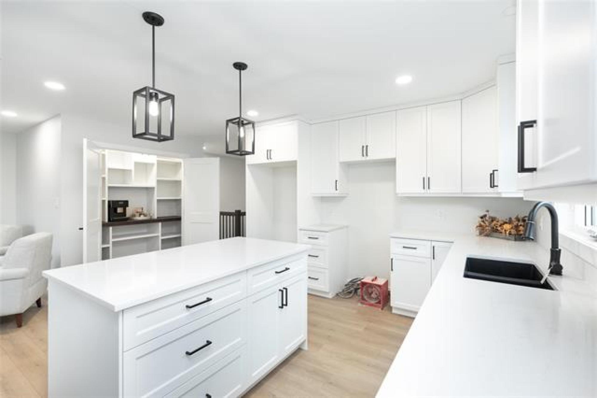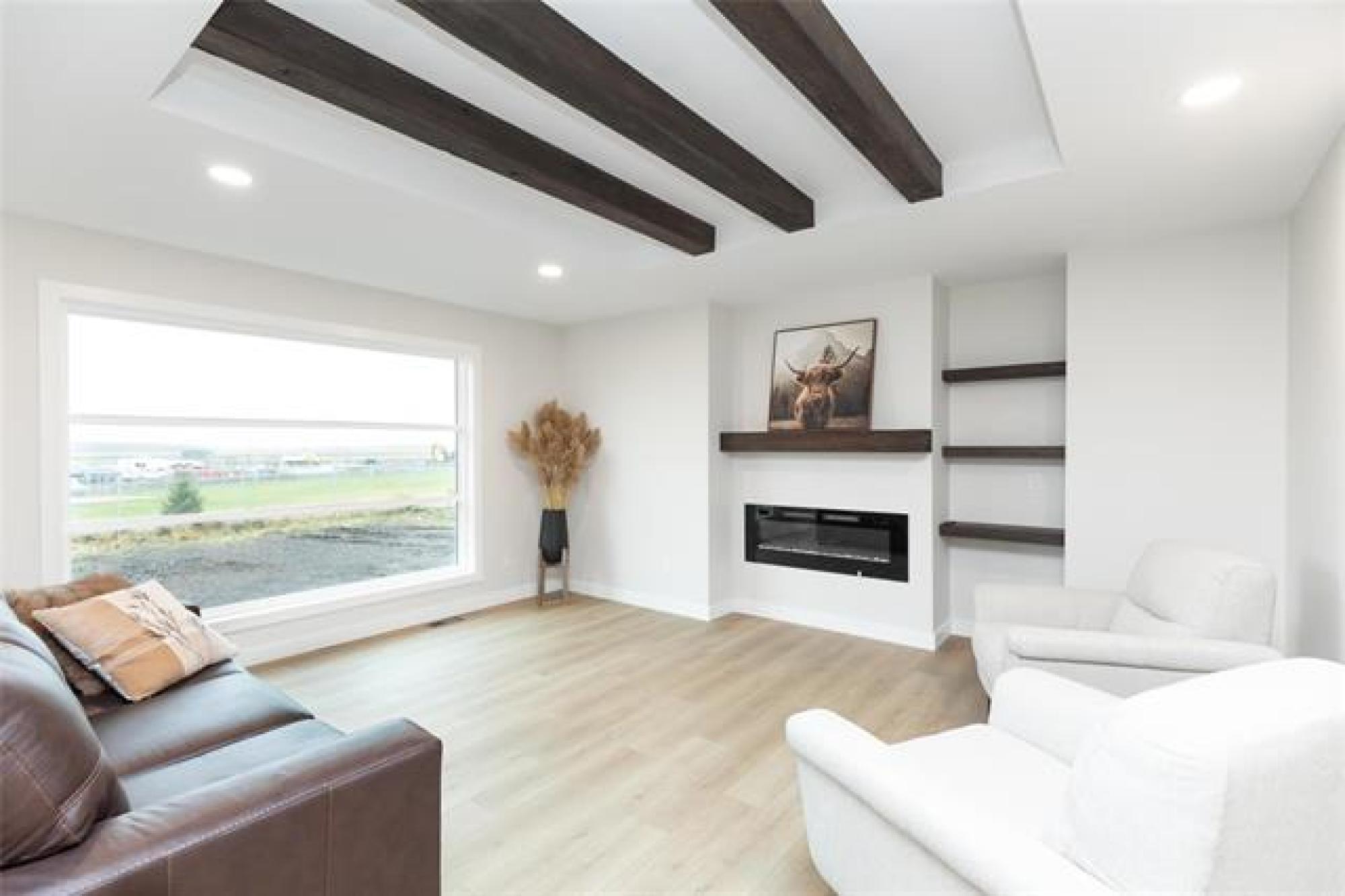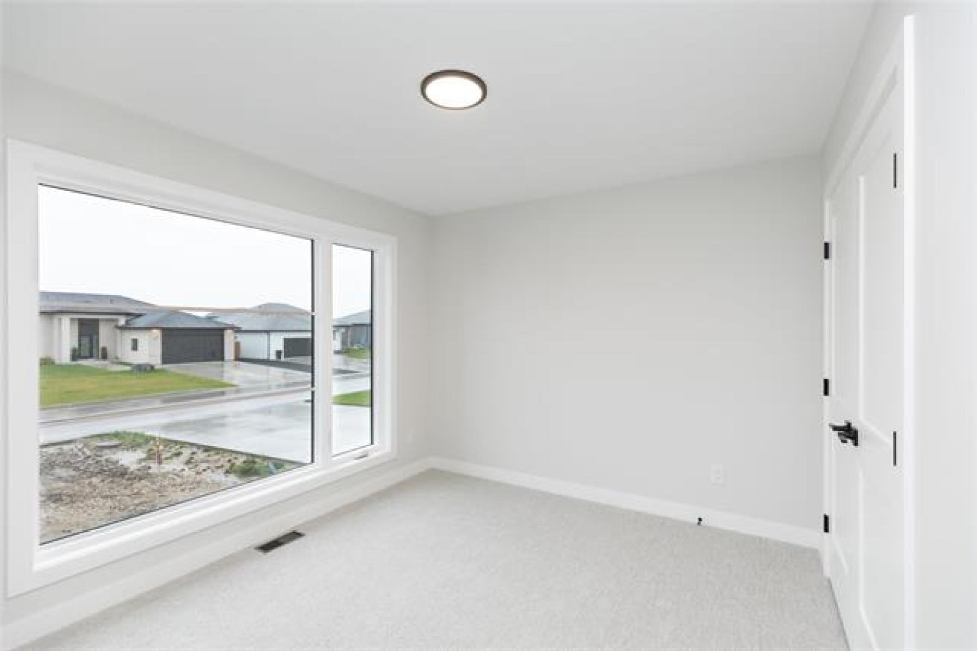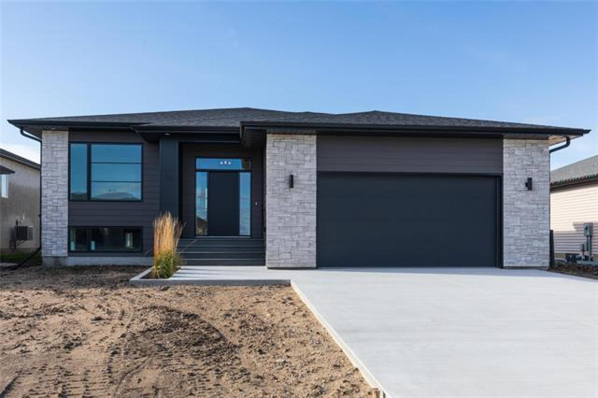 30 Caribou Bay- prime oversized 62'x141' lot in hot neighborhood of Parkhill, backing onto the brand new schoolyard! Curb Appeal to the max. 22' wide concrete driveway & front walk (built in planters!), BONUS SPACE beside the 24x24 garage for camper/boat/additional parking! Head inside to 1460 square feet of custom finishings! Beautiful woodwork detailing throughout- from the stairway railings, wood beam tray ceiling detail & mantle above fireplace, media shelving in living room to cabinetry in the bonus appliance pantry/coffee bar! Open living space for entertaining, front office (or 2nd bedroom) w/ massive picture window & MAIN LEVEL LAUNDRY are just some features! Large eat-up island w/quartz countertops & cabinetry right to the ceiling. Total of 3 bed, 2 bath and laundry on main. Primary bed includes 4pc ensuite and separate walk-in closet with barn door feature. Downstairs is thoughtfully laid out for a future 3 good sized bedrooms PLUS rec room & rough-in bathroom. Wall rough-in on main for central vac, steel beam construction, central a/c, New Home Warranty! Ask for full list of features that don't fit in this description!