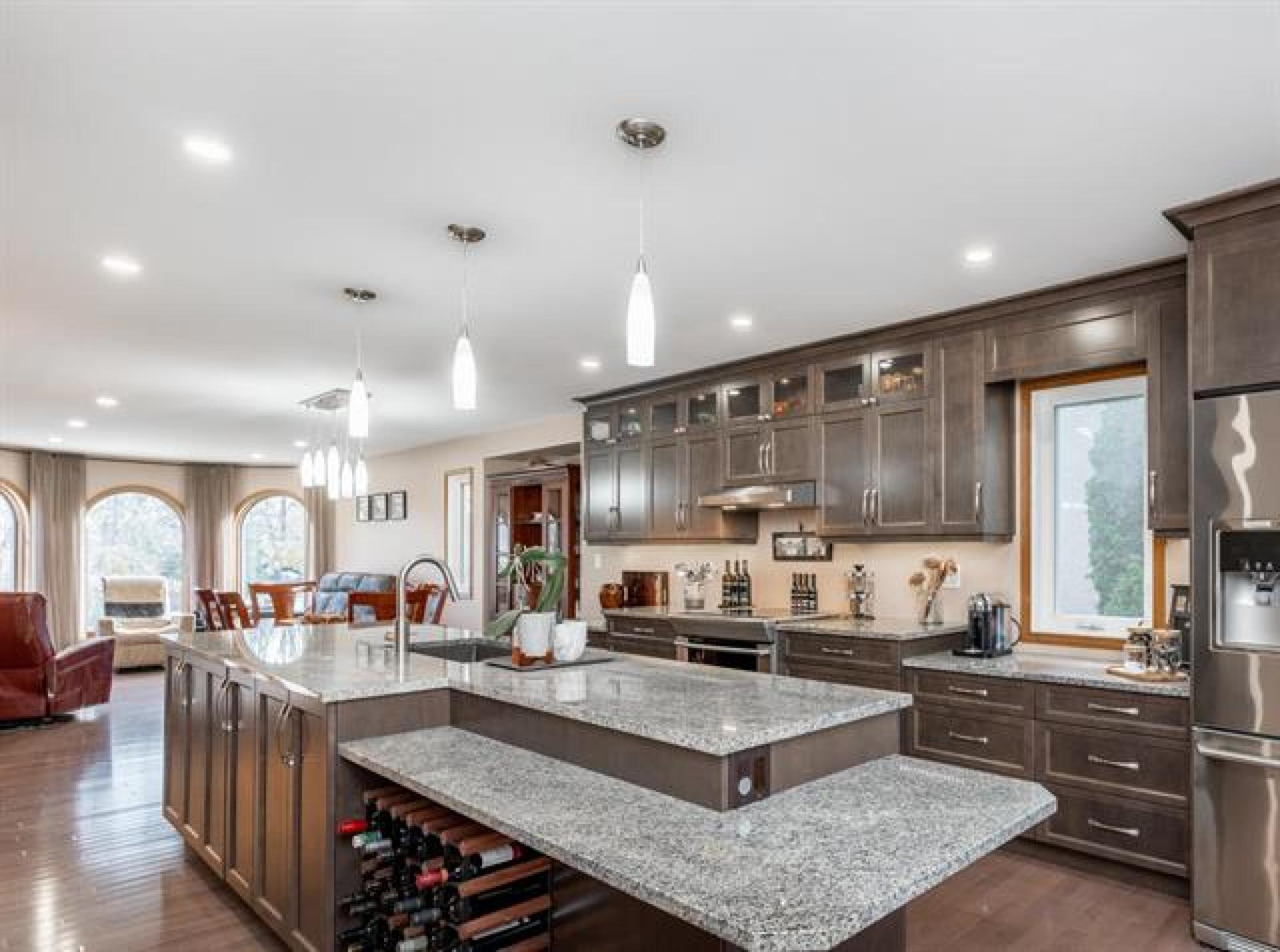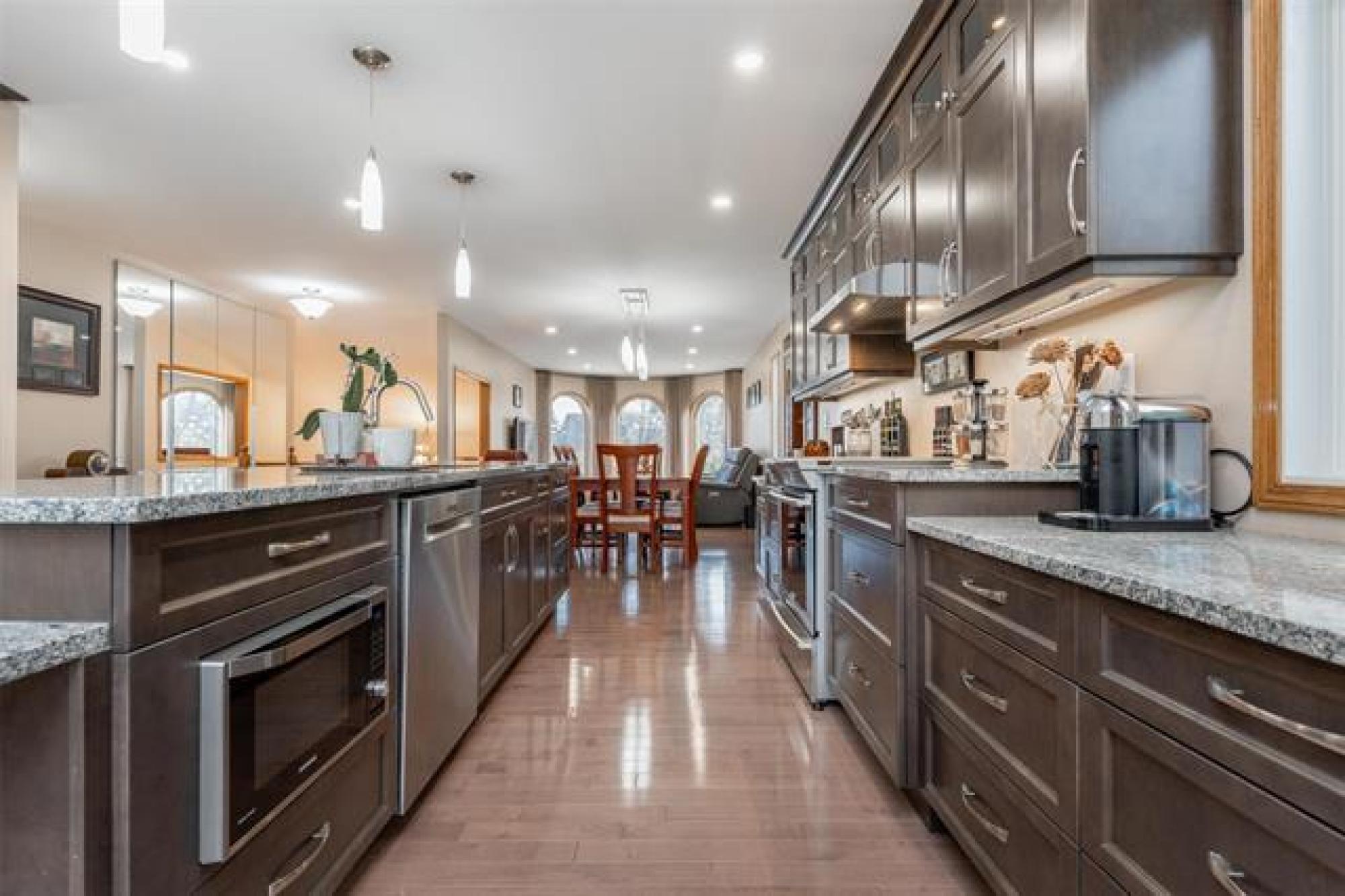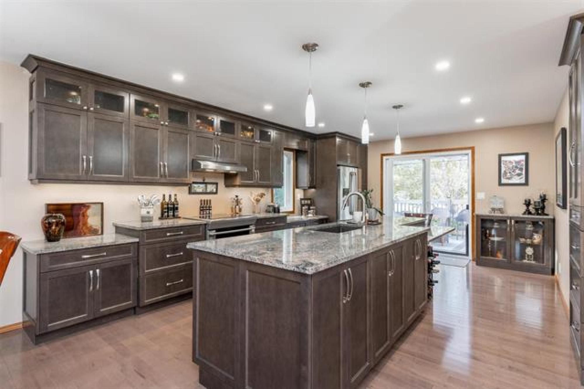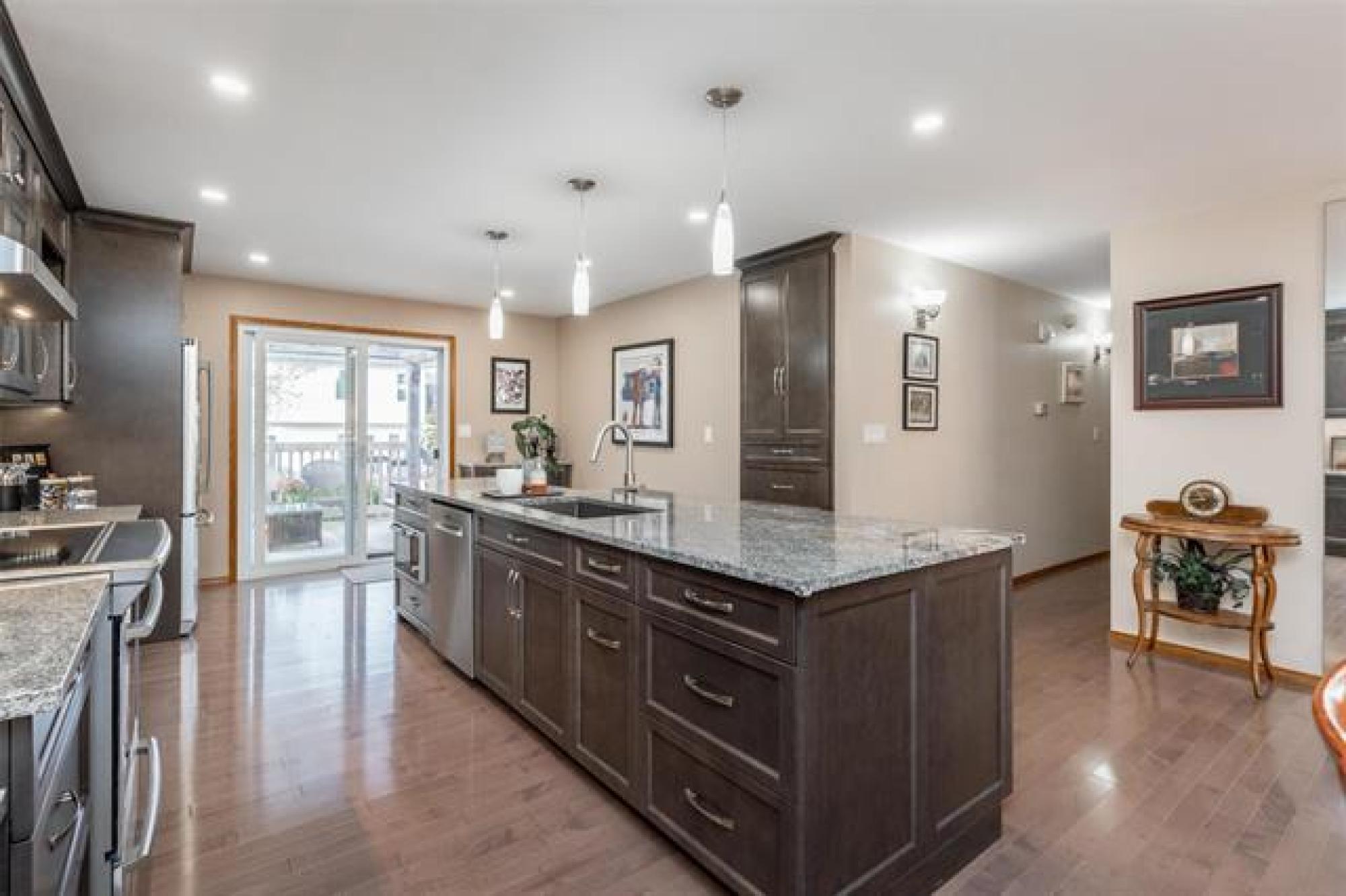 Stunning 3-Bed, 3-Bath Home in River Park South. Well-maintained home in a highly desirable, amenity-rich neighborhood (great schools, shopping, rec center…). Main Floor: Style meets function. Maple hardwood floors throughout the open-concept living, dining, and kitchen area. The stunningly renovated kitchen features granite countertops, maple cabinets, elegant lighting, and ample counter space. Perfect for hosting dinner parties. The large primary bedroom has fantastic closet organizers and a remodeled 3-piece ensuite. Renovated main bath features a soaker air jet tub. Generous second bedroom with closet organizers. Downstairs: Large windows fill the lower level with light. Includes a spacious 3rd bedroom (16’ x 11’) and a remodeled bath with a tiled shower. The family/rec room has a cozy gas fireplace and a large bar for game nights. Backyard: An oasis with a tastefully designed multi-level deck, fully fenced and beautifully landscaped. Additional features: many PVC windows, attached double garage, and newer high-efficiency furnace. Offers reviewed the evening of October 21st.