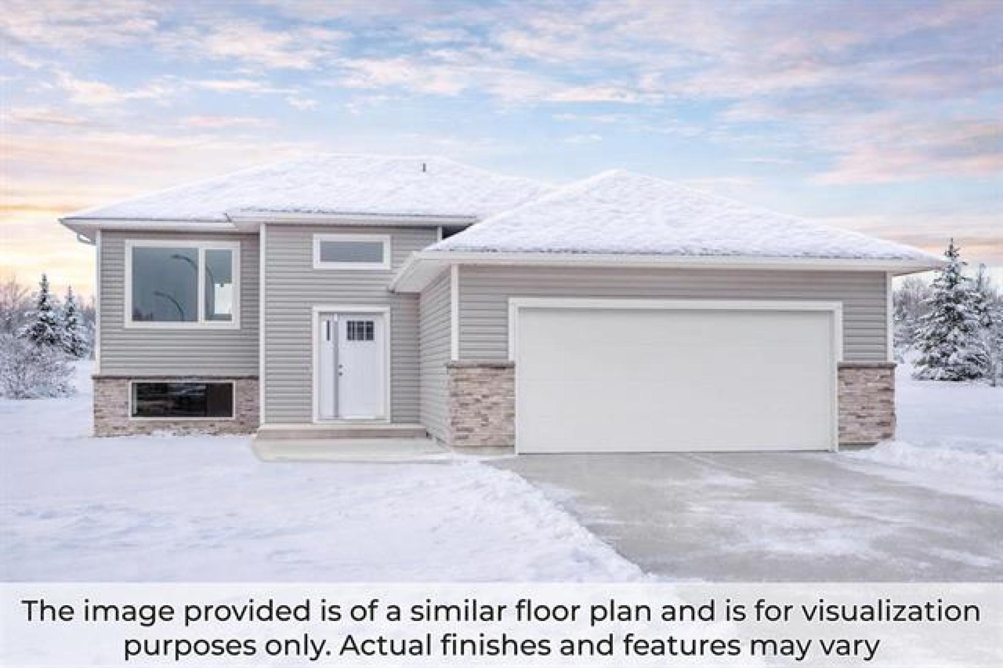 Absolutely AWESOME 1159 SqFt 3 bedroom/2 bath bilevel home on Evergreen Blvd in Tyndall MB! This home will be built on piles & will feature a 10 year new home warranty. As you enter the plan, you'll be greeted by a large drop foyer w/large coat closet & access to the 22x22 double-attached garage. The main floor plan offers 9ft ceilings, loads of windows that let in a ton of natural light, LED potlights, luxury vinyl plank flooring & a family-sized living room (perfect for entertaining)! The eat-in kitchen boasts a large island, soft close cabinets, corner pantry, dining area & garden door access to the backyard. Down the hall you'll find the large 2nd & 3rd bedrooms, a full 4-pc bathroom & the spacious primary bedroom w/large walk-in closet & 3-pc ensuite bathroom w/3/4-height acrylic shower! WOW! Call today for more info & customize this home the way you want!